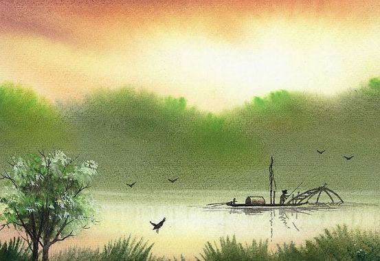 [译文] 残余的晚霞铺展开来就像彩锦,澄清的江水平静得如同白练。 [出自] 南朝齐 谢朓 《晚登三山还望京邑》 灞涘望长安,河阳视京县。 白日丽飞甍,参差皆可见。 余霞散成绮,澄江静如练。 喧鸟覆春洲,杂英满芳甸。 去矣方滞淫,怀哉罢欢宴。 佳期怅何许,泪下如流霰。 有情知望乡,谁能鬒不变? [注释] 三山:山名,在今南京市西南。 还望:回头眺望。 京邑:指南齐都城建康,即今南京市。 灞涘望长安:借用汉末王粲《七哀诗》“南登霸陵岸,回首望长安”诗意。灞,水名,源出陕西蓝田,流经长安城东。河阳视京县:借用西晋诗人潘岳《河阳县诗》“引领望京室” 诗意。河阳:故城在今河南梦县西。京县:指西晋都城洛阳。两句意为:我怀着眷恋之情,傍晚登上三山,回头眺望都城建康。 丽:使动用法,这里有“照射使……色彩绚丽”的意思。 飞甍:上翘如飞翼的屋脊。甍:屋脊。 参差:高下不齐的样子。两句意为:在日光的照耀下,京都建筑色彩绚丽,高高低低都能望见。 绮:有花纹的丝织品,锦缎。 澄江:清澈的江水。 练:洁白的绸子。两句意为:澄清的江水平静得如同一匹白练。 喧鸟覆春洲:形容鸟儿众多。覆:盖。杂英:各色的花。甸:郊野。 方:将。滞淫:久留。淹留。怀:想念。 佳期:指归来的日期。怅:惆怅。霰:雪珠。两句意为:分别了,想到何日才能回来,不由得令人惆怅悲伤,留下雪珠般的眼泪。 鬒:黑发。变:这里指变白。两句意为:怀着望乡之情的人,又有谁能不白了头发呢? ![]() 译文: 我就像王粲在灞陵上眺望长安,又像潘岳在河阳回顾洛阳那样登上三山回望京城。夕阳使飞耸的屋脊色彩明丽,京城内的屋宇高低不齐,历历在目。残余的晚霞铺展开来就像彩锦,澄清的江水平静得如同白练。喧闹的群鸟覆盖了春天的小洲,各种花朵开满了芳香的郊野。我将远离京城在他乡久留,真怀念那些已停办的欢乐宴会。回乡的日期在何时,我惆怅不已泪落如雪珠。有感情的人都知道思念家乡,谁的黑头发能不改变? 赏析: 此诗作于诗人离开京城建康(今南京)外任宣城太守途中,写他在傍晚时登上位于建康城西南长江南岸的三山,想到自己即将赴外地做官而对京城与长江的美景产生无限的怀念,并抒发了他的乡国愁思。 诗的起句诗人并不直接写自己登山回望建康城,而是借古人的典故来比喻自己离京的心情和忧虑,也间接地交待了自己离京的原因。“灞縵望长安”是引用建安时期王粲的《七哀诗》中的诗句:“南登霸陵岸,回首望长安”。“縵”是岸的意思。王粲是离开长安赴荆州避长安之乱时作的《七哀诗》,当时董卓被杀,李莈、郭汜大乱长安。而谢緿离开建康城前,建康也处于皇帝频繁更替的动荡不安之中,谢緿外任也有避政治之乱的含意,但诗人对此不好明说,只得借王粲之句来表达自己的忧患。“河阳视京县”用的是西晋诗人潘岳任河阳(在今天的河南省境内)县令时所作《河阳县诗》的句子:“引领望京室,南路在伐柯”。京县指当时的京城洛阳,潘岳在河阳为县令,怀才不遇,伸长脖子眺望京城,希望得到京城的青睐回京做大事。诗人用潘岳的诗句也含蓄地点出自己也希望有朝一日再回京城施展才华。 “白日丽飞甍”以下六句诗写京城、长江、江上芳洲及郊野之景。“飞甍”是以凌空展翅欲飞的屋檐代指京城的建筑,诗人说它们在明丽夕阳的映照下,错落有致,透露出繁华。“丽”字本来是形容词,用在此处则作动词用,指将京城宫殿楼阁映照得明丽辉煌。 “余霞散成绮,澄江静如练”是写晚霞中的大江之景。绮是锦缎,练是白绸,诗人用这两个比喻不仅恰切地描绘出了天上晚霞和晚霞中大江的绚烂,而且还以动静结合的手法写出了景色给人的安静感,诗人在这种景色的慰抚下心情亦变得平静下来。“散成绮”中“散”为“铺开”,是动,但绮则是静的锦缎列布于天空之上;“静如练”中“静”为安静地长卧,是静,但“练”既可让人感觉到静,但亦让人感觉到它在动,澄清的江水在夕阳映照下静静地流动,波光粼粼,仿佛一条明净的白绸在缓缓拂动。 “喧鸟覆春洲,杂英满芳甸”二句既是写实景,但同时也通过写夕阳中归巢鸣叫的鸟和遍布郊野的各种花卉写出了别情与愁绪。 “去矣方滞淫”后六句是抒情,它是承接上面景色描写之后感情的自然流露。正是因为京城如此繁华才使得诗人依恋,大江如此安静而给诗人安慰,鸟儿花儿也如此多情而令诗人伤感,所以才唤起诗人恋恋不舍的感慨。说是要离去了诗人又在三山之上停留回望,正是因为想念啊诗人才停止了送别的宴席。诗人恰切地使用了两个虚词“矣”与“哉”,充分表达了他去国思乡的感叹。在前面写景的满与实之后,突然用虚词来表达出感情的起伏,这也充分反映了他的诗在语言表达上的圆美流转。 六朝之时的文学虽多有艳丽之感,但由于政局更迭频繁,仕宦之人多有朝不保夕的生命忧虑意识,面对江南的春景又恰逢离别之时免不了会感叹人生的无常和无奈,这种离别愁绪的物化手法并逐渐积淀成中国文化中的文化意象。 “澄江静如练”真乃传世佳句。“余霞散成绮,澄江静如练。”登高望去,绚烂夺目的晚霞下,澄江静如丝带一般卧在天地之间。其景壮阔清空而又绮丽多姿。晚霞本静,江河本动。以动写晚霞,凸显晴空之绚丽;以静写江河,顿显天地之壮阔。轻轻落笔而如此多姿,难怪连诗仙李白也为小谢所折服。 赏