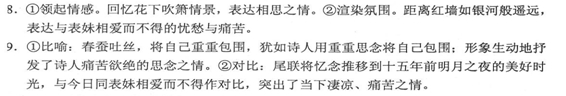 《绮怀》(其十五) [清]黄景仁 几回花下坐吹箫,银汉红墙入望遥。 似此星辰非昨夜,为谁风露立中宵。 缠绵思尽抽残茧,宛转心伤剥后蕉。 三五年时三五月,可怜杯酒不曾消 [注]红墙;指女子居所。 (1)颔联描写了怎样的情景?请简要概括。 (2)请简要分析颈联中运用的修辞手法及效果。 参考答案 (1)颔联描写了诗人因相思在风露中公安部门了整整一夜,踌躇难耐的情状。 (2)比喻。把缠绵的情思比作抽丝之蚕茧,把宛转的心比作剥后之芭蕉,把恋爱中的人相见不得的纠缠和焦灼入木三分地表达出来,比喻精警,感人肺腑。 二: 8.第一联在全诗中的作用是什么?请简要分析。(5分) 9.请联系全诗分析三、四联在写法上的特点。(6分) 参考答案 ![]() 作者: 黄景仁(1749~1783),字汉镛,一字仲则,号鹿菲子,常州府武进县(今江苏省常州市武进县)人,宋朝大诗人黄庭坚后裔,清代诗人,文学家。诗负盛名,为“毗陵七子”之一,诗学李白,所作多抒发穷愁不遇、寂寞凄怆之情怀,也有愤世嫉俗的篇章。七言诗极有特色。亦能词。著有《两当轩全集》。