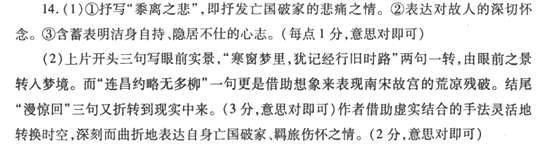 月下笛 【南宋】张炎 孤游万竹山中,闲门落叶,愁思黯然,因动黍离之感。时寓甬东积翠山舍。 万里孤云,清游渐远,故人何处?寒窗梦里,犹记经行旧时路。连昌约略无多柳,第一是难听夜雨。漫惊回凄悄,相看烛影,拥衾无语。 张绪归何暮?半零落依依,断桥鸥鹭。天涯倦旅,此时心事良苦。只愁重洒西州泪,问杜曲人家在否?恐翠袖天寒,犹倚梅花那树。 (1)请简要概括这首词蕴含的思想感情。(3分) (2)本词巧妙地运用了虚实结合的手法。请以上片为例作简要赏折。(5分) 参考答案 ![]() 【参考译文】 我像一片孤云飘游万里,四处游历越走越远,朋友啊你如今在何处?独卧寒窗下凄凉梦里,还记得当年杭州旧游之路。连昌宫稀稀落落没有几棵柳树,最让人难过的是听潇潇夜雨。短梦惊醒后凄凉沉寂,相对的只有烛下孤影,我独拥寒被谁来和我共语? 像南朝张绪为何迟迟不归?可怜已一半零落还依依眷恋,断桥边那些旧时盟友鸥鹭。我浪迹天涯倦于行旅,此刻心事如麻无比凄苦。只愁重返杭州又会泪如泉涌,怎敢问旧时的豪族还在否?怕她翠袖单薄在寒天昏暮,依然愁倚门前的梅树。 赏析一 为羁旅伤怀之作。宋亡后,张炎怀着国亡家破的巨大悲痛到处飘零。元成宗大德二年(1298)流寓甬东(今浙江定海)。一次独游天台万竹山,触景生情,创作这首寄托“黍离之悲”的词章。词中以孤云自比,抒写故交零落,故宫荒凉,故家残破的无限悲慨,以及对故国,故家、故友的深切怀念之情。起笔突兀,凌空而起,以孤云自况,格调高雅,意境深曲。上片写羁旅漂泊生活的孤凄和对故人的怀念。“故人何处”点出怀人之思。“寒窗”以下四句借梦境写故国之思。“连昌”二句极空灵,理解为梦境亦可,理解为想象也可。“漫惊回”又折到现境。下片以张绪自比,抒写思归的愁苦,并以自持高节的隐者自喻,自明心志,开头“张绪,归何暮?”写故家难归之苦。“半零落”两句暗示故人已过世大半。“天涯倦旅”二句照应上片的开头和歇拍两处。“只愁”二句怀故家兼怀故人。结尾 三句则以赞扬隐居不仕自持高节的故人以自明心志。全篇层层深入,以漂泊孤独之思为抒情主线,以怀故国、故家、故人为抒情对象,虚实互映,时空不断变换,意脉却很清晰。用典深化无迹,凄婉动人。陈廷焯赞曰:“骨韵俱高,词意兼胜,白古老仙之后劲也”(《词则·大雅集》)。 元大德二年(1298),张炎流寓甬东,此时虽距南宋灭亡已有二十年,但时间流逝并没有减轻词人胸中郁结的家国之恨,所以当他身处清幽之境时,黍离之悲便自然而生。是词运用曲折深婉的笔法抒写亡国之痛,凄怆缠绵,词意含蓄深厚,正是姜夔所倡的清空一路。 上阕“万里孤云”句凄怆渺茫,定下全篇基调。词人感时伤怀,痛极成梦,其中破败衰落之景,犹未忍观。元稹有诗感叹连昌宫之昔盛今衰,而张炎又以之借指南宋故宫,愈现悲凉沧桑之感。梦中已忧,梦醒复愁,可见词人心绪之悲已到无可逃遁之境地。 下阕词人以翩翩才子张绪自况,既是切姓相类,又是承连上阕"连昌约略无多柳"意。"归何暮"以下都是抒伤怀之悲切,发感时之幽怨。结句化用杜甫《佳人》诗句,回应开头"别人何处",也含有褒扬那些高洁自守的南宋遗民之意。词人作词时年仅二十九,但已是历尽颠沛流离的苦楚和家国沦亡的创痛,故字字血泪,感人致深。 赏析二 这是首感怀之作。宋亡后,张炎怀着国破家亡的心情在各地漫游。此次北游,词人有寻故人踪迹的目的,却看到山舍门庭冷落,落叶满地,故为之怅然。他即景抒怀,渲泻君国之哀思,为自己的孤独而感伤。滞留天涯,更为孤苦。下阕词人以张绪自比,意谓飘泊已久,似无家可归,无路可投。昔日之友,已所剩无多,更显孤独。“问杜曲”代指故国,此句写出了词人的亡国之痛,孤独、怅怨之情更加浓重。最后以梅树自喻作结,表现自己的风骨与气节。全词运用有关典故,展开抒情描写,感情沉痛,风格凄婉。