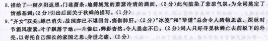 齐天乐·蝉 仇远。 夕阳门巷荒城曲,清音早鸣秋树。薄剪绡表,凉生鬓影,独饮天边风露。朝朝暮暮。奈一度凄吟,一番凄楚。尚有残声,蓦然飞过别枝去。 齐宫往事谩省②,行人犹与说,当时齐女③。雨歇空山,月笼古柳,仿佛旧曾听处。离情正苦。甚懒拂冰笺,倦拈琴谱。满地霜红,浅莎寻蜕羽。 [注]①仂远是由宋人元时人。王沂孙曾有同调同题的词,影射杨琏真伽盗窃南宋帝后陵寝的暴行。仇远这首词和其风格极为相近。②谩,欺诳;省,反思省悟。③齐女:蝉的别称,有齐女化蝉故事。 8.词的第一句“夕阳门巷荒城曲”描绘了一幅什么样的画面?这有什么作用?(5分) 9.请结合词的下片分析:词人为什么要“浅莎寻蜕羽”?(6分) 参考答案 ![]() 8.描绘了一幅夕阳返照,门巷萧条,地僻城荒的萧瑟冷清的画面,此句渲染了悲凉气氛,为全词奠定了情感基调;引出后面关于秋蝉的描写。 9.“齐女”双关,蝉已消失,故国亦已不堪回首,痛彻肺肝。“冰笺”和“琴谱”总会令人睹物思帮。深秋时节霜风凄紧,叶子飘落于地,一片惨红,蝉影杳然,令人思念不已;词人只好寻觅秋蝉亡去前蜕下的外壳,以寄托自己深长的家国之思,身世之痛。 赏析 仇远也是由宋入元时人。王沂孙曾有同调同题的词,影射杨琏真伽盗窃南宋帝后陵寝的暴行。仇远这首词和其风格极为相近,也是借咏蝉寄寓了深沉的家国之思,身世之痛。 “夕阳门巷荒城曲”:返照夕阳,萧条门巷,地僻城荒,渲染了悲凉气氛。接着把笔触转向吟咏的主体秋蝉。“清音早鸣秋树”:蝉鸣声凄清幽怨,从树上传出,使人秋意顿生。“早鸣”二字意谓有倾诉不尽的愁苦。薄剪绡衣改用拟人手法摹绘其身姿:清秋时节,露冷风寒,可是她仍然穿着极薄的“绡衣”。呆立枝头,独自忍受着寒冷和空寂的煎熬。“凉生鬓影”是示现通体皆寒的形象。时令的转换和环境的变迁使其痛苦异常。这里把秋蝉喻薄命美人,以抒发自己身世没落的悲哀。“独饮天边风露”写蝉境况之窘迫。“凉生鬓影”形容枯槁还要去饮风啜露,有谁能堪?处境如此,谁为之奈何!天高渺清远,蝉孤独窘迫,词人把二者映照开来,构成一种较为独特的意境。或可表示词人希冀摆脱自己欲念的一种自我表白吧。 接着“朝朝暮暮”延伸了时间,“蓦然飞过别枝去”拓展了空间。不论何时何地,哀痛于心的蝉,不停地将心中的哀伤倾诉。悲鸣不能自已,痛苦又何堪。但只要“尚有残声”,她就不会噤而不发。威势逼人的风刀霜剑,怎能使她慑服。这段文字缓急相间,起落有致。音韵巧妙,声音变化,而又部分重沓,表达出缠绵悱恻、悠悠不尽的情思。 上片在写蝉时,先写在特定时空中蝉的凄苦忧愁,后来拓展时空范围,大大地加强了写蝉的广度和深度。 “齐宫往事谩省”,引出兴亡之感来。齐女化蝉,古老的故事仍不时地在人们的脑子里闪现,常以它为话题,谈个不休。可是此时连齐女的化身——蝉也已悄然离去,雨后空山,烟月古柳,又何处可觅踪。清脆的鸣声、终归是梦幻而已。这是因宋陵被侵,引发词人怀旧的情怀。“齐女”已消失,宋陵被毁坏了,故国已不堪回首,痛彻肺肝也。“拂冰笺”、“拈琴谱”了。“冰笺”和“琴谱”总会令人睹物思故的。“满地霜红”道出:深秋时节霜风凄紧,惨红的叶子飘浮于地,倩影杳然,令人思念不已。只好寻觅秋蝉亡去前脱下的外壳,以寄托自己深长的情思。 这是一首借蝉咏情之词。故国之思,身世之痛和对当朝统治不满。都借本来不相及的蝉而咏出来。融化“齐女化蝉”的古老传说,巧连“蝉”“人”。使词人一肚子难于诉说的对处境的不满托蝉而一股脑地倾吐出来,可谓意味极为深永。