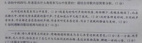 石门岩上宿 [南朝]谢灵运 朝搴苑中兰,畏彼霜下歇。 暝还云际宿,弄此石上月。 乌呜识夜栖,木落知风发。 异音同至听,殊响俱清越。 妙物莫为赏,芳醑谁与伐①? 美人竟不来,阳阿徒唏发②。 【注】①芳醑(xu):芳香的美酒。伐:赞美。②“美人”二句:屈原<九歌·少司命》:“与汝沐兮成池,唏汝发兮阳阿;望美人兮未来,临风恍兮浩歌。”阳阿,古代神话传说中的山名。唏发,晒干头发。 1.本诗前四句用了怎样的描写手法?塑造了一个怎样的形象?(5分) 2.本诗表达了诗人哪些情感?请结合诗句内容加以分析。(6分) 参考答案 1.本诗前四句通过运用“搴”“弄”等动作描写和“畏”等心理描写的手法,(2分)塑造了一个酷爱兰花、赏玩秋月、归宿云间的高洁闲适、超凡脱俗的隐士形象。(3分) 2.“朝”一“暝”表明诗人整日徜徉于山中,表达了诗人对山中超越尘世的悠闲隐逸生活的喜爱;“搴兰”“宿云际”“弄石上月”表现了诗人的高洁情怀;巾间四句表现诗人对山中夜景的欣赏和感悟;“谁与伐”“徒唏发”表明无人和自己一起欣赏此种美景,因而诗人内心充满了孤独与遗憾。(答对3点给满分) 二 ![]() 赏析 开头四句,便有许多精彩。欲写夜宿,先说朝游,笔调来得舒缓。劈头而下、突兀而起,也是一种写法,但那比较适合激烈冲荡的情绪。像这诗要表达幽深情趣,便需缓缓引入。好似游山先渡水,才觉得味道悠长。但前二句不仅是个入题的铺垫,也是诗情的动因。“朝搴苑中兰”,语出《离骚》“朝搴阰之木兰兮”。兰是美好事物的象征,恐怕它在霜露中凋残,而采摘把玩,这是隐喻的写法,包涵着珍惜具有才智和美德的生命的意味。谢灵运是一个非常自负的人,贬出永嘉,辞官暂隐,在于他是很难接受的人生挫折,难免有才智之士不能为世所容的怨艾与自怜,这情绪便在“朝搴苑中兰”的形象中表现出来。因此乃有暮宿石上、流连光华的举动。倘无前二句,全诗就变单薄了。后二句中,“云际宿”一则略带夸张地写出石门别墅所在之高,又暗用《九歌·少司命》“夕宿兮帝郊,君谁须(待)兮云之际”诗意,透出孤独无侣、似有所待的怅惘。归结到“弄此石上月”,一个高洁多情,极富美感的形象。“石上月”不是天上月,那是流动着的如水如雾的一片,那是轻柔宛曼的乐章。石的清凉,诗人的忧郁,都写在这音乐中了。 将四句诗连贯起来,可以发现一、三句同二、四句,均是松散的隔句对。“朝搴”与“瞑还”对应,时间趋近;“畏彼”与“弄此”对应,方位趋近。你单是读,未必要多想什么,自会觉得有一种风姿、一种韵调轻轻摇曳、回环飘荡而来,恰与月华的流动重合。总之,这四句诗的语言具有相当丰富而又完整统一的功能,是真正的诗歌语言。 接着四句,是对夜景的欣赏。——但又很难说是夜“景”,很难说是“欣赏”。这是用听觉在感受夜,并由感受而渐渐潜入自然的深处。张玉谷《古诗赏析》说:“中四即所闻写景,不以目治,而以耳治,是夜宿神理。”这“神理”指什么,他却没有讲清楚。首先应该说,夜景不是不能用目光观赏,也不是不能写好,古诗中不乏这样的例子。但描绘视界中的夜景,非着力不可,人和自然容易处在分离的状态,其效果与此诗所追求的效果是不一样的。 先看前二句:鸟的鸣叫声渐渐低落、渐渐稀少,最后成为偶尔一二声的啁啾,于是意识到它们已在林中栖息,夜越来越深;而在沉静之中,时时又传来簌簌的落叶声,于是知道山中又起了夜风。这二句已经很好地写出了山夜的气氛。因为声音是变动着的,时生时消,起伏不定,它比山林沟壑等固定的形体更能体现山夜的情趣,体现万物在根本的虚寂中运化的节律。这也许就是张玉谷所说的“夜宿神理”吧。 但后二句却是更深入的体验。这二句互文见意,是说:夜中“异音”、“殊响”一起来到耳边,听来都是清亮悠扬的声调。所谓“异音”、“殊响”究竟来自何处?是鸟儿的鸣叫,枯叶的飘落,还是不息的山溪,断续的虫吟?什么都是,什么也不是。诗人称那些声音为“异音”、“殊响”的时候,已经不是说声音本身,而是声音引起的人的奇异感觉。正因为这是一种感觉,那些声音也被改变了,放大了,成为“俱清越”的音调。换句话说,在诗人凝神静听山夜中各种声响的时候,那些声响唤起了人心深处的某种幻觉;以这幻觉感受那些声响,它们也变得与平时不同。这样,似乎在人的生命的深处与自然的深处形成某种神秘的沟通。确实,人们对人和自然,都有许多说不清楚的东西,因而常常凭借着神秘的感受力去体验自然。像谢灵运这样敏锐的诗人,他的体验也比常人来得丰富。 按照通常的写法,谢灵运的诗在描摹景物之后,总有一段哲理性的议论。此诗的最后四句收结,却不是如此。他只是感叹:如此美妙的秋夜,却无人能够欣赏,我也就无从向谁夸美这杯中的好酒了。言外之意,是说世人多庸俗,缺乏高逸情趣,难与自己同游。最后两句仍是用《九歌·少司命》诗意。原诗说:“与汝沐兮咸池,晞汝发兮阳之阿。望美人兮未来,临风怳兮浩歌。”谢诗中的“美人”,指情意投合的佳侣。“阳阿”,向阳的山阿。诗人说:心中盼望的“美人”终究不会来到,我只是白白地等待,直到太阳出来,晒干我的头发罢了。这里面其实有双重的内涵:一方面,诗人确实希望有志同道合、情趣相通的朋友与自己共赏这秋夜景色;另一方面,绝景独游,无人为侣,恰
