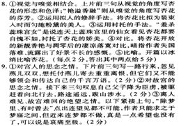 燕山亭·北行见杏花 赵佶① 裁剪冰绡,轻叠数重,淡著胭脂匀注。新样靓妆,艳溢香融,羞杀蕊珠宫女。易得凋零,更多少、无情风雨。愁苦。闲院落凄凉,几番春暮。 凭寄离恨重重,者双燕,何曾会人言语。天遥地远,万水千山。知他故宫何处。怎不思量,除梦里、有时曾去。无据。和梦也,新来不做。 【注】①赵估:宋徽宗,因荒淫失国,在公元1127年与其子钦宗赵桓被金兵掳往北方五国城,囚禁至死。北行途中,忽见杏花,百感交集,写下了这首词。 ②冰绡:洁白的绸。③凭寄:凭谁传递。④和:连。 1.上片描写杏花运用了哪些艺术手法?请简要赏析。(5分) 2.下片是如何层层深入地表达词人情感的?请简要赏析。(6分) 参考答案 1.答案示例:①运用视觉与嗅觉相结合的手法。上片前三句从视觉的角度写杏花的形态和色泽;“艳溢香融”则从嗅觉的角度写杏花的芬芳。②运用比拟的修辞手法。“新样靓妆”等将杏花比拟为装束入时而匀施粉黛的美人。③运用衬托的手法。“羞杀蕊珠宫女”是说连天上蕊珠宫里的仙女看见杏花都要自愧不如,衬托了杏花之美。(答出一点给1分,两点给3分,三点给5分)。 2.答案示例:①对宫人的思念之情。下片前三句写一路行来,忽见燕儿双双,想托付燕儿寄去重重离恨,但它们又怎么能够领会和传达自己的千言万语?这里借问燕表露出音讯断绝以后的思念之情。②对故宫的思念之情。接下来三句叹息自己父子降为臣虏,被驱赶着向北行去,路途遥远,跋山涉水,回首南望,不见汴京故宫。③离人难见,故宫难回的绝望之情。以下紧接上句,以反诘表明怀念故国之情,“故宫何处”点出连望见都不可能,只能求之于梦寐之间,但近来连梦都不做,真是一点希望也没有了,可说是哀痛及极。(每点2分) 二 8.词的上片对杏花的描写有怎样的艺术特点?请简要赏析。(5分) 9.下片层层深入地表达了词人哪些情感?请简要分析。(6分) 参考答案 8.视觉与嗅觉相结合,上片前三句从视觉的角度写杏花的形态与色泽:“艳溢香融”则从嗅觉的角度写杏花的芬芳。运用拟人的修辞手法。运用衬托的手法。对比。比喻。开篇以冰绡比喻杏花。 9.对宫人的思念之情。对故宫的思念之情。离人难见,故宫难回的绝望之情。 ![]() 简析 徽宗皇帝在被掳北行途中,忽见杏花盛开如火,不禁万感交集,写下这首如泣如诉之词。上片明写杏花,借杏花的娇艳及被风雨摧残的衰败景象象征美好事物的逝去,寄托着对帝王生活的痛苦回忆。 也暗示自已的境遇,怜花怜已,语带双关。下片抒写离恨哀情,借燕子与做梦层层深入,道出从期望到失望,由失望而绝望的哀痛心情,末尾几句写连在梦里见一见故国宫殿的慰藉也得不到,因为连梦也做不成。抒情上有递进关系,真挚深沉,真可说是字字泣血,百折千回,悲凉哀婉。
