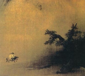 “瘦马”句:诗人骑着瘦马浪迹天涯。