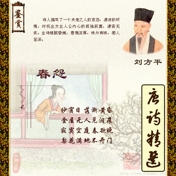 纱窗日落渐黄昏,金屋无人见泪痕。