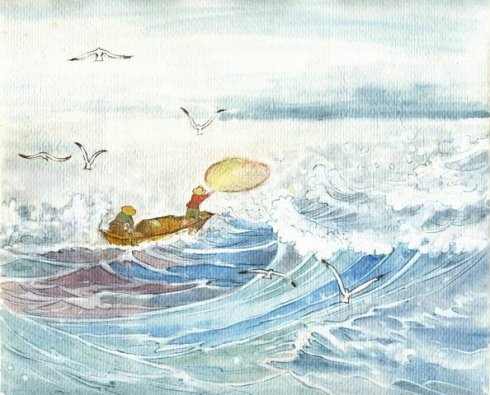 请您看那一叶小小渔船,时隐时现在滔滔风浪里。
