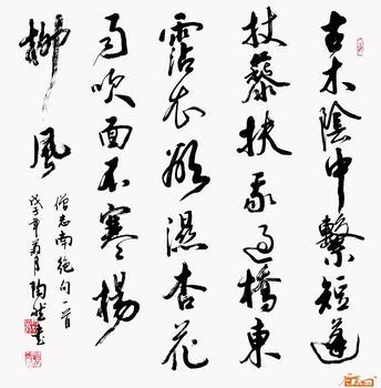 宋·志南 古木阴中系短篷, 杖藜扶我过桥东。 沾衣欲湿杏花雨, 吹面不寒杨柳风。 ![]() 注释: ①短篷――小船。篷是船帆。船的代称。 ②杖藜――“藜杖”的倒文。藜是一年生草本植物,茎杆直立,长老了可做拐杖。 ③ 杏花雨:清明前后杏花盛开时节的雨。 译文: 在参天古树的浓阴下,系了小船,拄着藜杖,慢慢走过桥,向东而去。阳春三月,杏花开放,绵绵细雨像故意要沾湿我的衣裳似的,下个不停。轻轻吹拂人面的,带着杨柳清新气息的暖风令人陶醉。 赏析: 这首小诗,写诗人在微风细雨中拄杖春游的乐趣。 诗人拄杖春游,却说"杖藜扶我",是将藜杖人格化了, 仿佛它是一位可以依赖的游伴,默默无言地扶人前行,给人以亲切感,安全感, 使这位老和尚 游兴大涨,欣欣然通过小桥,一路向东。桥东和桥西, 风景未必有很大差别,但对春游的诗人来说,向东向西,意境和情趣却颇不相同。 "东",有些时候便是"春"的同义词,譬如春神称作东君, 东风专指春风。诗人过桥东行,正好有东风迎面吹来,无论西行、北行、南行, 都没有这样的诗意。 诗的后两句尤为精彩:"杏花雨",早春的雨"杨柳风", 早春的风。这样说比"细雨"、"和风"更有美感,更富於画意。 杨柳枝随风荡漾,给人以春风生自杨柳的印象称早春时的雨为"杏花雨", 与称夏初的雨为"黄梅雨",道理正好相同。"小楼一夜听春雨, 深巷明朝卖杏花",南宋初年,大诗人陆游已将杏花和春雨联系起来。 "沾衣欲湿",用衣裳似湿未湿来形容初春细雨似有若无, 更见得体察之精微,描模之细腻。试想诗人扶杖东行,一路红杏灼灼,绿柳翩翩, 细雨沾衣,似湿而不见湿,和风迎面吹来,不觉有一丝儿寒意, 这是怎样不耐心惬意的春日远足啊! 有人不免要想,老和尚这样兴致勃勃地走下去,游赏下去, 到他想起应该归去的时候,怕要体力不支,连藜杖也扶他不动了吧?不必多虑。 诗的首句说:"古木阴中系短篷。"短篷不就是小船吗? 老和尚原是乘小船沿溪水而来,那小船偏激在溪水边老树下,正待他解缆回寺呢。