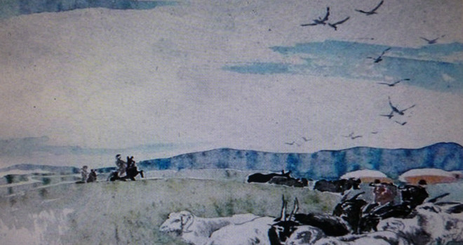 元好问 慷慨歌谣绝不传,穹庐一曲本天然。 中州万古英雄气,也到阴山敕勒川。 【注释】 慷慨:充满正气,情绪激动。 歌谣:指北朝民歌《敕勒歌》。 绝不传:已绝迹不再流传。 穹庐一曲:指敕勒歌。 中州:中原。 【译文】 像北朝民歌《敕勒歌》这样慷慨激昂的民歌已绝迹不再流传, 这首民歌不假雕饰而浑然天成。 从古至今中原人民代代相传的英雄气概, 也影响了北方敕勒民族。 ![]() 【赏析】 这首诗评论了北朝民歌《敕勒歌》。《敕勒歌》描绘了开阔壮美而又和平安定的草原风光,有豪放刚健、粗犷雄浑的格调。元好问重视民歌,前两句他肯定、推崇这首民歌慷慨壮阔深厚的气势,推举它不假雕饰而浑然天成。 后两句点出了中原文化对北方少数民族地区文化的影响。敕勒本是北方一个游牧民族名称,居住地方在敕勒川(今山西北),元好问认为,看《敕勒歌》的产生和风格,是中原的慷慨豪迈的气魄传给了阴山下少数民族的艺术作品。《敕勒歌》表现了我国境内各民族文化的相互影响和渗透。