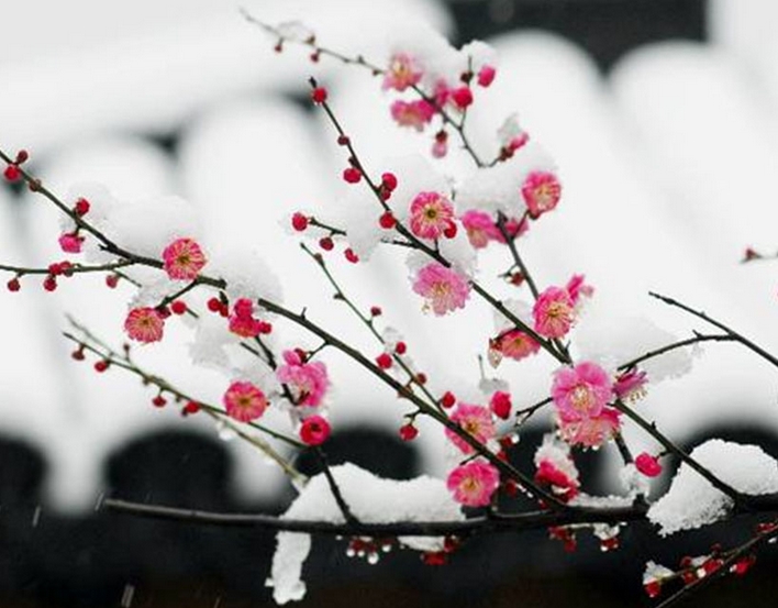 1、赠范晔 晋代·陆凯 折梅逢驿使,寄予陇头人。 江南无所有,聊赠一枝春。 2、咏早梅 南北朝·何逊 兔园标物序,惊时最是梅。 衔霜当路发,映雪拟寒开。 枝横却月观,花绕凌风台。 朝洒长门泣,夕驻临邛杯。 应知早飘落,故逐春上来。 3、梅花 南北朝·庾信 当年腊月半,已觉梅花阑。 不信今春晚,俱来雪里看。 树动悬冰落,枝高出手寒。 早知觅不见,真悔著衣单。 4、早梅 南朝·谢燮 迎春故早发,独自不疑寒。 畏落众花后,无人别意看。 5、雪里觅梅花 唐·萧纲 绝讶梅花晚,争来雪里窥。 下枝低可见,高处远难知。 俱羞惜腕露,相让道腰羸。 定须还剪采,学作两三技。 ![]() 6、梅花 唐·蒋维翰 白玉堂前一树梅,今朝忽见数花开。几家门户重重闭,春色如何入得来? 7、早梅 唐·齐己 万木冻欲折,孤根暖独回。前村深雪里,昨夜一枝开。 风递幽香出,禽窥素艳来。明年如应律,先发映春台。 8、杂诗 唐·王维 君自故乡来,应知故乡事。来日倚窗前,寒梅著花未? 9、杂咏 唐·王维 已见寒梅发,复闻啼鸟声。心心视春草,畏向玉阶生。 10、忆梅 唐·李商隐 定定住天涯,依依向物华。寒梅最堪恨,长作去年花。 11、十一月中旬至扶风界见梅花 唐·李商隐 匝路亭亭艳,非时袅袅香。 素娥惟与月,青女不饶霜。 赠远虚盈手,伤离适断肠。 为谁成早秀?不待作年芳。 12、庭梅咏寄人 唐·刘禹锡 早花常犯寒,繁实常苦酸。何事上春日,坐令芳意阑? 夭桃定相笑,游妓肯回看!君问调金鼎,方知正味难。 13、梅花 唐·庾信 当年腊月半,已觉梅花阑。 不信今春晚,俱来雪里看。 树动悬冰落,枝高出手寒。 早知觅不见,真悔著衣单。 14、梅花 唐·崔道融 数萼初含雪,孤标画本难。香中别有韵,清极不知寒。 横笛和愁听,斜技依病看。逆风如解意,容易莫摧残。 15、江上梅 唐·王适 忽见寒梅树,花开汉水滨。不知春色早,疑是弄珠人。 16、江梅 唐·杜甫 梅蕊腊前破,梅花年后多。绝知春意好,最奈客愁何? 雪树元同色,江风亦自波。故园不可见,巫岫郁嵯峨。 17、新栽梅 唐·白居易 池边新栽七株梅, 欲到花时点检来。莫怕长洲桃李嫉,今年好为使君开。 18、早梅 唐·张谓 一树寒梅白玉条,迥临林村傍溪桥。不知近水花先发,疑是经春雪未销。 19、再和杨公济梅花 宋·苏轼 莫向霜晨怨未开,白头朝夕自相摧。 斩新一朵含风露,恰似西厢待月来。 20、赠岭上梅 宋·苏轼 梅花开尽白花开,过尽行人君不来。 不趁青梅尝煮酒,要看细雨熟黄梅。 21、红梅 宋·苏轼 怕愁贪睡独开迟,自恐冰融不入时。 故作小红桃杏色,尚余孤瘦雪霜姿。 寒心未肯随春态,酒晕无端上玉肌。诗老不知梅格在,更看绿叶与青枝。 22、和秦太虚梅花 宋·苏轼 西湖居士骨应槁,只有此诗君压倒。东坡先生心已灰,为爱君诗被花恼。 多情立马待黄昏,残雪消迟月出早。江头千树春欲阑,竹外一枝斜更好。 孤山山下醉眠处,点缀裙腰纷不归。万里春随逐客来,十年花送佳人老。 去年花开我已病,今年对花还草草。不知风雨卷春归,收拾余香还畀昊。 23、红梅 宋·苏轼 年年芳信负红梅, 江畔垂垂又欲开。 珍重多情关伊令, 直和根拨送春来。 24、早梅 宋·柳宗元 早梅发高树,回映楚天碧。 朔风飘夜香,繁霜滋晓白。 欲为万里赠,杳杳山水隔。 寒英坐销落,何用慰远客。 25、梅花 宋·陈亮 疏技横玉瘦,小萼点珠光。一朵忽先发,百花皆后春。 欲传春信息,不怕雪埋藏。 玉笛休三弄,东君正主张。 26、蜡梅 宋·董嗣杲 刚条簇簇冻蝇封,劲叶将零傲此冬。磬中种厅英可嚼,檀心香烈蒂初容。 根依阳地春风透,瓶倚晴窗日气浓。一样黄昏疏影处,悬知水月不相容。 27、钓雪舟倦睡 宋·杨万里 小阁明窗半掩门,看书作睡正昏昏。无端却被梅花恼,特地吹香破梦魂。 28、蜡梅 宋·杨万里 天向梅梢别出厅,国香未许世人知。殷勤滴蜡缄封却,偷被霜风折一枝。 29、咏梅 宋·张道洽 才有梅花便不同,一年清致雪霜中。疏疏篱落娟娟月,寂寂轩窗澹澹风。 生长元从琼玉圃,安排合在水晶宫。何须更探春消息,自有幽香梦里通。 30、瓶梅 宋·张道洽 寒水一瓶春数枝,清香不减小溪时。 横斜竹底无人见,莫与微云淡月知。 31、十一月后庭花盛开之二 蔡襄 日暖香繁巳盛开, 开时曾达千百回。春风岂是多情思,相伴花前去又来。 32、梅花 宋·王安石 墙角数枝梅,凌寒独自开。 遥知不是雪,为有暗香来。 33、与薛肇明弈棋赌梅花诗输一首 宋·王安石 华发寻春喜见梅,一株临路雪倍堆。 凤城南陌他年忆,香杳难随驿使来。 ![]() 34、从张仲谋乞腊梅 宋·黄庭坚 闻君寺后野梅发,香蜜染成宫样黄。不拟折来遮老眼,欲知春色到池塘。 35、次韵中玉早梅 宋·黄庭坚 折得寒香不露机,小穸斜日两三枝。罗帷翠叶深调护,已被游蜂圣得知。 36、墨梅 宋·朱熹 梦里清江醉墨香,蕊寒枝瘦凛冰霜。如今白黑浑休问,且作人间时世妆。 37、梅 宋·赵蕃 片片梅花脱雨轻,半飞欲坠更多情。浑疑春雪林梢堕,输与诗翁照眼明。 38、冬日杂兴 宋·张耒 空山身欲老,徂岁腊还来。愁怯年年柳,伤心处处梅。 绿蔬挑甲短,红蜡点花开。冰雪如何有,东风日夜回。 39、寒夜 宋·杜耒 寒夜客来茶当酒,竹炉汤沸火初红。寻常一样窗前月,才有梅花便不同。 40、梅花 宋·陈与义 客行满山雪,香处是梅花。丁宁明月夜,记取影横斜。 41、题杨补之画 宋·楼钥 梅花屡见笔如神,松竹宁知更逼真。 百卉千花皆面友,岁