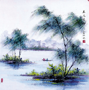 [译文] 只有那南风是以前认识的老朋友了,他偷偷地推开了我的门又打开了我的书。 [出自] 北宋 刘攽 《新晴》 青苔满地初晴后,绿树无人昼梦余。 惟有南风旧相识,偷开门户又翻书。 ![]() 注释: 青苔:小绿苔,生长在背阴潮湿的地方。 昼梦:白天睡觉作梦,这里意白天睡觉。 余:以后。 偷:使人不知不觉。 译文: 下过雨后天转晴了。满地长出了茸茸的青苔;白天睡了一觉,醒来之后还是绿树在同我作伴。只有我的老朋友南风怕我寂寞吧!又偷偷地打开门和窗户来翻看我的书了。 ![]() 赏析: 李白《春思》诗说:“春风不相识,何事入罗帷”,这里说南风是我的老朋友,是反用其意。唐人薛能《老圃堂》诗道:“昨日春风欺不在,就床吹落读残书”,一本正经地埋怨春风吹落他正在阅读的书,这里的构思与薛诗相近,但称南风为老朋友,说它招呼不打一声,推门而入又翻书,比薛诗更见机趣活泼。 第一句正好和王安石“茅檐长扫静无苔”相反,展现在读者面前的是“青苔满地”,比起刘禹锡“苔痕上阶绿”来,这“苔”要多得多。同样描写幽静的境界,无苔,有苔,多苔之差是巨大的,王安石用无苔以表现“净”,刘禹锡用上阶绿之苔写独处陋室之“静”,这首诗满地之苔则因久雨初晴,其中差异不能不辨,这是提高鉴赏能力的有效方法。 第二句写午梦醒来之后,虽然只见到“一树碧无情”,但宁静恬适的心境却是非常好。经过长时间雨洗之后,树更是绿油油的,多么令人惬意!诸葛亮高卧隆中,一觉醒来,不是还高吟:“大梦谁先觉?平生我自知。草堂春睡足,窗外日迟迟”吗?想到这,诗人会心地笑了。 这首诗的妙处在于后两句。诗人把南风写成是一个十分诙谐而又善于戏谑的老朋友,他偷偷地推开了门,闯了进来,还装作爱读书的样子,正不停地翻着书。诗人为读者种了一株诗苑“惹笑树”,令人读后忍俊不禁,发出爽朗的笑声。其实,这样写并非诗人首创,发明权当属唐人,薛能的《老圃堂》有“昨日春风欺不在,就床吹落读残书”,李白的《春思》有“春风不相识,何事入罗帏”,诗人融薛、李诗句于一炉,经过锤炼锻造,又添上绝妙的“偷”字,表达效果远远超过了原作。这绝不是“偷”,而是创新。 而诗人在《致斋太常寺以杖画地成》中又用这一意境,写了:“杖藤为笔沙为纸,闲理庭前试草书。无奈春风犹制肘,等闲撩乱入衣裾。”可见,诗人对这一意境和这一手法是情有独钟。但相比较而言,还是“偷开门户又翻书”来得更自然亲切,也更有趣些。