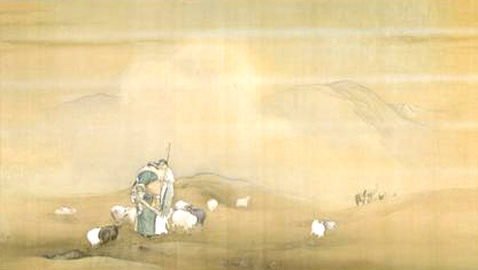 [译文] 如果我还活着,就一定会回来;如果不幸死去,也会永远地思念你。 [出自] 西汉 无名氏 《留别妻》 结发为夫妻,恩爱两不移。 欢娱在今夕,嫣婉及良时。 征夫怀远路,起视夜何其。 参辰皆已没,去去从此辞。 行役在战场,相见未有期。 握手一长欢,泪为生别滋。 努力爱春花,莫忘欢乐时。 生当复来归,死当长相思。 注释: 一说此诗为苏武作。 结发:洞房诸礼中属于结婚正礼范畴内的一道重头戏是“合髻”,也称作“结发”,其象征意义就是夫妻和睦,永结同心。“结发”的具体操作方式历代不同。先秦、秦汉时的“结发”,就是新郎亲手解去新娘在娘家时所结的许婚之缨,即系头发的彩带,重新梳理头发后再为之系上。隋唐以后的“结发”,是男女双方各剪下少许头发,挽成“合髻”,一般都是马上交给新娘保存起来。唐代女诗人晁采的《子夜歌》云:“依既剪云鬟,郎亦分丝发。觅问无人处,绾作同心结。”正是这一做法的描述。世人常用“结发”、“合髻”作为夫妻结合的代称,甚至特指为“原配”(亦称“元配”)夫妇,表示夫妻间互敬互爱的意义重大。 同枕席:指成为夫妇。 燕婉:欢好貌。以上二句是说良时的燕婉不能再得,欢娱只有今夜了。 怀往路:惦着走上旅途。 夜何其(音基):《诗经·庭燎》云:“夜如何其?”这里用《诗经》成语。“其”,语尾助词,犹“哉”。 参辰皆没:言天将明。 行役:应役远行。 滋:多。 春华:喻少壮时期。 译文: 和你结发成为夫妻,就从没怀疑与你恩爱到老。 和你相爱缠绵陶醉在今夜幸福的时刻,多么美好的时光呀! 可是明天我就要为国远行,不得不起来看看天亮没亮是什么时候了。 当星辰隐没在天边时,我就不得不与你辞别了, 因为要到战场上这一走不知道什么时候才能与你团聚。 与你依依不舍长时间的握着手也是幸福的,相互不由自主的流泪是因为这可能是你我今生的最后一面。 我倍加珍惜现在幸福的每分每秒,我永远也不会忘了和你相爱,这么幸福欢乐的时光。 如果我有幸能活着,一定会回到你身边。如果我不幸死了,也会永远想你…… ![]() 苏武(? - -60) 西汉名臣。杜陵(治在今西安东南)人,字子卿,苏建之子。少以父任为郎。武帝天汉元年(前100),奉命出使匈奴,被扣。匈奴数以威胁利诱,劝其投降,但始终不屈,被迁北海(今贝加尔湖)无人处牧羊,历尽艰辛,仍不弃汉节。在匈奴被扣长达19年,昭帝始元六年(前81)汉匈和亲,才得返汉朝,官拜典属国。宣帝时,赐爵关内侯。神爵二年(前60)病卒,甘露三年(前51),被宣帝列为当世十一名臣之列,画像于麒麟阁。 这是个中国历史上以刚烈节义著称的男人,在出使临行前,并不觉得这是一件日后会让他光照千秋的事情,而自比“征夫”,受君王命令,而不得不离开自己深爱的妻子。他没有那奉王命出征的趾高气扬,没有那对出使凶险前途未卜的忐忑不安,他有的只是用自己的平和与坚定安慰妻子,他将自己对妻子的深情爱意一展无疑,就好像推开那窗子,看到了“天淡夜凉月光满地”的惆怅。这与他后来面对匈奴威逼诱降时的昂然刚烈、誓死不屈判若两人 苏武汉武帝时的中郎将,奉命出使匈奴,不料竟被匈奴单于以威力逼他投降,苏武不肯屈服。结果苏武被放逐在酷寒的北海边牧羊,历尽磨难。在19后终于回国,终于履行了自己对妻子“生当复来归”的诺言。可惜回来得太晚,妻子以为他早已经死了,已经改嫁。因为匈奴怕汉庭要苏武回国,骗说苏武早死了。虽然结局不圆满,但读这首诗可以知道中郎将苏武是个有血有肉的重感情的男人,是如此热爱自己的妻子。还可以知道那时军人的伟大,如此热爱自己的国家,为国家人民而舍弃自己的儿女情长,更能知道苏武的伟大。