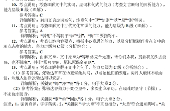 张敬达,字志通,代州人。少以骑射著名,庄宗知之,召今继父职;平河南有功,继加检校工部尚书。明宗即位,历捧圣指挥使、检校尚书左仆射。长兴中,改河东马步军都指挥使,超授检校司徒,领钦州刺史。四年,迁云州。时以契丹率族帐自黑榆林至,云借汉界水草,敬达每聚兵塞下,以遏其冲。契丹竟不敢南牧,边人赖之。未几,晋高祖建义,末帝诏以敬达为北面行营都招讨使,仍使悉引部下兵围太原,以定州节度使杨光远副焉。寻统兵三万,营于晋安乡。末帝自六月继有诏促令攻取,敬达设长城连栅、云梯飞跑,使工者运其巧思,穷土木之力。时督事者每有所构,则暴风大雨,平地水深数尺,而城栅崩堕,竟不能合其围。九月,契丹至,敬达大败,寻为所围。晋高祖及蕃众自晋安寨南门外,长百余里,阔五十里,布以氈帐,用毛索挂铃,而部伍多犬,以备警急。营中尝有夜遁者,出则犬吠铃动,跬步不能行焉。自是敬达与麾下部曲五万人,马万匹,无由四奔但见穹庐如岗阜相属诸军相顾失色始则削木筛粪以饲其马日望朝廷救军及渐羸死则与将士分食之马尽食殚副将杨光远、次将安审琦知不济,劝敬达宜早降以求自安。敬达曰:“吾受恩于明宗,位历方镇,主上授我大柄,而失律如此,已有愧于心也。今救军在近,旦暮雪耻有期,诸公何相迫耶!待势穷,则请杀吾,携首以降,亦未为晚。”光远,审琦知敬达意未决,恐坐成鱼肉,遂斩敬达以降。未帝闻其殁也,怆恸久之。契丹主告其部曲及汉之降者曰:“为臣当如此人!”令部人收葬之。晋高祖即位后,所有田宅,咸赐其妻子焉。时议者以敬达尝事数帝,亟立军功,临难固执,不求苟免,乃近代之忠臣也。(节选自《旧五代史·张敬达传》) 10.下列对文中画波浪线部分的断句,正确的一项是(3分)( A.无由四奔/但见穹庐如岗阜/相属诸军/相顾失色/始则削木筛粪/以饲其马/日望朝廷救军及渐/嬴死/则与将士分食之马/尽食殚/ B.无由四奔/但见穹庐如岗阜相属/诸军相顾失色/始则削木筛粪/以饲其马/日望朝廷救军及渐/羸死/则与将士分食之马/尽食殚/ C.无由四奔/但见穹庐如岗阜相属/诸军相顾失色/始则削木筛粪/以饲其马/日望朝廷救军/及渐羸死/则与将士分食之/马尽食殚/ D.无由四奔/但见穹庐如岗阜/相属诸军/相顾失色/始则削木筛粪/以饲其马/日望朝廷救军/及渐羸死/则与将士分食之/马尽食殚/ 11.下列对文中加点词语相关内容的解说,不正确的一项是(3分)( A.“骑射”即骑马与射箭,是古代“六艺”(礼、乐、射、御、书、数)中“御”“射”两种基本技能。 B.“河南”古指黄河以南地区。《鸿门宴》中“将军战河北,臣战河南”的“河南”与文中同义。 C.“尚书”是古代“三省六部制”中尚书省下属的吏、户、礼、兵、刑、工等六部长官的统称。 D.“长兴”是五代时后唐明宗的年号。我国年号纪年法始于西汉汉武帝,第一个年号为“建元”。 12.下列对原文有关内容的概括和分析,不正确—项是(3分)( A.敬达颇有名声,得到皇上重用。他年少时就以骑射闻名,因此被庄宗赏识而继任父职,后又因军功升职;明宗时多次升迁,还被越级提拔为检校司徒,兼任钦州刺史。 B.敬达设置工事,围攻太原失利。他在末帝催促下攻打太原,采取筑工事围困太原的战术,但天时不利,未有成效,结果战事失败,自己反而被契丹和叛将石敬瑭围困。 C.敬达忠于国家,拒不降敌被杀。他在太原一战中被敌人援军契丹击败,就困守晋安寨,期望雪耻,坚持抗敌,形势穷困下愿以死保全自己军队,其部下就杀了他投降。 D.敬达以死事国,深受大家敬重。他死之后,末帝为之悲恸良久,也得到敌军将领的尊敬,被认为是效仿之典范;他的妻子儿女也受到石敬瑭的善待,被赐予田产住宅。 13.把文中画横线的句子翻译成现代汉语。(10分) 参考答案 10、C 11、A 12、C 13、(1)张敬达常常在边塞聚集兵马,以断绝他们的要道,契丹人最终不敢南侵,边地人民靠张敬达得以安居。 张敬达曾效力于数们皇帝,多次建立军功,在临难时坚守,不求侥幸脱身。 ![]()