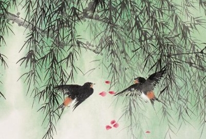 “燕”的意象 。 燕属候鸟,随季节变化而迁徙,喜欢成双成对,出入在人家屋内或屋檐下。因此为古人所青睐,经常出现在古诗词中,或惜春伤秋,或渲染离愁,或寄托相思,或感伤时事,意象之盛,表情之丰,非其它物类所能及。 (1)表现春光的美好,传达惜春之情。相传燕子于春天社日北来,秋天社日南归,故很多诗人都把它当做春天的象征加以美化和歌颂。如“冥冥花正开,飏飏燕新乳”(韦应物《长安遇冯著》),“燕子来时新社,梨花落后清明”(晏殊《破阵子》),“莺莺燕燕春春,花花柳柳真真,事事丰丰韵韵”(乔吉《天净沙·即事》),“鸟啼芳树丫,燕衔黄柳花”(张可久《凭栏人·暮春即事》),南宋词人史达祖更是以燕为词,在《双双燕·咏燕》中写到:“还相雕梁藻井,又软语商量不定。飘然快拂花梢,翠尾分开红影。”尽态极妍,形神俱似。 春天明媚灿烂,燕子娇小可爱,加之文人多愁善感,春天逝去,诗人自会伤感无限,故欧阳修有“笙歌散尽游人去,始觉春空。垂下帘栊,双燕归来细雨中”(《采桑子》)之慨叹,乔吉有“燕藏春衔向谁家,莺老羞寻伴,风寒懒报衙(采蜜),啼煞饥鸦”(《水仙子》)之凄惶。 (2)燕子因结伴飞行而成为爱情的象征。如“落花人独立,微雨燕双飞。”展示了词人梦觉酒醒后凄寂惆怅的心境和对感怀对象的相思之情。 表现爱情的美好,传达思念情人之切。燕子素以雌雄颉颃,飞则相随,以此而成为爱情的象征,“思为双飞燕,衔泥 巢君屋”,“燕尔新婚,如兄如弟”(《诗经·谷风》),“燕燕于飞,差池其羽,之子于归,远送于野”(《诗经·燕燕》),正是因为燕子的这种成双成对,才引起了有情人寄情于燕、渴望比翼双飞的思念。才有了“暗牖悬蛛网,空梁落燕泥”(薛道衡·《昔昔盐》)的空闺寂寞,有了“落花人独立,微雨燕双飞”(晏几道·《临江仙》)的惆怅嫉妒,有了“罗幔轻寒,燕子双飞去”(晏殊·《破阵子》)的孤苦凄冷,有了“月儿初上鹅黄柳,燕子先归翡翠楼”(周德清·《喜春来》)的失意冷落,有了“花开望远行,玉减伤春事,东风草堂飞燕子”(张可久·《清江引》)的留恋企盼。凡此种种,不一而足。 ![]() (3)燕子眷恋旧巢的习性,成为古典诗词表现时事变迁,抒发人事代谢的寄托。 “旧时王谢堂前燕,飞入寻常百姓家。”既暗示了乌衣巷往日的繁华,又袒露了诗人面对今昔变化的无限感慨。表现时事变迁,抒发昔盛今衰、人事代谢、亡国破家的感慨和悲愤。燕子秋去春回,不忘旧巢,诗人抓住此特点,尽情宣泄心中的愤慨,最著名的当属刘禹锡的《乌衣巷》:“朱雀桥边野草花,乌衣巷口夕阳斜。旧时王谢堂前燕,飞入寻常百姓家。”另外还有宴殊的“无可奈何花落去,似曾相识燕归来,小园香径独徘徊”(《浣溪沙》),李好古的“燕子归来衔绣幕,旧巢无觅处”(《谒金门·怀故居》),姜夔的“燕雁无心,太湖西畔,随云去。数峰清苦,商略黄昏雨”(《点绛唇》),张炎的“当年燕子知何处,但苔深韦曲,草暗斜川”(《高阳台》),文天祥的“山河风景元无异,城郭人民半已非。满地芦花伴我老,旧家燕子傍谁飞?”(《金陵驿》)。燕子无心,却见证了时事的变迁,承受了国破家亡的苦难,表现了诗人的“黍离”之悲,负载可谓重矣。 (4)代人传书,幽诉离情之苦。唐代郭绍兰于燕足系诗传给其夫任宗。任宗离家行贾湖中,数年不归,绍兰作诗系于燕足。时任宗在荆州,燕忽泊其肩,见足系书,解视之,乃妻所寄,感泣而归。其《寄夫》诗云:“我婿去重湖,临窗泣血书,殷勤凭燕翼,寄于薄情夫。”谁说“梁间燕子太无情”(曹雪芹·《红楼梦》),正是因为燕子的有情才促成了丈夫的回心转意,夫妻相会。郭绍兰是幸运的,一些不幸的妇人借燕传书,却是石沉大海,音信皆无,如“伤心燕足留红线,恼人鸾影闲团扇”(张可久·《塞鸿秋·春情》),“泪眼倚楼频独语,双燕来时,陌上相逢否”(冯延巳·《蝶恋花》),其悲情之苦,思情之切,让人为之动容,继而潸然泪下。 (5)表现羁旅情愁,状写漂泊流浪之苦。“整体、直觉、取象比类是汉民族的主导思维方式”(张岱年·《中国思维偏向》),花鸟虫鱼,无不入文人笔下,飞禽走兽,莫不显诗人才情。雁啼悲秋,猿鸣沾裳,鱼传尺素,蝉寄高远,燕子的栖息不定留给了诗人丰富的想象空间,或漂泊流浪,“年年如新燕,飘流瀚海,来寄修椽”(周邦彦·《满庭芳》);或身世浮沉,“望长安,前程渺渺鬓斑斑,南来北往随征燕,行路艰难”(张可久·《殿前欢》);或相见又别,“有如社燕与飞鸿,相逢未稳还相送”(苏轼·《送陈睦知潭州》;或时时相隔,“磁石上飞,云母来水,土龙致雨,燕雁代飞”(刘安·《淮南子》)。