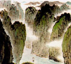 [注释] 白帝城:故址在今四川省奉节县白帝山上。它下临长江,距三峡西口夔门极近。白帝山虽不高峻,但从江船仰望,却仿佛城接云霞。杨齐贤注:“白帝城,公孙述所筑。初,公孙述至鱼复,有白龙出井中,自以承汉土运,故称白帝,改鱼复为白帝城”。王琦注:“白帝城,在夔州奉节县,与巫山相近。所谓彩云,正指巫山之云也”。前人或以此诗为李白青年出蜀时所作。然细审“千里江陵一日还”诗意,可知曾从江陵上三峡,此当为返还之作。应是乾元二年(759)被流放夜郎途中,到白帝城时忽遇赦命,即回舟抵江陵时所作。 辞:别,离开。这里指出发。 白帝:白帝城。 彩云间:因白帝城在白帝山上,地势高耸,从山下江中仰望,仿佛耸人云间。 千里:白帝城到江陵约六百余里,这儿说千里,是大略的说法,形容两地相距之远。 江陵:今湖北江陵县。从白帝城到江陵约一千二百里,其间包括七百里三峡。《水经注》卷三四《江水》“自三峡七百里中,两岸连山,略无阙处。重岩叠障,隐天蔽日,自非亭午时分,不见曦月。至于夏水襄陵,沿泝阻绝。或王命急宣,有时朝发白帝,暮到江陵,其间千二百时里,虽乘奔御风,不以疾也。……每至晴初霜旦,林寒涧肃,常有高猿长啸,属引凄异。空谷传响,哀啭久绝。故渔者歌曰:'巴东三峡巫峡长,猿鸣三声泪沾裳'。” 啼:鸣叫,猿的叫声象啼哭。 轻舟:指载得轻行得快的船。 [译诗、诗意] 1早晨告别朝霞缭绕的白帝城,一日间行程千里回到江陵。两耳边仍然响着沿岸猿叫声,轻轻的船儿早已越过千山万岭。 2 清晨辞别彩云里的白帝城,一天时间就到达千里江陵。两岸的猿猴不住声地啼叫,轻快客船飞过了青山万重。
