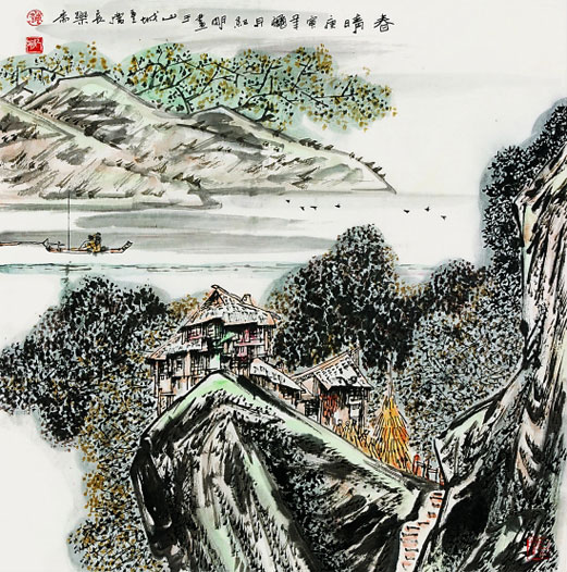 王守仁 林下春晴风渐和,高崖残雪已无多。 游丝冉冉花枝静,青壁迢迢白鸟过。 忽向山中怀旧侣,几从洞口梦烟萝。 客衣尘土终须换,好与湖边长芰荷。 注释 ①游丝:漂浮在空中的蛛丝。冉冉:柔软下垂的样子。如曹植《美女篇》:“柔条纷冉冉,落叶何翩翩。” ②青壁:此处指雪后光滑的石板路。旧时驿道多为石板辅成。迢迢:形容遥远。 ③芰荷(jì hé):芰,菱。荷,荷花。 译文 林下春光明媚风儿渐渐平和,高山上的残雪已经不多。 垂吊在空中的蛛丝冉冉飘动花枝静谧,远远的看见白鸟从石板路上面飞过。 忽而在山中怀念起旧时的朋友,多少回梦到洞口雾气缭绕的藤萝。 衣服沾满尘土最终要换下呵,好到湖边采荷花与菱角。 ![]() 作者 王守仁(1472~1529),浙江余姚人,字伯安,号阳明子,世称阳明先生,故又称王阳明。是明代著名的思想家、文学家。 简析 这是一首描写景物的诗,诗中记叙了初春风和日丽的景色,诗人抓住和风、残雪、冉冉飘动的蛛丝、静谧的花枝、远处飞过的鸟儿等景物极力烘托出初春的温馨,但诗人的本意并不在于赏春,而是通过对春日风光的咏赞,排遣被贬谪后的抑郁情怀。这首诗表面写景,实为表现诗人复杂的心情,在诗的最后,诗人从内心发出“客衣尘土终须换”的感叹,便是希望尽快的结束贬谪生活的心声。