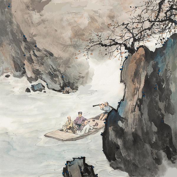 【参考译文】 译文二 双桨划破长满莼菜的水波,整个蓑衣淋着松林的密雨,暮霭生愁渐渐充满空阔的天地。呼唤鸥鸟我愿与它结盟隐逸,它翩翩飞舞似欲降下,却又背人转身掠过树梢远去。那次归返吴兴,荡开云雾寒雪,乘着孤舟连夜起程。伤心往事今又重见,依稀隐约的是秀眉一样连绵的山峰,像青色黛痕低压着双眸脉脉含情。 小舟驶入采香小溪,那里正是早春寒冷,老夫我婆娑起舞,独自放歌谁来回应?在垂虹桥头向西遥望,孤舟御风引领我飘然远行,这真是平生难以遏止的豪情逸兴!待我酒醒顺波舟行已渐远,我正凝神思念,她耳戴明珠闪闪,足裹裹袜纤纤,如今美人何在?唯有倚眺的栏杆,伴人徘徊片刻间。 ![]() 赏析 《庆宫春·双桨莼波》是南宋词人姜夔创作的一首记游怀人之词。词小序把写作背景、时地、缘由交代得较清楚。上片写泛舟垂虹忆旧,描写冬末春初寂寥景色,追忆与伊人泛舟夜归情景,抒写物是人非的惆怅。下片触景兴怀,表现泛舟远行、胸襟开阔、逸兴腾飞的风致和知音不在的空落。全词意境空灵浑融,格调高雅清远,词采精工秀逸。 从小序看,这首词是一首写景纪游之词,但从全词看,则兼有伤逝、怀古、怀人等多重内容。此词的妙处正在将多重主旨溶成一片,复杂含混,意蕴丰厚。 上片从环境入手,开篇便描绘出一幅凌寒荡舟的广阔画面:飘浮着莼菜的水面,双桨划动;松风时送雨点,冷凝在蓑笠上;暮霭渐渐笼罩湖上,令人生愁。起三句“莼波”、“松雨”、“暮愁”,或语新意工,或情景交融,“渐”字写出时间的推移,“空阔”则展示出境界的深广,为全词定下了一个清旷高远的基调。以下三句继写湖面景象:沙鸥在湖上盘旋飞翔,仿佛要为“我”落下,却又背人转向,远远掠过树梢。沙鸥亲切可爱之情态毕现。因为故地重游,所以称这些水鸟为“盟鸥”(和“我”有旧交的鸥鸟。)后三句忽尔转到五年前雪夜荡舟的情景:“那回归去,荡云雪、孤舟夜发”,正是:“笠泽茫茫雁影微,玉峰重叠护云衣……”眼前隐约出现的又是那重叠蜿蜒的远山,这是旧梦重温,然而当年的人去不知到何处去了。结句“伤心重见”三句,挽合今昔,感慨遥深。“依约眉山,黛痕低压”,将太湖远处的青山,比作女子的黛眉,不是无缘无故作形似之语,而显然有伤逝怀人的情绪。所谓伤逝怀人,则可能既有对友人范成大的追念,又有对范成大所赠歌妓小红的想念,而且还似有对合肥情侣的深深思念(正是是年正月,词人与合肥情侣惜别,已有近一年矣)。朦胧迷离,曲尽其妙。 下片过拍写船过采香径。这是香山旁的小溪,据《吴郡志》:“吴王种香于香山,使美人泛舟于溪以采香。今自灵岩望之,一水直知矢,故俗又称箭径。”面对这历史古迹,最易引发人的思古之幽情,“嗟叹之不足,故永歌之。”“老子婆娑(犹徘徊),自歌谁答。”对照“那回归去”的情景——“自作新词韵最娇,小红低唱我吹箫”,而今老夫对山川歌舞,有谁应答?仍与上片结句伤逝情绪一脉相承。西望是垂虹桥,它建于北宋庆历年间,东西长千余尺,前临太湖,横截吴江,河光海气,荡漾一色,称三吴绝景,以其上有垂虹亭,故名。船过垂虹,也就成为这一路兴致的高潮所在。从“此兴平生难遏”一句看,这里的“飘然引去”之乐,实兼今昔言之。这一夜船抵垂虹时,作者曾以“卮酒”袪寒助兴,在他“飘然引去”时,未尝不回想那回“曲终过尽松陵路,回首烟波十四桥”的难以忘怀的情景。从而,当其“酒醒波远”后,不免黯然神伤。“政(正)凝想、明珰(耳坠)素袜。”“明珰素袜”借指美人。曹植《洛神赋》有“凌波微步,罗袜生尘。”“无微情以效爱兮,献江南之明珰”句。这里“明珰素袜”所代的美人,联系“采香径里春寒”句,似指吴宫西子,而联系“那回归去”,又似指小红。还可能是远隔千里,年初与自己依依惜别的合肥情侣。其妙正在于怀古与思念之情合一,又不说明,反令人神远。末三句即以“如今安在”四字提唱,“唯有阑干,伴人一霎”一叹作答,指出千古兴衰、今昔哀乐,犹如一梦,由怀想跌到眼前,收束有力。而伤怀幽怨,余味不尽。 从小序看,这一夜同游共四人,且相呼步行于垂虹桥,观看星斗渔火,而词中却绝少征实描写。惟致力刻画在这云压青山、暮愁渐满的太湖之上、垂虹亭畔飘然不群,放歌抒怀的词人自我形象,颇有遗世独立之感。