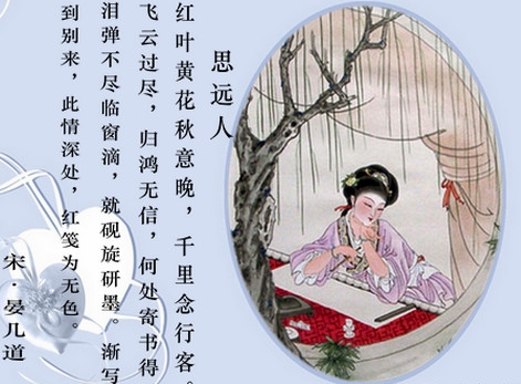 “飞云过尽,归鸿无信,何处寄书得?”出自晏几道《思远人》 思远人 晏几道 红叶黄花秋意晚,千里念行客。 飞云过尽,归鸿无信,何处寄书得? 泪弹不尽临窗滴,就砚旋研墨。 渐写到别来,此情深处,红笺为无色。 [注释] ① 思远人:晏几道创调。词中有“千思念行客”句,取其意为调名。 ② 红叶:枫叶。 ③ 黄花:菊花。 ④ 千里念行客:思念千里之外行人。 ⑤ 旋:便。 ⑥ 红笺为无色:红笺因沾泪而褪色为无色。 【译文】 枫叶红金菊黄已是秋深,我思念千里以外的远行人。天上的浮云散尽,鸿雁杳无踪影,我到哪里投寄书信? 靠着窗滴泪一串串,正好用它研墨把笔运。渐渐写到离别以来,最伤心之处,泪水把信笺的红色冲了个干净。 【译文二】 木叶红,菊花黄,暮秋寒意深,思念千里远行人。飘飞的浮云已然过尽,南归的大雁杳无音信,哪里才能寄出我的书信? 泪水弹洒不尽,任它临窗滴落,就是砚石研成泪墨。渐渐写到离别凄楚,离别情深处,那红格笺纸竟也黯然失色。 译文三 林叶转红,黄菊开遍,又是晚秋时节,我不禁想念起千里之外的游子来了。天边的云彩不断向远处飘去,归来的大雁也没有捎来他的消息,不知道游子的去处,能往何处寄书呢? 我越失望越思念,伤心得临窗挥泪,泪流不止,滴到砚台上,就用它研墨写信吧。点点滴滴,一直写到离别后,情到深处,泪水更是一发不可收,滴到信笺上,竟然把红笺的颜色给染褪了。 ![]() 赏析 《思远人·红叶黄花秋意晚》是北宋词人晏几道创作的一首闺中念远之词。上阕写秋晚而引起思念远方行客的离愁,下阕写愁极和泪研墨写信的情形。词与小晏惯常的“情溢词外,未能意蕴其中”这一风格不同。全词用笔甚曲,下字甚丽,宛转入微,味深意厚,堪称小晏词中别出机杼的异调。 词就“寄书”二字发挥,写以泪研墨,泪滴红笺,情愈悲而泪愈多,竟至笺上的红字褪尽。用夸张的手法表情达意,写出感情发展的历程,是此词艺术上的突出特点。 起首两句,写女主人公因悲秋而怀远,既点明时令、环境,又点染烘托主题。一“晚”字,暗示别离之久,“千里”,点明相隔之远。两句交代了时间和空间,给下文留了铺展的余地。“飞云过尽,归鸿无信”两句是客;“何处寄书得”一句是主。鸿雁,随着天际的浮云,自北向南飞去。闺中人遥望渺渺长空,盼望归鸿带来游子的音信。“过尽”,已极写其失望之意了,由于“无信”,便不知游子而今所在,自己纵欲寄书也无从寄与。 过片词意陡转:弹洒不尽的那两行珠泪,还当窗滴下来,并滴进了砚台中,就用它来研磨香墨。下片出人意表,另开思路。正因无处寄书,更增悲感而弹泪,泪弹不尽,而临窗滴下,有砚承泪,遂以研墨作书。故而虽为转折,却也顺理成章了。明知书不得寄,仍是要写,一片痴情,惘惘不甘,用意尤其深厚。语本孟郊《归信吟》“泪墨洒为书”一句,而情真意足,写出小儿女的情态,巧而不纤,较诸“和泪濡墨”的套语自有深浅真伪之别。“渐写到别来,此情深处,红笺为无色。”收语写闺人此时作书,纯是自我遣怀,她把自己全部的内心本质力量投进其中,感情也升华到物我两忘的境界。对此,陈匪石《宋词举》有一段极为透辟的分析:“‘渐’字极宛转,却激切。‘写到别来、此情深处’,墨中纸上,情与泪粘合为一,不辨何者为泪,何者为情。故不谓笺色之红因泪而淡,却谓红笺之色因情深而无。”无论是泪、墨、红笺,都融进闺人的深情之中,物与情已浑然一体。这首词与小晏惯常的“情溢词外,未能意蕴其中”这一风格不同。全词用笔甚曲,下字甚丽,宛转入微,味深意厚,堪称小晏词中别出机杼的异调。 全词语言质朴,感情真挚自然,不事雕琢却也真切感人。此外,词还有一个特别之处,用泪水将信笺的红色冲掉来写女子的伤心,不仅别出心裁,还有一种别样的韵味,将思念描写得更为形象具体,也更能感动人。
