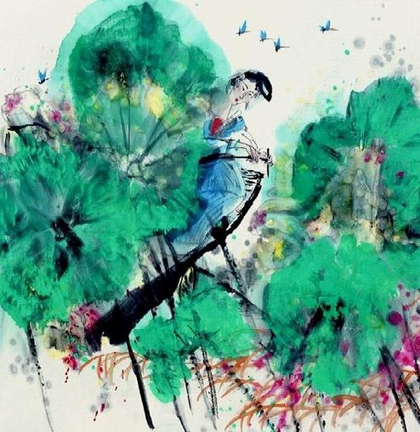 ”“长恨涉江遥,移近溪水住”出自《生查子》 生查子 晏几道 长恨涉江遥,移近溪水住。 闲荡木兰舟,误入双鸳浦。 无端轻薄云,暗作帘纤雨。 翠袖不胜寒,欲向荷花语。 【译文】 长恨离江边太远,为解此难,移到溪水边上住。闲暇时分荡兰舟,不经意间,错入双双鸳鸯浦。轻薄浮云无原由,暗织雨帘,悄悄洒下细雨珠。翠薄衣衫不胜寒,欲对花语,只因凄苦无处诉。 ![]() 赏析 《生查子·长恨涉江遥》是北宋词人晏几道的作品。此词以一个看似平凡的少女荡舟遇雨、娇不胜寒的故事,喻写了一幕爱情的悲剧,同时也寄托了一个不谙世故者生活坎坷、遭遇不幸的身世感慨。全词意味深蕴,含蓄婉转,手法新颖,别具一格。 此词以一个看似平凡的少女荡舟遇雨、娇不胜寒的故事,喻写了一幕爱情的悲剧,同时也寄托了一个不谙世故者生活坎坷、遭遇不幸的身世感慨。全词意味深蕴,含蓄婉转,手法新颖,别具一格。 开篇两句起笔不凡,想像奇特。女主人公感到离江边路太远了,遂移家近溪头,以便涉江采芙蓉,而且溪水流入江中,也将会流到所思之处吧!慰情聊胜于无,两句堪称“痴绝”之语。三、四句又起波澜,她摇荡着木兰船去采芙蓉,却不知不觉误入了双鸳浦。“木兰舟”,以香木制成的船只,泛指佳美的小船。芙蓉,即指荷花。她荡舟缘溪而去,可是却来到触动她孤独情怀之地“双鸳浦”——鸳鸯成双作对的水边。这里妙一“误”字,竟因“双鸳”这样美好的字眼引起她的不快,正所谓“伤心人别有怀抱”。过片二句借写泛舟时遇雨,语意双关,表达了女子被弃时复杂的感情。“无端”,有料想不到之意。那象浮云般轻薄的男子,竟然毫无理由地玩弄女子的感情,被侮辱被损害的女子却只能暗暗地忍受着无穷的痛苦。那几乎是绝望的哀伤、绵绵的遗恨,紧揪着人们的心。“云”、“雨”之喻,本指男女间的欢合,而本词中,却显得如此凄冷悲凉。这里用谴责、痛悔、爱怜几层含意,深刻地写出被弃女子的心理。末两句承“帘纤雨”,意谓她那单薄的衣裳怎抵挡寒风冷雨?只好向荷花诉说自己的幽恨。“翠袖”句,写女子“不胜”风雨之寒,既点出她的软弱无依的可悲处境,也暗示她的清操独守。然而心灵上的创伤是无法消除的,无人倾诉,只能悄悄地共荷花相语。