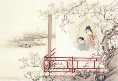 “盈盈秋水,淡淡春山。”这两句是说佳人眼如秋水之清,眉如春山之秀。澹澹,水波动貌。运用了比喻和想象的手法,分别用“秋水”和“春山”比喻思念女子的眼睛和眉毛,想象远方的丈夫正思念自己,使意境更加开阔,也形象的刻画家中的妻子更加年轻娇美。 出自阮阅《眼儿媚·楼上黄昏杏花寒》 楼上黄昏杏花寒,斜月小栏杆。一双燕子,两行征雁,画角声残。 绮窗人在东风里,无语对春闲。也应似旧,盈盈秋水,淡淡春山。 注 ①阑干:即栏杆。 ②画角:有彩绘的号角。 ③绮窗:雕镂花纹的窗子。 参考译文 黄昏时登楼而望,只见杏花在微寒中开放,一钩斜月映照着小楼的栏杆。一双燕子归来,两行大雁北飞,远处传来断断续续的号角声。华美的窗前,一位佳人立于春风中,默默无语,闲愁万种。也应像往日一样,眼如秋水般清亮,眉似春山般秀美。 ![]() 赏析 《眼儿媚·楼上黄昏杏花寒》为北宋阮阅所作。这首词运用白描与想象,上片写景,暗写人的情思;下片写人,有形有神,有心理刻划,虽然没有浓墨重彩的涂抹,却更显深情。词的上篇着重描写词人登楼所见之景,下片侧重抒发怀人思念之情。 起首两句以形象鲜明的笔触绘出了一幅早春图:春寒料峭,杏花初绽,绣楼栏杆,夕阳斜月。这是景物描写,它暗写了人物活动的时间、地点,为人物勾出了一个典型环境。联系上下文,读者从这环境烘托中可以看到:一位思妇在早春二月杏花初绽之时,迎着料峭的春寒,登上色彩绮丽的绣楼,倚在栏杆旁,看着落日晚霞飞舞、斜月冉冉升起。她静静地观看眼前景,默默地思念远方征人。这幽静、凄寒的典型环境,正暗暗地烘托出一个忧思难奈的人物情态。黄昏,指登楼时刻;杏花寒,谓登楼季节。据《花候考》,雨水这个节气中,一候菜花,二候杏花,三候李花,其时当二月。但这里兼有描写环境的作用,故而于清冷中显出幽美。 词人独上层楼,极目天涯,无边思绪,自会油然而生。何况登楼之际,春寒料峭,暮色苍芒,一钩斜月,映照栏干,这种环境,多么使人感到孤单凄凉。下面三句,写登楼所见所闻。“一双燕子,两行征雁”,含意深长。燕本双飞,雁惯合群,特写“一双”、“两行”,反衬词人此际的孤独。耳边还传来城上的画角声,心情之凄楚,可以想见。上片写景,然景中有情,情中见人。 下片由写景到抒情。此情是怀人之情,怀人又从悬想对方着笔。“绮窗”,谓雕饰华美的窗棂。唐王维《扶南曲歌辞》云“朝日照绮窗,佳人坐临镜”,把佳人与绮窗分作两句,意境优美;阮阅此词则将绮窗与人合并一起,径称“绮窗人”,语言更加浓缩,形象更加鲜明。仿佛词人从这熟悉的华美的窗口透视进去,只见其人亭亭玉立于春风之中,悄然无语。这里的“无语”,实际上就是深思:“春闲”,实际上是春愁。就中可以看出.窗内人是一个深于情的女子。结尾两句“盈盈秋水,淡淡春山”,渭佳人眼如秋水之清,眉似春山之秀。前面着以“也应似旧”…句,词情顿然跳出实境,转作冥想之笔。 作者在上下阕的末三句分别写燕子成双,大雁成群,皆是实写所见。以秋水喻美人明眸,以春山状美人黛眉,则是作者想象的虚景。双燕、雁阵反衬出独身一人,秋水、春山突出词人对佳人的怀思。这两处的手法前人也用,并不新奇。但所用的章法结构极有意思。徐培均指出,歇拍“前两句对起,后一句单收,似《浣溪沙》的后片,形成不稳定感,易于过渡”。而结拍首句不对称,后二句对称,正好与歇拍相反。这种结构在韵律上有所更张,增加了全词的活泼感。