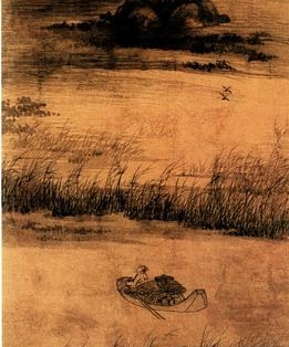 “鹜落霜洲,雁横烟渚,分明画出秋色。”的词意:野鸭飞落在霜露覆盖的小洲,大雁横越于雾霭笼罩的小渚。清楚地勾画出一幅秋色图。这两句描绘洲渚宿鸟,对偶工整,“落”字、“横”字使整个画面充满了灵动感;而“霜”字与“烟”字又使得这幅画面水雾弥漫,多了几分迷蒙之感,虽为景语,但其愁情,已隐然言外。“分明画出秋色”一语,不仅音节响亮,读来铿锵有力,更使读者有一种如置身画中之感。 出自柳永《倾杯·鹜落霜洲》 鹜落霜洲,雁横烟渚,分明画出秋色。暮雨乍歇,小楫夜泊,宿苇村山驿。何人月下临风处,起一声羌笛。离愁万绪,闲岸草、切切蛩吟似织。 为忆芳容别后,水遥山远,何计凭鳞翼。想绣阁深沉,争知憔悴损,天涯行客。楚峡云归,高阳人散,寂寞狂踪迹。望京国。空目断、远峰凝碧。 注释 ⑴倾杯:唐教坊曲名,后用作词牌,又名《古倾杯》、《倾杯乐》等,《乐章集》有七调,此词为“散水调”。双调一百四字,上片十句四仄韵,下片十二句六仄韵 ⑵鹜(wù):野鸭。王勃《滕王阁序》:“落霞与孤鹜齐飞,秋水共长天一色。” ⑶烟渚:雾气笼罩的水中小洲。孟浩然《宿建德江》:“移舟泊烟渚,日暮客愁新。” ⑷小楫:小船。楫,船桨,此处代指船。 ⑸苇村山驿:指僻野的村驿。苇、山为互文,指僻野。 ⑹离愁万绪:离愁别绪千般万种。 ⑺切切:拟声词,蟋蟀的鸣叫声。蛩(qióng):蝗虫、蟋蟀的别名。 ⑻鳞翼:鱼雁,古人以为鱼雁能为人传递书信。 ⑼争知:怎知。损:表程度,意为极。 ⑽楚峡:巫峡。 ![]() 译文 野鸭飞落在霜露覆盖的小洲,大雁横越于雾霭笼罩的小渚。清楚地勾画出一幅秋色图。傍晚的雨刚刚停歇。天黑了,一叶小舟靠岸停泊,寄宿在荒村驿店。何人迎风站在月光下?一阵阵的羌笛声与河岸草丛里切切的蟋蟀声交织一起,引起离愁万绪! 只为思恋。与佳人别后,山水相隔,相距遥远,靠什么来传递书信呢?想来绣阁深枕中的佳人,怎么也不会知道浪迹天涯的游子如今已是身心俱损、憔悴不堪!巫峡幽会已逝,高阳酒徒已散,只有身心的寂寞孤独、行为的放荡不羁。眺望京都,徒然望断远方浓绿的山峰。 译文二 一只野鸭自天落。落到霜打过的汀州上。一群大雁一字横,飞过烟波洲渚。画出一幅秋景图。小船夜泊,宿苇村山下驿站。月下临风处,何人弄羌笛。幽怨声声。离愁别绪本伤情,又哪堪,岸草蛩吟切切似织机。 想佳人。自别后,娇容常常眼前复。八尺书送给你。无奈,山高水又远,鲤鱼大雁也无计。想你身居深阁绣楼里,可知我,四处游役天涯苦,为伊消得人憔悴。笙歌艳舞已消歇,幕宴朝欢,酒友诗朋各分散。寂寞无踪迹。看京城,不可见。碧绿远峰断目线,空凝望。 韵译 一层落寞的清霜,一只沉思的水鸟;一团迟疑的烟雾,一列背井离乡的雁阵。 明晃晃的秋色一如江水,流淌着我的哀愁。 傍晚的雨和飘荡的小舟,演绎着一段伤心别离。 我在舟中,舟在雨中,雨细密如发丝无边无际。 借宿的旅店就在山脚,萧萧芦苇摇曳在我心里。 谁在月色初现的时刻吹起羌笛,秋风掀动他单薄的衣衫在寂寞里舞蹈? 你姣好的面庞盛开在我的梦里,梦的周围是万亩金黄的秋草。 我听着蟋蟀细密的鸣叫入睡,像一直蚕蛹那样安详地等待飞翔的时刻。 不知道分别以后已经跋涉了多少山水,如果生出双翼,我会在天空高高的飞;如果沉入温柔的河水,我应该长满锦绣鳞片,以最优美得姿态环游在你周围。 夜深人静时你会计算我的归程;你开门的时候,我还在千里之外。 曾经的风花雪月如今只能对月伤怀,我的天涯比你的梦更遥远。 伸出一双手,托住了谁的憔悴容颜? 一行眼泪把谁的坚守滴穿? 萧索的情怀盼望有你深情地投入,多少次梦醒时分已是曲终人散。 我正走在一条我并不熟悉的路上,纤纤素手和俊眼修眉滞留在昨日的山川,让我的每一次回望都嘘唏感叹。 在通往帝京迷茫的路途上,我看见天地的眉宇间有你紧蹙的峰峦。 简析 秋暮,芦苇丛生的小洲,水鸟落下,雁群横列,好一派深秋江景。行舟靠岸,客子住进了村驿站,心境悲凉可知。是夜偏闻芦笛,是关山月?是落梅风?平添几分羁怨。笛声过后,再来一阵唧唧蛩吟,客子更无法睡了。词在秋声上做文章,大有助于抒情。 ![]() 赏析 《倾杯·鹜落霜洲》是北宋词人柳永的一首词。柳永成年后离开家乡福建崇安县,虽寓居京都汴梁,但生活一直比较动荡。中举前为求取功名、维持生计,四处干谒漫游,中举后又为官务公事奔走在外,羁旅行役成了他的家常便饭。他对羁旅漂泊的苦况有着深切的体会乃至清醒的认识,为后人留下了许多羁旅行役词,这首《倾杯》就是其中之一。观词中内容,应为柳永远游之后返程途中所作。 词的上片词人工巧地描画出了一幅有声有色、声色并茂的秋色图;下片写词人对别后佳人的无限思恋,又因“水遥山远”既不能通信更不能相见,于是离愁万绪,无限悲伤,以致身心俱损、憔悴不堪!整首词上、下片一气贯通,浑然一体,感情起伏跌宕,把离情别苦渲染得淋漓尽致,具有很强的艺术感染力,堪称佳作。 此词用曲折多变的笔法描绘了清寂的山光水影,寄寓着词人落拓江湖的身世之感,构成一幅游子秋日行吟的连环画卷。词人在旅行途中言情,扩大了人物情感活动的空间,并且充实了言情的社会内容,将词的创作引向广阔的天地,在词史上乃是创举。 词的上片写景,点染出雨后夜泊的情状。起首两句描绘洲渚宿鸟,对偶