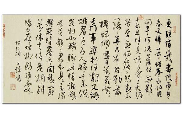 惜春长怕花开早,何况落红无数。 [译文] 珍惜春光的我总怕花儿开得太早,何况眼前飘落红花无数。 [出自] 南宋 辛弃疾 《摸鱼儿》 淳熙己亥,自湖北漕移湖南,同官王正之置酒小山亭,为赋。 更能消几番风雨?匆匆春又归去。惜春长怕花开早,何况落红无数。春且住,见说道、天涯芳草无归路。怨春不语。算只有殷勤,画檐蛛网,尽日惹飞絮。 长门事,准拟佳期又误。蛾眉曾有人妒。千金纵买相如赋脉脉此情谁诉?君莫舞,君不见、玉环飞燕皆尘土!闲愁最苦。休去倚危栏,斜阳正在、烟柳断肠处。 注释: 同官王正之:据楼钥《攻媿集》卷九十九《王正之墓志铭》,王正之淳熙六年任湖北转运判官,故称“同官”。 消 :经受。 落红:落花。 算只有殷勤:想来只有檐下蛛网还殷勤地沾惹飞絮,留住春色。 长门:汉代宫殿名,武帝皇后失宠后被幽闭于此,司马相如《长门赋序》:“孝武陈皇后,时得幸,颇妒。别在长门宫,愁闷悲思,闻蜀郡成都司马相如天下工为文,奉黄金百万,为相如,文君取酒,因以悲愁之辞,而相如为文以悟主上,陈皇后复得幸。” 脉脉:绵长深厚貌。 君:指善妒之人。 玉环飞燕:杨玉环、赵飞燕,皆貌美善妒。 危栏:高楼上的栏杆。 ![]() 译文1: 还能经得住多少风雨?春天又将匆匆逝去。珍惜春光的我总怕花儿开得太早,何况眼前飘落红花无数。春天你且留步,难道没听说芳草已铺满天涯,遮住了你的归路?我怨恨春天为什么默默不语。看来最殷勤的要算那画檐下的蛛网,终日忙着粘惹杨柳的飞絮,希望将春天留住。 长门官盼望佳期,一定又被贻误。因为才能出众,被人妒忌,纵然像陈皇后那样用千金买来司马相如的辞赋,这一片脉脉深情又向谁去倾诉?那些得宠的小人不要得意,你们没看到杨玉环和赵飞燕如今都化为了尘土了吗?闲散无聊最令人愁。还是别去登高凭栏,斜阳映照之下,就是那令人断肠的迷蒙烟柳。 译文2: 还能经受得住几番风风雨雨,匆匆忙忙,春天又要归去。我珍惜春光长怕花儿开得太早,何况如今已落红无数?春天啊,请停住你的脚步。你没听说吗,芳草已遍布了天涯海角,你已经没有归路。我真怨恨,春光对我的痴情衷情不屑一顾,又默默地归去。看起来,对春天有真情实意的,只有那些画檐上的蜘蛛网,终日里尽量沾惹点点飘飞的柳絮。 长门之事,预定好的日期又误,美人一定被人诋毁嫉妒。即便花费千金购买司马相如的长门赋,君王不肯见我,我的无限深情又向谁倾诉?那些得宠的美人们,你们也不要欢歌曼舞。你们没看到?当年杨玉环、赵飞燕,比你们不知受宠多少倍,可她们都死得那么可悲而又痛苦,如今已成了尘土。闲愁最苦,不要去凭栏高高的栏杆远望,一轮将要沉落的斜阳,正在那烟柳迷茫的令人断肠的去处。 【评点】 本篇为惜春抒怀之词。 上片描写暮春衰残景色,惋惜春逝,隐含身世家国之痛。“更能消、几番风雨,匆匆春又归去。”写此时已到了暮春时节,经不起几回风雨,春天就会匆匆归去了。“惜春长怕花开早,何况落红无数”二句,写词人的惜春的心理:我常怕花开得过早,何况此时已落红无数。 “春且住”三句,是词人对将要离开的“春”深情的倾诉:春天啊,请暂且留步,难道没听说,连天的芳草已阻断你的归路?但春天不答话,依然默默地兀自离去。“算只有殷勤,画檐蛛网,尽日惹飞絮”,只剩下殷勤多情的雕梁画栋间的珠网,为留住春光整天沾染飞絮。 下片借写美人失宠抒发词人闲寂不遇的愁郁和满腔爱国热忱无处倾诉的痛苦。词人借古代宫中几个女子的遭遇,比喻自己此时境遇,进一步抒发其“蛾眉见妒”的感慨。最后以写景结尾,余味不尽。 全词托物起兴,借古伤今,融身世之悲和家国之痛于一炉,沉郁顿挫,寄托遥深。 ![]() 赏析: 这篇《摸鱼儿》作于淳熙六年(1179)春。时辛弃疾四十岁,南归至此已有十七年之久了。在这漫长的岁月中,作者满以为扶危救亡的壮志能得施展,收复失地的策略将被采纳。然而,事与愿违。不仅如此,作者反而因此遭致排挤打击,不得重用,接连四年,改官六次。这次,他由湖北转运副使调官湖南。这一调转,并非奔赴他日夜向往的国防前线,而是照样去担任主管钱粮的小官。现实与他恢复失地的志愿相去愈来愈遥远了。行前,同僚王正之在山亭摆下酒席为他送别,作者见景生情,借这首词抒写了他长期积郁于胸的苦闷之情。 这首词表面上写的是失宠女人的苦闷,实际上却抒发了作者对国事的忧虑和屡遭排挤打击的沉重心情。词中对南宋小朝廷的昏庸腐朽,对投降派的得意猖獗表示强烈不满。 上片写惜春、怨春、留春的复杂情感。 词以“更能消”三字起笔,在读者心头提出了"春事将阑",还能经受得起几番风雨摧残这样一个大问题。 表面上,“更能消”一句是就春天而发,实际上却是就南宋的政治形势而言的。本来,宋室南渡以后,曾多次出现过有利于爱国抗金、恢复中原的大好形势,但是,由于朝廷的昏庸腐败,投降派的猖狂破坏,使抗战派失意受压,结果抗金的大好时机白白丧失了。这中间虽有几次北伐,结果均以屈膝投降而告终。北伐的失败,反过来又成为投降派贩卖妥协投降路线的口实。南宋王朝处于风雨飘摇之中。 “匆匆春又归去”,就是这一形势的形象化写照,抗金复国的大好春天已经化为乌有了。这是第一层。 但是,作者是怎样留恋着这大好春光呵!“惜春长怕花开早”。然而,现实是无情的:“何况落红无