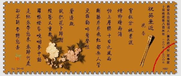 是他春带愁来,春归何处?却不解、将愁归去。 [译文] 是“春”把愁带来的,如今不知“春”又将归向何处?可是它却不曾把“愁”也一起带走。 [出自] 南宋 辛弃疾 《祝英台令·晚春》 宝钗分,桃叶渡,烟柳暗南浦。怕上层楼,十日九风雨。断肠片片飞红,都无人管,更谁劝、流莺声住。 鬓边觑,试把花卜心期,才簪又重数。罗帐灯昏,呜咽梦中语。是他春带愁来,春归何处?却不解、将愁归去。 注释: 祝英台令:调名取梁山伯、祝英台故事。 宝钗分:钗为古代妇女簪发首饰。分为两股,情人分别时,各执一股为纪念。宝钗分,分钗,以作留念,即夫妇离别之意。白居易《长恨歌》:“唯将旧物表深情, 钿合金钗寄将去. 钗留一股合一扇, 钗擘黄金合分钿。” 桃叶渡:在南京秦淮河与青溪合流之处。晋王献之与妾作别处。其故址在南京秦淮河与清溪合流处。《古乐府注》:“王献之爱妾名桃叶,尝渡此,献之作歌送之曰:'桃叶复桃叶,渡江不用楫。但渡无所苦,我自迎接汝。'” 南浦:水边,泛指送别的地方。江淹《别赋》:"春草碧色,春水绿波,送君南浦,伤如之何。"泛指送别的地方。 飞红:落花。 觑(qù):窥视,斜视。 这三句是说细看鬓边的花儿,拿下来数花片以卜归期,才插上又忘了,因而取下来重数一遍。 试把:花卜之法未详,当是以所簪花瓣之单双,占离人归信之准的,故云:"才簪又重数"也。 才簪又重数:数花瓣卜行人归期,怕不准确又数一次。 译文1: 你我在桃叶渡口分别,宝钗也分成两股。河岸边烟柳一片,水面上茫茫烟雾。我真不敢上高楼向远望去,日日都是凄风苦雨。落花一片片,飞在空中令我悲伤,却全然无人怜惜。更没有人去劝一劝黄莺,让它不要歌唱,不要一声声让春天归去。 我细看鬓边的花朵,细数一片一片占卜他的归期。刚刚插回,又摘下来重新再数,思他心切。罗纹的帷帐中灯光昏暗沉沉,我在梦中自语:是春天把愁带来,可是春天却又归向哪里? 译文2: 就在桃叶渡,这个千古伤心离别的地方,我和郎君折钗相赠,分钗留别的情景至今历历在目。远处的江岸上,烟柳迷朦,充满感伤。和他分别之后,凄苦怅惘的相思就时刻折磨着我。悲莫悲兮生别离。和听分别之后,从此,我最怕登上高楼,因为十天中九天有风雨,片片花瓣在风雨中飘零,都没有人管,还有谁去劝黄莺的哀啼声能不停下来呢? 鬓边觑花,我对着镜子把鬓边刚插的鲜花摘下来细细看,接着用花瓣算了一卦,看他什么时候能回来,才把才花簪在头上,取下来又重数了一遍。帏帐里灯昏黄暗淡下来,我在梦中哭泣,自言自语:春天,真怨恨你,忧愁是你带来的,如今你要去哪儿?你为什么不解我怀人盼归之情,为什么还不将愁都带走呢? 【评点】 本篇为闺怨词。以女子口吻写思妇离愁。 上片写登楼忆别触景伤怀。前三句词人以两个与送别有关的典故,追忆了与情人分别时的情景。“宝钗分”是古时女子的一种簪发首饰,分为两股,分别时夫妻各执一股,作为纪念。“桃叶渡”,点出两人分别的地点,晋王献之曾在此送别其妾桃叶,故称桃叶渡;“烟柳暗南浦”,写暮春时节江岸上柳阴迷蒙烟霭纷纷的景色,渲染了送别的凄楚的气氛。“怕上层楼,十日九风雨”写别后的情景,自别后我最怕上高楼,因为十有九日天风雨袭人。与其说是怕风雨,不如说怕孤单登楼,恐怕触景生情,怕满眼是让人伤心的片片落叶。但这破败的景象“都无人去管”,还有谁去劝阻黄莺催春。词人的怨春怀人之情跃然纸上。 下片写女子苦苦企盼心上人回归、夜眠难安的苦楚。词刻画闺中女子柔媚多情、天真娇痴声情毕肖,栩栩如生。“鬓边觑,应把花卜归期,才簪又重数”写女子的神态和动作,只见她对镜看自己鬓边的花朵,试着数花瓣占卜心上人的归期,但数了多次也数不准。“觑”字用得好,将女子娇懒慵倦的姿态和百无聊赖的神情,刻画得极为生动;而女子数花瓣卜归期的动作让人觉得可笑而又心酸,充分表现了女子的痴情。末六句写女子的梦呓,帷帐里灯火昏黄,她在睡梦中泣不成声:“是他春带愁来,春归何处?却不解、带将愁去。”词人以问句的形式,将女子满腹的痴情怨语真实反映出来,表现了痴情女子为春愁所苦而又无计可施的心态。 赏析: 这首《祝英台近。晚春》抒发了闺中少妇惜春怀人的缠绵悱恻之情,写得词丽情柔,妩媚风流,却是与作者纵横郁勃的豪放风格迥然不同的。 上阕头三句巧妙地化用了前人的诗意,追忆与恋人送别时的眷眷深情。“宝钗分”,前人以分钗作为分别留赠的信物:“桃叶渡”,指送别之地:“烟柳暗南浦”,渲染了暮春时节送别,埠头烟柳迷濛之景。三句中连用了三个有关送别的典故,最后融会成一幅情致缠绵的离别图景,烘托出作者凄苦怅惘的心境。自从与亲人分袂之后,遭遇了横雨狂风,乱红离披,为此怕上层楼,不忍心再目睹那场景。伤心春去,片片落红乱飞,都无人管束得住,用一个“都”字对“无人”作了强调。江南三月,群莺乱飞,人们感到莺啼预示春将归去。所以寇准说“春色将阑,莺声渐老”(《踏莎行》)。“都无人管”与“更谁劝”,进一步抒发了怨春怀人之情。 下阕笔锋一转,由渲染气氛烘托心情,转为描摹情态。其意虽转,但其情却与上阕接连不断。“鬓边觑”三字,刻画少妇的心理状态细腻密致,维妙维肖。 一个“觑”字,就把闺中女子娇懒慵倦的细微动态和百无聊赖的神情,生动地刻画出来。“试把”两句是觑的结果