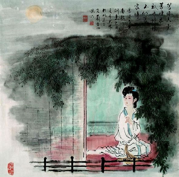 旧时天气旧时衣,只有情怀不似旧家时。 [译文] 想起旧事,同样的天气,同样的衣衫,只是经历了沧桑的心情,不再和从前一样了。 [出自] 李清照 《南歌子·天上星河转》 天上星河转,人间帘幕垂。凉生枕簟泪痕滋。起解罗衣聊问夜何其。 翠贴莲蓬小,金销藕叶稀。旧时天气旧时衣。只有情怀不似旧家时。 注释: 星河:银河,到秋天转向东南。 何其:“其”,语助词。 翠贴、金销:用金翠的藕莲花样作衣上的妆饰,为下句“旧时衣”的形容词。 “翠贴”、“金销”,即贴翠、销金,均为服饰工艺。在衣服上用细线缝连花饰,不见针脚叫“贴”;以金饰物叫 “销金”,此指衣上花饰用金箔或金线制成。 《诗词曲语辞汇释》卷六:“旧家犹言从前,家为估量之辞。”其所引例中即有本句。 译文: 天上星河转移,人间烟幕笼罩。秋凉从枕席间透出来,枕上褥边,点点斑斑是撒的泪痕。难耐这秋夜的清寂与清寒,起身更衣,问夜已几何。 取出那件贴着翠色莲蓬、金色荷叶绣样的褥衣,睹物而思情,更加伤感。想起旧事,同样的天气,同样的衣衫,只是经历了沧桑的心情,不再和从前一样了。 赏析: 这首《南歌子》所作年代不详,但从抒发国破家亡之恨来看,似为流落江南后所作。 “天上星河转,人间帘幕垂”,以对句作景语起,但非寻常景象,而有深情熔铸其中。“星河转”谓银河转动,一“转”字说明时间流动,而且是颇长的一个跨度;人能关心至此,则其中夜无眠可知。“帘幕垂”言闺房中密帘遮护。帘幕“垂”而已,此中人情事如何,尚未可知。“星河转”而冠以“天上”,是寻常言语,“帘幕垂”表说是“人间”的,却显不同寻常。“天上、人间”对举,就有“人天远隔”的含意,分量顿时沉重起来,似乎其中有沉哀欲诉,词一起笔就先声夺人。此词直述夫妻死别之悲怆,字面上虽似平静无波,内中则暗流汹涌。 前两句蓄势“凉生枕簟泪痕滋”一句。至直泻无余。枕簟生凉,不单是说秋夜天气,而是将孤寂凄苦之情移于物象。“泪痕滋”,所谓“悲从中来,不可断绝”,至此不得不悲哀暂歇,人亦劳瘁。“起解罗衣聊问夜何其”,原本是和衣而卧,到此解衣欲睡。但要睡的时间已经是很晚了,开首的“星河转”已有暗示,这里“聊问夜何其”更明言之。“夜何其”,其(jī),语助辞。“夜何其”出自《诗经·小雅·庭燎》“夜如何其?夜未央(半);夜如何其?夜绣(向)晨”,意思是夜深沉已近清晨。“聊问”是自己心下估量,此句状写词人情态。情状已出,心事亦露,词转入下片。 下片直接抒情“翠贴莲蓬小,金销藕叶稀”为过片,接应上片结句“罗衣”,描绘衣上的花绣。因解衣欲睡,看到衣上花绣,又生出一番思绪来,“翠贴”、“金销”皆倒装,是贴翠和销金的两种工艺,即以翠羽贴成莲蓬样,以金线嵌绣莲叶纹。这是贵妇人的衣裳,词人一直带着,穿着。而今重见,夜深寂寞之际,不由想起悠悠往事。“旧时天气旧时衣”,这是一句极寻常的口语,唯有身历沧桑之变者才能领会其中所包含的许多内容,许多感情。“只有情怀不似旧家时”句的“旧家时”也就是“旧时”。秋凉天气如旧,金翠罗衣如旧,穿这罗衣的人也是由从前生活过来的旧人,只有人的“情怀”不似旧时了!寻常言语,反复诵读,只觉字字悲咽。 以寻常言语入词,是易安词最突出的特点,字字句句锻炼精巧,日常口语和谐入诗。这首词看似平平淡淡,只将一个才女的心思娓娓道来,不惊不怒,却感人至深。 ![]() 赏析二: 南歌子,本是唐教坊曲,二十六字,叁平韵,例用对句起,宋人则多用同一格式填成一片。此首李清照创作的《南歌子》即为双调。 “天上星河转,人间帘幕垂”,此句工,天上人间,星河流转,帘幕低垂。起头“天上星河”,用一“转”字,预示时光之流转。此种起兴手法自古有之,且用字平易,有熙凤“一夜北风紧”之妙。“人间帘幕垂”,不用小楼,高阁等具体实物性名词,选择“人间”二字,没有将情感局限化具体化,传递了一种普遍情意,同时也给人以浩渺沧桑之感,正与永恒不变的时光流逝相呼应。“垂”字可以说是用以形容帘幕,但更重要的是,渲染了一种幽深寂寞之情。这两句不仅字面上极为工整,由天上到人间,由动到静的气氛也极为相衬,却奇妙地有一种感情上的通融感,即一种幽眇之情弥漫其中。 “凉生枕簟”,这一细微的感官描写,“生”字让我们似乎能想像出凉气透过枕簟,一点点从肌肤渗入,催醒梦中人。让人想起冯正中的“风入罗衣贴体寒”,同样的入微细密。更重要的是,“凉”字暗合下片的“旧时天气”,作者在此已埋下线索。“泪痕滋”,叁字是全词唯一明显透漏主人公情感讯息的字眼,同时也交代了“凉”之另一来由。而接下来的“起解罗衣,聊问夜何其”,不仅对“凉”有了一个交待,“罗衣”二字也很好的开啟了下片。 “翠贴莲蓬小,金销藕叶稀”,依然是对句,与上片从浩渺开阔出写起不同的是,下片的开啟则是细微入骨的。“翠”、“金”二字本是绚丽而耀眼的色彩,却与句中的“小”、“稀”对应而出,让人油然生出繁华落尽的叹息。此两句用“小”、“销”、“稀”明写罗衣之磨损,实则暗写上片所言之时光流转,以衣写时写情。对因时光逝去而產生的失落、惋惜、怅然等等复杂情绪不着一词,却又如此贴切地传达而出,如此婉约含蓄。至此,情感方到饱和,“旧时天气旧时衣。只有情怀,不似旧家时”,平白如话,却道出