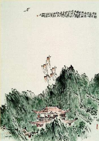 【唐】李白 故人西辞黄鹤楼,烟花三月下扬州。 孤帆远影碧空尽,唯见长江天际流。 ![]() 黄鹤楼送孟浩然之广陵诗意图 【诗文解释】 1 老朋友在西面的黄鹤楼与我辞别,在三月份烟雾迷漫、繁花似锦的春天去扬州。孤船的帆影渐渐远去消失在碧空的尽头,只看见长江浩浩荡荡地向天边流去。 2 我和我的老朋友孟浩然告别在那西边的黄鹤楼,阳春三月,柳絮如烟,他独自东下去往扬州。孤帆渐行渐远,消逝在水天尽头,只留下滔滔江水向东边流去。 【诗文赏析】 李白与孟浩然的交往,是在他刚出四川不久,正当年轻快意的时候,他眼里的世界,还几乎像黄金般美好。比李白大十多岁的孟浩然,这时已经诗名满天下。诗人送友人远行,对老朋友要去繁华的扬州充满了羡慕,诗中洋溢着欢快的情绪。诗人在江边极目远送,可见两人友情的深厚。全诗自然清丽、境界开阔、形象传神。