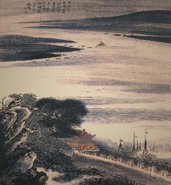 “秋色连波”二句,落笔于高天厚地之间的浓郁的秋色和绵邈秋波:秋色与秋波相连于天边,而依偎着秋波的则是空翠而略带寒意的秋烟。这里,碧云,黄叶,绿波,翠烟,构成一幅色彩斑斓的画面。