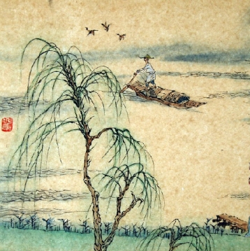 姜夔 雁怯重云不肯啼,画船愁过石塘西,打头风浪恶禁持。 春浦渐生迎棹绿,小梅应长亚门枝,一年灯火要人归。 注释 ⑴浣溪沙:唐代教坊曲名,因西施浣纱于若耶溪,故又名《浣沙溪》。后用为词牌,上下片三个七字句。四十二字。分平仄两体。 ⑵丙辰岁:庆元二年(1196),岁不尽五日:谓除夕前五日。 ⑶吴松:江名。古称松江。 ⑷重云:重重云层。 ⑸石塘:在苏州的小长桥。 ⑹打头风浪:迎头风浪 ⑺恶(wù):猛,厉害。 ⑻禁(jīn)持:“禁”通“今”,摆布。 ⑼浦:水滨。 ⑽棹(zhào):划船的工具,船桨,也指船。 ⑾长(zhǎng)亚门:长得靠近门楣。 ⑿一年灯火:指春节至元宵节的灯笼、焰火之类。 ⒀要:通“邀”。陶渊明《桃花源记》:“便要还家。” 参考译文 重叠的彤云低压着,连大雁也吓得不肯啼叫了。当航船经过石塘西畔时,我心中的愁苦更加浓重。船儿被迎头打来的风浪恶作剧地摆布着。迎着归棹,春天的河岸上已逐渐生出一层嫩绿;小小的梅树,新枝该长得压着门楣了吧?一年一度的灯节已经开始了,仿佛在催促我:快点回来啊! ![]() 赏析 《浣溪沙·丙辰岁不尽五日吴松作》是南宋著名词人姜夔的作品。这首词写还家过年之情。过年是中国家庭天伦之乐的重要体现。家往往是中国人人生理想的起点和躲风避雨的港湾。特别是对多年飘泊在外的游子,家的感觉异常温馨。姜夔一生布衣,以清客身份依人篱下,辗转飘泊,除夕不能回家过年,已是常事。宋宁宗庆元二年丙辰除夕前五日,姜夔从无锡乘船归杭州(当时白石移家杭州,依张鉴门下),途中经过吴松,遂作此词。 “雁怯重云不肯啼。”起笔写向空中。大雁无声,穿过重云,飞向南方。南方温暖,对大雁来说,是一温馨的家,用比喻的手法表现作者归家的情景。长空彤云重重密布,雁儿心情紧张,故说“怯”字。但雁儿急于回家,一个劲往南飞,故不肯啼。此一画面,恰成词人归心似箭的写照。“画船愁过石塘西”,次句写出自己,句中著一愁字,便似乎此一画船,是载了满船清愁而行,又妙。作者既然归家但是描写的却都是惨淡景象,“打头风浪恶禁持”,作者巧妙的写出了实情,大风阻挡词人归路,人间有风浪猛打船头。天上有重云遮拦鸟道,对于思家心切的作者忧愁更深一步。 “春浦渐生迎棹绿”,过片仍写水面,意境却已焕然一新。浦者水滨,河水涨绿,渐生春意,轻拍桨橹。虽云渐生,可是春之一字,冠于句首,便觉已是春波骀荡,春意盎然。歇拍与过片,对照极其鲜明。从狂风恶浪过变而为春波荡漾,从风浪打头紧接便是春波迎桨,画境转变之大,笔力几于回天。真有“山重水复疑无路,柳暗花明又一村”(陆游诗)的突兀感和欣悦感。笔峰骤转,却不显得生硬,两相对照,只觉笔意轻灵,意境超逸。时犹腊月,词人眼中之河水已俨然是一片春色,则此时词人之心中,自是一片温暖。“小梅应长亚门枝。”下句更翻出想象。离家已久之词人,揣想此时之家中,门前小梅,新枝生长,几乎高与门齐了。此一意境,何其馨逸,又何其温柔。小梅之句,颇似有一番喻意,暗示儿女之生长。经年飘泊在外之人,每一还家,乍见儿女又长高如许,其心情之喜慰,可想而知。小梅应长亚门枝,正是这种人生体验之一呈现。“一年灯火要人归。”结笔化浓情为淡语。除夕守岁之灯火,一年一度而已矣。灯火催人快回家,欢欢喜喜过个年。一笔写出家人盼归之殷切,亦写出自己归心之急切。此是全幅词情发展之必然结穴,于淡语中见深情。 此词的显著艺术特色,是以哀景写欢乐,以淡笔写浓情。上片以雁怯重云,画船载愁,浪打船头等惨淡景象反衬归家之欢欣,下片的春浦渐绿,小梅长枝,灯火催归等热闹景象突出了作者归心似箭的心情。