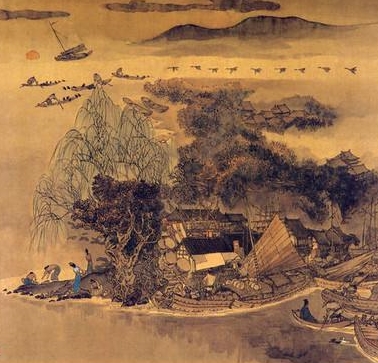 柳永 冻云黯淡天气,扁舟一叶,乘兴离江渚。渡万壑千岩,越溪深处。怒涛渐息,樵风乍起,更闻商旅相呼;片帆高举。泛画鹢、翩翩过南浦。 望中酒旆闪闪,一簇烟村,数行霜树。残日下、渔人鸣榔归去。败荷零落,衰柳掩映,岸边两两三三、浣纱游女。避行客、含羞笑相语。 到此因念,绣阁轻抛,浪萍难驻。叹后约、丁宁竟何据!惨离怀、空恨岁晚归期阻。凝泪眼、杳杳神京路,断鸿声远长天暮。 注释 ⑴夜半乐:唐教坊曲,后用为词牌。《乐章集》入“中吕调”。段安节《乐府杂录》:“明皇自潞州入平内难,半夜斩长乐门关,领兵入宫剪逆人,后撰此曲,名《还京乐》。”又有谓《夜半乐》与《还京乐》为二曲者。常以柳永词为准。一百四十四字,分三段,前段、中段四仄韵,后段五仄韵。前段第四句是上一、下四句式。全曲格局开展,中段雍容不迫,后段声拍促数。 ⑵冻云:冬天浓重聚积的云。扁舟:小船。乘兴离江渚:自己乘兴离开了江边。江渚:江边。渚:水中沙洲,此指水边。 ⑶万壑千岩:出自《世说新语·言语》:顾恺之自会稽归来,盛赞那里的山川之美,说:”千岩竞秀,万壑争流。“这里指千山万水。越溪:泛指越地的溪流。 ⑷樵风:指顺风。乍起:指山风突然的吹起来。商旅:行商之旅客,这里泛指旅客。 ⑸画鹢(yì):船其首画鹢鸟者,以图吉利。鹢是古书上说的一种水鸟,不怕风暴,善于飞翔。这里以“画鹢”代指舟船。翩翩:形容穿行轻快的样子。南浦:南岸的水边,泛指水滨。 ⑹望中:在视野里。酒旆:酒店用来招引顾客的旗幌。一簇烟村:一处冒着炊烟的村庄。 ⑺鸣榔:用木长棒敲击船舷。渔人有时用他敲船,使鱼受惊入网;有时用它敲船以为唱歌的节拍,这里用后者,即渔人唱着渔歌回家。 ⑻浣纱游女:水边洗衣劳作的农家女子。 ⑼因:这里是”于是“,”就“的意思。绣阁轻抛:轻易抛弃了偎红倚翠的生活。浪萍难驻:漂泊漫游如浪中浮萍一样行踪无定。 ⑽后约:约定以后相见的日期。丁宁:同“叮咛”,临别郑重嘱咐。何据:有什么根据,是说临别时相互的约定、嘱咐都不可靠,都无法实现。 ⑾空恨:徒恨。 ⑿杳杳:遥远的意思。神京:指都城汴京。断鸿:失群的孤雁。长天暮:远天出现茫茫暮色。 1、词的下片由景入情,写去国离乡的感慨,用“到此因念”四个字展开,你认为这一片精炼传神的字有那些?为什么?(5分) 2、“断鸿声远长天暮”一句历来为人称道,请结合内容,对此进行合理的想象,描绘出此场景。并合理赏析。(6分) 参考答案 (1)“念”字,引出了离愁别恨;“抛”字,道出了后悔当初轻率离家,将离家称为“抛”,后悔之意溢于言表;“浪”字,既是慨叹今日浪迹他乡,又是不满眼下行踪不定的生活。 (2)结语“断鸿”句,将情重新带回景上,将感慨寄托于客观景物的描写之中:词人望京而不得见,映入眼帘的,唯有空阔长天,苍茫暮色:听到的,只是离群孤雁渐去渐远的叫声。这一景色,境界浑涵,所显示氛围,与此人羁旅愁思的感情十分合拍,而且还有明显的象征性——词人不正如溶入苍茫暮色的孤雁那般孤单而又凄然么? 参考译文 严冬的阴云遮蔽着天空,我乘坐一叶小小扁舟,乘兴离开了沙洲的江岸。越过万道深壑千道高岩,进入若耶溪有神的水湾,狂涛渐渐将要平息下去,山风却又突然刮起了风来,听到商贾旅客互相呼唤。一片征帆高悬航船浮游、轻轻悠悠地驶过了南岸。 放眼望去远处酒旗晃动,一座烟笼村落霜花斑斑。夕阳残照渔人敲响船舷。枯败的荷花都纷纷零落,晚霞透过杨柳忽掩忽现。岸边两三三浣纱姑娘,躲避着游客羞涩地笑语。 猛想到轻易地抛弃亲人,像浪游的浮萍难寻立身。可叹约会誓言怎能为据?惨淡啊那些离别的情怀,徒叹又将岁暮归期受阻。泪眼凝神远看京都大路,孤雁远远呼唤长空暮色。 ![]() 赏析 《夜半乐·冻云黯淡天气》是宋代词人柳永用旧曲创制的新声作品。全词分为三片,前两片绘景,上片叙述舟行的经历,中片描写舟中的见闻,层次分明,不紧不慢,颇显其善于铺陈的手笔。下片则是写情,情由前两片中的景自然引出。三片联系紧密,天衣无缝,是一篇错落有致、大开大阖的长调。 上片首句点明时令,交待出发时的天气。“冻云”句说明已届初冬,天公似酿雪,显得天色黯淡。“扁舟”二句写到自身,以“黯淡”的背景,反衬自己乘一叶扁舟驶离江渚时极高的兴致。“乘兴”二字是首叠的主眼,从“离江渚”开始,直到“过南浦”,词人一直保持着饱满的游兴。“渡万壑”二句,概括交待了很长的一段路程,给人以“轻舟已过万重山”的轻快感觉。“怒涛”四句,写扁舟继续前行时的所见所闻。此时已从万壑千岩的深处出来,到了比较热闹的开阔江面上,浪头渐小,吹起顺风,听见过往经商办事的船客彼此高兴地打招呼,船只高高地扯起了风帆。“片帆高举”是写实,也可想象出词人顺风扬帆时独立船头、怡然自乐的情状。“泛画鹢”句,“翩翩”遥应“乘兴”,既写舟行的轻快,也是心情轻快的写照。从整个上片来看,柳永当时的心情是轻松愉快的。 中片写舟中所见,所有景物都“望中”生发,时间是“过南浦”以后,已届傍晚,地点从溪山深处转到了南浦以下的江村。词人乘兴扬帆翩翩而行,饶有兴味地观赏着展现眼前的风光。“望中”三句写岸上,只见高挑的酒帘风中闪动,烟霭朦胧中隐约可见有一处村落,其间点缀着几排霜树。“残日”句转写江中,渔人用