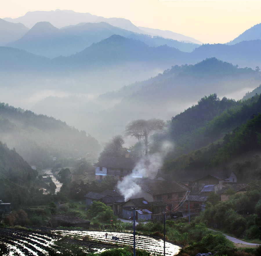 出自林逋《孤山寺瑞上人房写望》 底处凭栏思眇然,孤山塔后阁西偏。 阴沉画轴林间寺,零落棋枰葑上田。 秋景有时飞独鸟,夕阳无事起寒烟。 迟留更爱吾庐近,只待春来看雪天。 注: [1]端上人:名端的和尚。上人:和尚的尊称。 [2]底处:何处。阑:栏杆。渺:高远,辽远。 [3]偏:边。 简析: 以拟人手法,写得情思绵绵,凄楚哀婉。语言美,意境更美。为历代读者称诵。此为词中的佳作。全词以清新空灵的笔触,物中见情,寄寓深意。整首词熔咏物与抒情于一炉,凄迷柔美的物象中寄寓惆怅伤春之情,渲染出绵绵不尽的离愁。 结尾处词人以景结情,渲染了无限惆怅和依依惜别的感情,给人留下无穷的想像。整首词的语言清新柔婉,属婉约一派。 ![]() 赏析: 林逋隐居杭州时,在西湖孤山结庐。孤山之有孤山寺,这是他常常喜欢登览的胜地。该写一个秋日的傍晚,诗人在孤山寺端上人房内饱览山上风景。诗以素淡的笔触,描绘出幽邃的景色,造成一神幽寂的意境。而这种境界,正是林逋这位幽人(隐士)所眷恋的。 首联破题领起:诗人凭栏远望的地点在孤山寺端上人房;至于房的方位,孤山塔后有一座阁,房间就在此座寺阁的西边。诗人凭阑纵目时,思绪飞得很远、很远。他并没有明说幽思因何而起,而是将笔荡开,于颔、颈二联画了四幅风景画。 画面在“望”中一幅幅依次展开。先是一幅“方外寺”:阴森森的树林里,隐隐约约地闪现出几所寺院。诗人身处佛地,所以第一眼看到的便是佛寺。暮色苍茫,远远望去,这个景色暗淡得就像一帧退了颜色的约画。寺在“画轴”之中,想象奇妙。眼中是画,诗笔下也是画。画境寂静幽深,正见方外本色。再是一幅“葑上田”。诗人转移了一下视角,但见水面上零零星星地飘荡着一块块的架田,犹如那棋盘上割下来的方格子。枰,棋盘。以棋盘方格譬架田,比喻贴切。其时夕阳西下,夜幕将临,农失们都已荷锄归家了,因此画面上空无一人,分外宁静。 接下是一幅“空中鸟”:诗人举头瞻望天宇,只见寥廓秋空之中,偶尔飞过一只伶仃的小鸟。诗人赶紧将这“独鸟”捕捉进画中,又涂上几抹秋云作为背景。 最后展开的是一幅在“墟里烟”:夕照之中,什么都没有,唯有袅袅寒烟(秋已深,炊烟在秋空之中,也带有深秋的寒色了)萦绕半空,这表明,附近村落的人家已在点火做晚饭了。这幅诗人略略低首绘下的画,意境空寂,色彩也淡得不能再淡了。 寺、田、鸟、烟四轴风景图,展现的正是高僧端上人日日置身其间的那个幽深清寂的环境。此种环境,与这位幽人断绝尘想、潇洒物外的恬静心境、闭逸情致正相吻合。因此,他从中领略到了莫大的兴味,渺然幽思便由此而起,令他久久留连,迟迟不愿归去。 末联便直抒这种倾慕心情,诗人道:我迟迟逗留着,不舍得归去。今日之游,我愈加喜爱这块胜地了,因为,它与我的庐舍相近。近,我得以迟归,又得以常来。现在,快要掌灯吃晚饭了,我也该同去了。不过,等那雪花纷扬时,我要重来此地,观赏那银装素裹的世界。 这首七律以工于写景驰名,不仅“诗中有画”,而且手法高妙。颈联在词序的排列上作了精密的调动,画面就在宁谧中浮动着一股生动的灵气。而颔联,则因其奇妙的想象与贴切的比喻,更受后世诗人们的激赏,仿效之句也最多。如滕岑有“何人为展古画幅,尘暗缣绡浓淡间”(《游西湖》),程孟阳有“古寺工如昏壁画”(《闻等慈师在拂水有寄》),黄庭坚有“田似围棋据一枰”(《题安福李令朝华亭》)、“稻田棋局方”(《次韵知命入青原山石》),文同有“秋田沟垅如棋局”(《闲居院上方晚景》),杨万里有“天置楸枰作稻畦”(《晚望》),杨慎有“平田如棋局”(《出郊》),等等,因此王渔洋品评此联“写景最工”(《池北偶谈》),是有道理的。