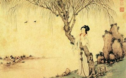 胡仲弓 蛾黛浅,只为晚寒妆懒。①润逼镜鸾红雾满,额花留半面。② 渐次梅花开遍,③花外行人已远。欲寄一枝嫌梦短,④湿云和恨剪。⑤ 【注释】 ①蛾黛浅,只为晚寒妆懒:因为入夜的寒冷,自己也懒于化妆,只画了浅浅的眉。 ②额花:女子用来贴在额上的以纸、绢、玉等做成的饰物。 ③渐次:渐渐地,逐渐。 ④欲寄一枝嫌梦短:想在梦中寄一枝梅花,但梦太短了,连这个愿望也不能实现。化用南朝陆凯赠范晔诗:“折梅逢驿使,寄与陇头人。江南无所有,聊赠一枝春。” ⑤湿云和恨剪:欲剪去阻碍自己和情人相聚的云朵。 【译文】 我画浅娥眉,只为晚间冷寒有些懒于化妆。热气呼出雾蒙了镜面,镜中额花半面朦胧。 渐渐地梅花全都开遍,可花外的郎君却已走远。欲在梦中寄一枝表思念,又羞涩离别时间太短,怕他嫌我急切耐不住虚闲。心中犹豫难以决断,只将羞恨转向这眼前的浮云和手中的刀剪,恨不能将云剪断。 ![]() 【赏析】 这首代言体的词写女子对情郎的思念。上片写女主人公醒后,因春寒料峭而懒于梳妆。下片写窗外梅花渐开,女子见花更思念远方的人,想寄一朵给他,但梦缘太短,匆匆之中,连这份思念也无法传递。最后女主人公转而恼恨面前的白云,正是它们阻隔了她与情人的相见,于是恨不能有快剪一把剪去浮云。这种恼恨因无理而更显出女主人公情感之灼热。