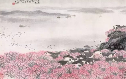 黄庭坚 小桃灼灼柳鬖鬖,春色满江南。雨晴风暖烟淡,天气正醺酣。 山泼黛,水挼蓝,翠相搀。歌楼酒旆,故故招人,权典青衫。 【注释】 [1]灼灼:形容花朵颜色鲜明亮丽。 [2]鬖鬖:音sān sān,植物枝叶下垂貌。 [3]醺酣:形容天气温暖困人。 [4]黛:青黑色的颜料,古代女子用来画眉。 [5]挼蓝:浸揉蓝草作染料,诗词中用以借指湛蓝色。 [6]酒旆:旆字读作pèi,也可写作“斾”,酒旆即是酒旗。 [7]故故:常常;屡屡。 【参考译文】 桃花盛开,垂柳依依,江南的春色很美。雨过天晴,春风温暖烟霭淡淡,让人陶醉。 山峦黛绿,水波湛蓝,绿水与青山相互映衬着。歌楼酒旗飘动,招人前去。姑且把青衫典当了换酒吧。 ![]() 【赏析】 此词分四层描写江南春景:写桃柳为第一层,写天气为第二层,写山水为第三层,末三句为第四层。整首词以沉着有力的语言,情景交融、步步勾勒地展开描写,以轻快的笔调写出了江南春天的秀丽风光,清新俊美,富有生活情趣。 词的开头一句就把最足以作为春天表征的桃花盛开,柳条垂拂这两种典型景物描写出来。江南的春色,美景何止万千,实在是数不胜数,令人眼花缭乱。词人选择了最能代表春天景物的桃花与杨柳,仅以“灼灼”与“鬖鬖”两个词就概括出二者的特色。《诗经·桃夭》有“桃之夭夭,灼灼其华”之句,把桃花的光鲜亮丽词一笔概括,再加以盛装出嫁的美人,可以说把桃花与新人之美写到了极致。 第二句“春色满江南”,用个“满”字似乎表明不必再写其他景物了,其实这是承上启下,着意于过渡。一切景物都是相互关联着的,美景还要有良辰衬托。如果碰到风雨如晦的天气,即使是盛开的桃花,扶疏的柳条,看起来也会令人黯然魂销。所以接下去转向对天气的描写:“雨晴风暖烟淡,天气正醺酣。”这里边包括四种意思:宿雨初晴,惠风和畅,烟霭澹淡,着人如酒的天气。这样的天气,使人心旷神怡,正可以游目骋怀,饱览自然风光。 下片前三句“山泼黛,水挼蓝,翠相搀”连贯而下,以浓重的色彩,绘出了江南山水的春容。“泼”字,“挼”字用得很有魄力,非崇尚纤巧者所能办。 色彩浓丽的山和水,正承上阕“雨晴风暖烟淡”句而来,只有新雨之后,和风之中,天宇澄澈,万木争荣,才能为山水增辉。“泼黛”、“挼蓝”二句不仅画出了山色、水色,也反映了万物春天里的勃勃生机。写到这里为止,已经构成了一幅完整的色彩明丽的江南春景画面。“良辰美景”都有了,但似乎还缺少点什么,抬头望处,看到了“歌楼酒旆”。楼外的酒旗迎风飘动,足以惹人神飞。 “故故招人”,生动地写出了词人的心理状态。“故故”这里是故意、特意之义,酒旗当然谈不上故意招人,只是因为词人想喝酒,才产生这种感觉。这一句是移情手法的巧妙运用。酒兴发作了,而阮囊已空,回去吧,却又败兴,所以只好“权典青衫”。这一句是化用杜甫“朝回日日典春衣,每日江头尽醉归”(《曲江》二首之二)诗意,集中体现了词人的性格、情趣。 最后三句,先写歌楼酒旗好像也欢喜地招引他去喝酒,再化用典故,无钱时“权典青衫”也要去喝酒。面对良辰美景,诗人早已按捺不住喝酒赏景的欲望,表现了对江南春景的热爱和寄情山水的情怀。 黄庭坚这首小令,短短的四十四个字,江南春景层层叙写,逐步展现。桃柳、天气、山水、“歌楼酒旆”到结语,层层勾勒,上下呼应,脉理分明,语言沉着有力,意境风神曳,情景兼备,堪称佳作。