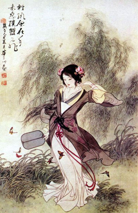周邦彦 眉共春山争秀。可怜长皱。莫将清泪湿花枝,恐花也、如人瘦。 清润玉箫闲久。知音稀有,欲知日日倚阑愁,但问取、亭前柳。 注释 ①一落索:《词谱》卷五:“欧阳修词,名《洛阳春》。张先词,名《玉连环》。辛弃疾词,名《一络索》。”按贺铸词,有“初见碧纱窗下绣”句,名《窗下绣》。清吴绮词,名《玉联环》。毛本注云:“《清真集》作《洛阳春》。”按:《六一词》有《洛阳春》词,即此调,又名《玉联环》,皆北宋之旧名。《词统》作《一络索》。双调46字。上、下阕各23字4句3仄韵。[1] ③可怜:可惜。长皱:指经常愁眉不展。 ④湿:沾湿,打湿。此句用李商隐《天涯》:“莺啼如有泪,为湿最高枝。”及李贺《金铜仙人辞汉歌》:“忆君清泪如铅水”诗意。 ⑤恐花也、如人瘦:罗忼烈云:李清照《醉花阴》“帘卷西风,人比黄花瘦”;程垓《江城梅花引》“一夜被花憔悴损,人瘦也,比梅花,瘦几分”;朱淑真《菩萨蛮》“人怜花似旧,花比人应瘦”,皆自清真句化出。 ⑥清润:形容她吹萧时乐声清亮幽润。玉箫:玉制的箫,此处为箫的美称。闲久:闲置巳久,久未吹箫。 ⑦知音:喻知心人。 ⑦但:只。取:助词,表动态。亭:古代设于路旁供行人休息的亭舍。 参考译文 柳眉是那样的秀美,只有妩媚的春山能与之比美,可惜它却皱得紧紧的。别让泪水打湿了花枝,使花儿也像人一样消瘦。 因为知音难觅,她那清亮圆润的玉箫声已经很久听不到了。如果想知道她为什么每天倚着栏干发愁?那就问一问长亭前的柳树吧! ![]() 创作背景 清人沈雄《古今词话》引宋人陈鹄《耆旧续闻》记载,这首词是周邦彦写给汴京名妓李师师的,但此说未必可信。《清真词》编此词人“春景”类,无题,考其内容,显然是描写“闺情之作”。周邦彦年轻时在汴京作太学生及太学正期间,曾结识了一些歌女,这首词即是作者以极大的同情来揭示歌女内心的痛苦的。这一歌女形象,可以视作汴京城中众多歌女悲苦命运的典型概况。 赏析 《一落索·眉共春山争秀》是北宋词人周邦彦的一首写思妇闺情之作,是词人青少年时的作品,主要摹写年轻女子的相思之愁和内心少为人知的深深悲哀。上阕写抒情女主人公的外貌与情态,下阕写她的心情愁思。全词景物描写与情感的表达浑然一体,风格清丽秀雅,是典型的婉约词风。 这是一首写思妇闺情的小令。古代妇女,特别是一些贵家妇女,既不从事生产劳动,也没有机会参加社会活动,终日闲居闺中,无所事事。人闲着,思维器官却不能闲着,伤春恨别,闺怨闺情,就占据了她的思想领域。唐宋诗词中就有不少作品是写这类题材的,这首词就是其中之一。 词的开始,首先刻画这位思妇的外貌。“眉共春山争秀,可怜长皱。”以青山比喻女子的眉毛,前人诗词中也常有,例如冯延巳《鹊踏枝》:“低语前欢频转面,双眉敛恨春山远。”但这只是客观的描写,美成在这首词中用了“争秀”二字,是说女子的眉在有意和春山比秀,而比的结果是眉比春山更秀。如果不用“争”字,直接说,眉比青山更秀,就趣味索然了。“可怜长皱”,也超脱了纯客观描写而注入了作者主观感情。对这位“深坐颦蛾眉”(李白《怨情》)的美人寄予了深刻的同情。上句写女子的外貌,下句透过外貌去表现她的内心愁怨。写外貌也着墨不多,只写了她的秀眉,让读者从她的眉峰之秀去想象她的容貌之美。这个想象由下文的描写得到证实。 “莫将清泪滴花枝,恐花也,如人瘦。”以花比喻女子的容貌。这位颦眉独坐的女子果然貌美如花。以花比喻女子的面容,本是沿用已久的陈旧的修辞手法,但美成用泪滴花枝,形容女子因伤心而流泪,似比单纯用“花容月貌”之类的陈旧词语要新些。但也不是美成首创。白居易在《长恨歌》中写杨贵妃伤心流泪就用过“玉容寂寞泪阑干,梨花一枝春带雨。”冯延巳在《归自谣》中也写过“愁眉敛,泪珠滴破胭脂脸。”但白居易和冯延巳都是写的客观现象。即杨贵妃泪流满面,好像春天一枝雨中梨花。冯延巳写的这个女子似乎泪珠已经或将要滴破胭脂脸,都只写了客观现象,而周邦彦却翻进一层说:要小心,不要让清泪滴花枝,因为“恐花也,如人瘦。” 以花瘦比喻人瘦,前人也用过,如黄庭坚在赠妓陈湘的《蓦山溪》词中写道:“春未透,花枝瘦,正是愁时候。”但黄庭坚也只是客观地写花枝瘦,没有写出词人的心情怎样。而周彦彦化用前人诗词,又不重复前人的意思,而另造新意。在他的笔下,似乎那少妇娇嫩清瘦的脸上,即使是几滴清泪也禁受不住,担心会“滴破胭脂脸。”流露出词人有无限怜惜之心,不单纯是客观写照,还渗透了词人的主观情感,可谓推陈出新,翻出了新意,既像是词中少妇顾影自怜,内心独白,又像是词人对词中少妇的怜爱同情,体贴入微,笔意曲折顿挫,摇曳多姿,有很强的艺术感染力。读者称赞周词为“词家神品”(王又华《古今词论》),不是没有道理的。 过片,“清润玉箫闲久,知音稀有。”用“玉箫闲久”从侧面烘托少妇情绪低落,满腹愁思。虽有玉萧,也无心吹奏。让它闲置已久。因为意中人不在,更吹与谁听呢?昭君出塞,尚可寄幽怨于琵琶,这位思妇连托音乐以寄相思都没有心情了,进一步深化了“可怜”的程度。下文用“欲知”、“但问”巧设问答:“你要知道她(我)为什么每天倚着栏杆发愁吗?你只要去问亭前杨柳便可知了。”仍用上片同样笔法,既像是