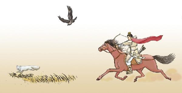 崔颢 少年负胆气,好勇复知机。 仗剑出门去,孤城逢合围。 杀人辽水上,走马渔阳归。 错落金锁甲,蒙茸貂鼠衣。 还家且行猎,弓矢速如飞。 地迥鹰犬疾,草深狐兔肥。 腰间带两绶,转眄生光辉。 顾谓今日战,何如随建威? 注释 ⑴游侠:指好交游,轻生重信,能救人危难的人。诗题一作“游侠篇”。 ⑵负:凭借。一作“有”。 ⑶知机:指认识时势,趋向得宜,如下文所叙及时从军就是知机。 ⑷仗:执。 ⑸合围:包围。 ⑹辽水:辽河。渔阳:郡名,治所在今河北省蓟县。这两句说在辽水作战杀敌,功成走马回乡。 ⑺这两句以金甲貂裘表明其人官级已高,见得他积功很多。错落:错杂。金锁甲:黄金锁子甲(用黄金作环,连锁成网状)。蒙茸:乱貌。“错落”说明甲上环锁已损坏不齐,“蒙茸”说明貂裘已敝(貂皮是毛短滑溜的,不同于狐裘的蓬松蒙茸。招裘显得蒙茸时,就是穿旧了),见得他苦战日久。 ⑻且行猎:《乐府诗集》作“行且猎”。猎:一作“射”。 ⑼迥:此指宽广。 ⑽腰间带两绶:一作“腰带垂两鞬”。绶:丝带,古人用来系印纽,佩在腰上。《汉书·金日磾传》载,金日磾的儿子金赏继承金日磾为侯,佩两绶。 ⑾转眄:左右斜视,形容目光灵动。这两句形容其人豪贵,气概威严。 ⑿顾:回头。 ⒀建威:将军的称号,东汉耿弇曾拜建威将军。这里借指此侠士往年在辽水作战时的主将。末两句说今日如再作战,比当年何如?表示豪气不减,壮志仍在。 ![]() 参考译文 有一位少年游侠凭借其胆量、气魄,勇猛并且善于相机而动,深为人所器重。手执长剑离家从军,奔赴前线,正遇上我方的一座孤城被敌军团团包围,他在这辽河一战中冲锋陷阵,杀死敌人无数,最后我军凯旋,他骑马胜利地回到渔阳老家。他里面披挂着用金线缀成的灿烂铠甲,外面罩着华贵的貂鼠皮外套。回家后每日只管与人游猎,纵马驰骋,箭射如飞。猎场面积宽广,老鹰猎狗紧紧跟随,草木茂密,猎物长得又肥又大。游侠腰间系着两条系印章的丝带,目光灵动,顾盼生辉。回头对随从们说:“这次跟着我打猎,同往日跟随建威将军作战相比感觉如何?” ![]() 赏析 《古游侠呈军中诸将》是唐代诗人崔颢的作品。此诗写一位游侠从军勇敢善战,建立大功,后被封赏而志得意满的经历,歌颂了他的赫赫战功和威猛气概。诗的前半部分写侠士从军,后半部分写还家游猎,抒发了主人公报国赴难的豪情壮志。全诗热情洋溢,豪迈奔放,风骨凛然。 “游侠”,是乐府古题,从西晋张华以后历代都有人作,内容大都写壮勇轻生、杀人报仇的侠士精神。此诗属边塞诗,歌颂一位将士的赫赫战功和威猛气概。诗的前半部分写侠士从军。开头两句即赞赏主人公的有胆有识,接着写游侠慷慨从军及勇武善战的形象。后半部分,从“还家”句开始,写游侠立功受赏后归家游猎。这一部分描写了壮士归来的悠闲生活,但写其唯爱游猎,并且“弓矢速如飞”,仍不失其游侠的勇武本色。 这首诗是诗人呈军中诸将之作。诗人塑造了一位有勇有谋、英俊潇洒而又豪爽的游侠形象。他勇武过人,终立功疆场,受封归家,志得意满。诗人通过对这一形象的赞颂,为军中诸将树立了一个楷模,激励将士们英勇作战,以期成就一番功业,扬名于世。全诗刻画人物极为成功,无论是战时还是战后,人物都不失其英雄本色,并通过对其行动、外貌、语言、神态的描写,使人物血肉丰满,呼之欲出,真实可感。