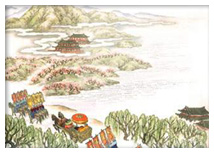 杜甫 三月三日天气新,长安水边多丽人。 态浓意远淑且真,肌理细腻骨肉匀。 绣罗衣裳照暮春,蹙金孔雀银麒麟。 头上何所有,翠微盍叶垂鬓唇。 背后何所见,珠压腰衱稳称身。 就中云幕椒房亲,赐名大国虢与秦。 紫驼之峰出翠釜,水晶之盘行素鳞。 犀箸厌饫久未下,鸾刀缕切空纷纶。 黄门飞鞚不动尘,御厨络绎送八珍。 箫鼓哀吟感鬼神,宾从杂沓实要津。 后来鞍马何逡巡,当轩下马入锦茵。 杨花雪落覆白苹,青鸟飞去衔红巾。 灸手可热势绝伦,慎莫近前丞相嗔。 ![]() 注解 1、翠微:薄薄的翡翠片。微:一本作“为”; 2、叶:彩的花叶,彩是妇女的发饰; 3、鬓唇:鬓边。 4、珠压:谓珠按其上,使不让风吹起,故下云“稳称身”。 5、腰:这里作腰带解; 6、后来鞍马:指杨国忠,却故意不在这里明说。 7、逡巡:原意为欲进不进,这里是顾盼自得的意思。 8、杨花句:旧注以为指杨国忠与虢国夫人的暧昧关系,又引北魏胡太后和杨白花私通事,因太后曾作“杨花飘荡落南家”,及“愿衔杨花入窠里”句。后人有“杨花入水化为浮萍”之说,又暗合诸杨之姓及兄妹丑行。 9、青鸟:神话中鸟名,西王母使者。相传西王母将见汉武帝时,先有青鸟飞集殿前(见《汉武故事》)。后常被用作男女之间的信使。红巾,妇女所用的红帕,这里是说使者在暗递消息。 译文 三月三日阳春时节天气清新, 长安曲江河畔聚集好多美人。 姿态凝重神情高远文静自然, 肌肤丰润胖瘦适中身材匀称。 绫花绫罗衣裳映衬暮春风光, 金丝绣的孔雀银丝刺的麒麟。 头上戴的是什么呢? 翡翠片花叶直贴到鬓角边。 背后缀的是什么呢? 宝珠压住裙腰多么稳当合身。 其中有云幕椒房的后妃至亲, 皇上封为虢国和秦国二夫人。 翡翠蒸锅端出香喷的紫驼峰, 水晶圆盘送来肥美的白鱼鲜。 吃腻了犀角的筷子久久不动, 鸾刀切着细肉丝空忙了一场。 宦官骑马飞来却不扬起灰尘, 御厨络绎不绝送来海味山珍。 笙箫鼓乐缠绵宛转感动鬼神, 宾客随从满座都是达官贵人。 姗姗来迟的骑马人踌躇满志, 到轩门才下马步入锦褥茵亭。 白雪似的杨花飘落覆盖浮萍, 使者象传情的青鸟勤送红巾。 气焰熏灼不可一世天下绝伦, 千万不要近前担心丞相恼怒! 赏析: 《丽人行》是大诗人杜甫的作品,约作于753年(天宝十二年)或次年。诗的主旨是对杨贵妃兄姐妹们嚣张气焰的指斥和鞭笞。唐代自武后以来,外戚擅权已成为统治阶层中一种通常现象,他们形成了一个特殊的利益集团,引起了广大人民的强烈不满,这也是后来酿成安史之乱的主因。在白居易的《长恨歌》之前,以杨氏兄姐妹为题材的诗就已经不少,但都没有杜甫这首深刻。此诗通篇只是写“丽人”们的生活情形,却正如前人所说的,达到了“无一刺讥语,描摹处语语刺讥;无一慨叹声,点逗处声声慨叹”的艺术效果。 诗是讽刺杨氏国戚之奢侈淫乱,侧面反映了玄宗的昏庸和朝政的腐败。开首十句是描写上已日曲江水边踏青的丽人如云,体态娴雅,姿色优美,衣着华丽。“就中”十句,具体写出丽人中虢、秦、韩三人,她们器皿雅致,肴馔精美,箫管悠扬。“后来”六句,写杨国忠之炫赫,意气骄恣,势焰熏灼。 全诗语极铺排,富丽华美中蕴含清刚之气。虽然不见讽刺的语言,但在维妙维肖的描摹中,隐含犀利的匕首,讥讽入木三分。 《丽人行》是一首“旧瓶装新酒”的七言乐府诗,诗题在汉代刘向《别录》中已有记载。但因其内容是直接针对当时的宰相杨国忠兄妹,不用古乐府借古喻今的惯例,所以中唐的元稹称其为“新乐府”,今天看来,可以视为杜甫新题乐府中的例外。这首诗大约作于天宝十二载(753)。此前一年,杨国忠官拜右丞相兼文部尚书,势倾朝野。 《丽人行》是杜甫的名篇,描写的是一个春暖花开的时节,杨国忠兄妹在长安城南曲江游宴时的情景,讽刺了他们骄奢淫逸的丑行,也从侧面曲折地反映了唐玄宗的昏庸和时政的腐败。 此诗当是公元753年(天宝十二年)春所作,讽刺杨国忠兄妹骄奢淫逸。首二句提纲,“态浓”一段写丽人的姿态服饰之美,“就中”二句点出主角,“紫驼”一段写宴乐之奢侈,“后来”一段写杨国忠的气焰和无耻。整首诗不空发议论,只是尽情揭露事实,语极铺张,而讽意自见,是一首绝妙的讽刺诗。《杜诗详注》云:“此诗刺诸杨游宴曲江之事。……本写秦、虢冶容,乃概言丽人以隐括之,此诗家含蓄得体处”。《读杜心解》曰:“无一刺讥语,描摹处语语刺讥。无一概叹声,点逗处声声慨叹。” 全诗通过描写杨氏兄妹曲江春游的情景,揭露了统治者荒淫腐朽作威作福的丑态,从一个角度反映了安史之乱前夕的社会现实。诗分三段,先泛写游春仕女的体态之美和服饰之盛,引出主角杨氏姐妹的娇艳姿色。次写宴饮的豪华及所得的宠幸。最后写杨国忠的骄横。全诗场面宏大,鲜艳富丽,笔调细腻生动,同时又含蓄不露,诗中无一断语处,却能使人品出言外之意。 语极铺排,富丽华美中蕴含清刚之气。虽然不见讽刺的语言,但在维妙维肖的描摹中,隐含犀利的匕首,讥讽入木三分。 本诗约作于天宝十二年(753),时值杨国忠任右相不久。诗作对杨家兄妹骄纵荒淫的生活和狂妄嚣张的气焰进行了有力鞭挞,也从侧面揭露出当时君王昏庸、朝廷腐败的社会现实。诗开篇即点出时间——三月三日。诗人用细腻的笔法、富丽的词采,描画出一群体态娴雅、姿色优美的丽人。接着又言其服饰