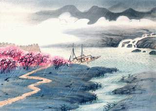 春夜喜雨 杜甫 好雨知时节,当春乃发生。 随风潜入夜,润物细无声。 野径云俱黑,江船火独明。 晓看红湿处,花重锦官城。 ![]() 【译文】 好雨知道下雨的节气,正是在植物萌发生长的时侯,它随着春风在夜里悄悄地落下,悄然无声地滋润着大地万物。雨夜中野外黑茫茫,只有江船上的灯火格外明亮。天亮后,看看这带着雨水的花朵,娇美红艳,整个锦官城变成了繁花盛开的世界。 译文二: 雨仿佛知晓人们的心思,在最需要的时候就悄然来临。 到了春天需要雨的时候,它就自然地应时而生。 伴随着和风在夜里悄悄飘洒, 滋润着万物轻柔而寂然无声。 野外一片漆黑,只有一点渔火若隐若现。 等到天明,锦官城里该是一片万紫千红吧! 【词语解释】 乃:就。 发生:促使植物生长。 潜:悄悄地。 润物:使万物受到水分的滋养。 野径:乡间小路。 花重:花沾上雨水而变得沉重。 发生:催发植物生长。 锦官城:成都的别称。 【赏析】 这首诗写于761年(上元二年)春。杜甫在经过一段时间的流离转徙的生活后,终因陕西旱灾而来到四川成都定居,开始了在蜀中的一段较为安定的生活。作此诗时,他已在成都草堂定居两年。他亲自耕作,种菜养花,与农民交往,对春雨之情很深,因而写下了这首描写春夜降雨、润泽万物的美景的诗作。 这是一首描绘春夜雨景、表现喜悦心情的名作。诗中将春夜喜雨拟人化了,诗人夸赞这雨是“好雨”,说它“知时节”,懂得客观需要。难道不是吗?春天里,万物萌芽勃发,正需要雨露的滋润,雨就下了起来。这首《春夜喜雨》,将雨描绘得不仅切夜、切春,而且还道出了典型春雨的、也就是“好雨”的高尚品格,表现了诗人的、也是一切“好人”的高尚人格。诗题中的“喜”字虽然在诗文中没有露面,但从字里行间,都洋溢着诗人欢喜之情。从欢喜到情不自禁地想象:明天必定会春.色满城。 鉴赏一 《春夜喜雨》抒写诗人对春夜细雨的无私奉献品质的喜爱赞美之情。全诗这样写道:“好雨知时节,当春乃发生。随风潜入夜,润物细无声。野径云俱黑,江船火独明。晓看江湿处,花重锦官城。”一二句“好”字含情,赞盛春雨。“知时节”赋予春雨以人的生命和情感,在作者看来,春雨体贴人意,知晓时节,在人们急需的时候飘然而至,催发生机。多好的春雨! 首联既言春雨的“发生”,又含蓄地传达出作者热切盼望春雨降临的焦急心绪。颔联显然是诗人的听觉感受。春雨来了,在苍茫的夜晚,随风而至,悄无声息,滋润万物,无意讨“好”,唯求奉献。瞧,听雨情景作者体察得多么细致,就连春雨洒洒,静默无声也被诗人听出来了。可见,惊喜于春雨的潜移默化,诗人彻夜难眠。 颈联紧承颔联,诗人唯愿春雨下个通宵,又恐突然中止,亦喜亦忧,推门而出,伫立远眺,只见平日泾渭分明的田野小径也溶入夜色,漆黑一片,可见夜有多黑,雨有多密。而江船渔火红艳夺目,又反衬出春夜的广漠幽黑,也从侧面烘托出春雨之繁密。尾联系想象之辞,诗人目睹春雨绵绵,欣慰地想到第二天天亮的时候,锦官城将是一片万紫千红的春色。花之红艳欲滴、生机盎然正是无声细雨潜移默化,滋润洗礼的结果。因此,写花实乃烘托春雨的无私奉献品格。 这是描绘春夜雨景,表现喜悦心情的名作。一开头就用一个“好”字赞美“雨”。在生活里,“好”常常被用来赞美那些做好事的人。如今用“好”赞美雨,已经会唤起关于做好事的人的联想。接下去,就把雨拟人化,说它“知时节”,懂得满足客观需要。春天是万物萌芽生长的季节,正需要下雨,雨就下起来了。它的确很“好”。 颔联,进一步表现雨的“好”。雨之所以“好”,好就好在适时,好在“润物”。春天的雨,一般是伴随着和风细雨地滋润万物的。然而也有例外。有时候,它会伴随着冷风,受到冷空气影响由雨变成雪。有时候,它会伴随着狂风,下得很凶暴。这时的雨尽管下在春天,但不是典型的春雨,只会损物而不会“润物”,自然不会使人“喜”,也不可能得到“好”评。所以,光有首联的“知时节”,还不足以完全表现雨的“好”。等到第二联写出了典型的春雨──伴随着和风的细雨,那个“好”字才落实了。 “随风潜入夜,润物细无声。”这仍然用的是拟人化手法。“潜入夜”和“细无声”相配合,不仅表明那雨是伴随和风而来的细雨,而且表明那雨有意“润物”,无意讨“好”。如果有意讨“好”,它就会在白天来,就会造一点声势,让人们看得见,听得清。惟其有意“润物”,无意讨“好”,它才选择了一个不妨碍人们工作和劳动的时间悄悄地来,在人们酣睡的夜晚无声地、细细地下。 雨这样“好”,就希望它下多下够,下个通宵。倘若只下一会儿,就云散天晴,那“润物”就不很彻底。诗人抓住这一点,写了颈联。在不太阴沉的夜间,小路比田野容易看得见,江面也比岸上容易辨得清。如今放眼四望,“野径云俱黑,江船火独明。”只有船上的灯火是明的。此外,连江面也看不见,小路也辨不清,天空里全是黑沉沉的云,地上也像云一样黑。看起来这雨准会下到天亮。 尾联写的是想象中的情景。如此“好雨”下上一夜,万物就都得到润泽,发荣滋长起来了。万物之一的花,最能代表春色的花,也就带雨开放,红艳欲滴。诗人说:等到明天清早去看看吧,整个锦官城(成都)杂花生树,一片“红湿”,一朵朵红艳艳、沉甸甸,汇成花的海洋。 浦起龙说:“写雨切夜易,切春