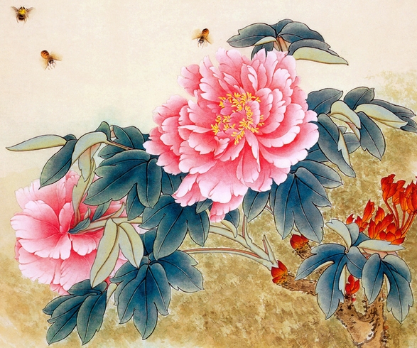 韩愈 幸自同开俱阴隐⑴,何须相倚斗轻盈⑵。 陵晨并作新妆面⑶,对客偏含不语情。 双燕无机还拂掠⑷,游蜂多思正经营⑸。 长年是事皆抛尽⑹,今日栏边暂眼明⑺。 注释 ⑴阴隐:一作“隐约”。牡丹花开时,枝叶已盛,故云隐约。 ⑵相倚:指花枝互相依倚支撑。斗:争斗比较。 ⑶陵晨:凌晨,清晨。并作:同作。 ⑷无机:没有心机,无意。 ⑸多思:多情。经营:此指蜂于花间盘旋采蜜。 ⑹是事:事事,凡事。 ⑺暂眼明:眼睛为鲜花照亮。 参考译文 很庆幸这些牡丹花开时,枝叶俱茂,所以花朵隐约依稀,它们也毋须互相依倚着争奇斗艳,以轻盈相比。清晨到来时一朵朵花儿都像新妆的面庞一样,对着赏花的宾客偏偏都含着羞怯不语的深情。没有心机的双燕时时从花上掠过,多情的游蜂却正在花间盘旋采蜜。多年来我已懒于过问世事,令天在栏边看到这些牡丹,禁不住眼光暂时明亮起来。 ![]() 赏析 《戏题牡丹》是唐代诗人韩愈创作的一首七言律诗。这诗作于唐宪宗元和十年(815),当时韩愈四十八岁,在朝为考功员外郎、知制诰,后升任太子右庶子,逢牡丹花开,心情畅快,遂作此诗。 这首诗以花喻人。借题发挥,既描绘了牡丹的婀娜多姿与诱人魅力,抒发了对自然风光热爱之情。诗的前六句采用拟人手法,戏谑调侃的语气,描绘出一幅生机盎然的赏花画卷。结尾两句笔锋陡转,生发感慨,表现了作者忘却多年尘俗之事的愉悦之情。 第一联“幸自同开俱阴隐,何须相倚斗轻盈。”写牡丹“同开俱阴隐”,不必“相倚斗轻盈”,这是指牡丹花之间同开俱隐约,还是以牡丹与别的花相比较,并未言明。从诗意看,似指牡丹花之间可能性为大。“幸”字流露了作者担心、紧张情绪。“何须”则是劝告语气,正应“戏题”二字。这联写了牡丹同开俱隐约,又写了它们之“斗轻盈”。“阴隐”“轻盈”写牡丹的神态,但这并不轻松。这一联里显然凝聚着韩愈内心探处的难言之隐。清黄叔灿《唐诗笺说》认为“有比意”。究竟是比官场中人事纠葛,还是仕途升腾降落,难以探究。总之,韩愈似乎是将自己感慨寓于其中了,因而就格外有韵致。 第二联“凌晨并作新妆面,对客偏含不语情。”就牡丹的神态作进一层描绘。“并作”仍强调同样的特征,同上联“同”、“俱”呼应,更说明斗轻盈的不必要。是上联旨意的形象论证。晚唐罗隐《杜丹花》诗写道:“若教解语应倾国,任是无情亦动人。”确实可以看是受韩诗的影响,不过相比之下,韩的“对客偏含不语情”更含蓄别致,有回味的余地。再加上或许含有某种隐情于其中,就更引人入胜了。 “双燕无机还拂掠,游蜂多思正经营”一联描绘了牡丹花开之后燕舞蜂忙的嬉闹场面。实际也是渲染了牡丹花所处的环境。就牡丹自身而言,“斗轻盈”就已经具有人格意识,“新妆面,不语情”就更强化了这种意识,这都是从牡丹本体出发,自然显现,而双燕、游蜂作为牡丹的身外之物也频频关照、时时拂掠、苦苦经营,而作为牡丹自身却又有念想。诗人似乎无意涉及,也就不必探究其中是不是藏有微言大义。单就艺术描写角度看,写出了牡丹花的艳丽姿态,及其繁华场面,有很强吸引力,显示了作者深厚语言工力非同寻常。而最后“长年是事皆抛弃,今日栏边眼暂明”就很清楚表露了作者见牡丹而心喜,忘却多年尘俗之事的愉悦之情。清汪佑南《泾草堂诗话》就认为晚唐诸家咏牡丹“尽态极妍,总不如昌黎一首”,似乎有些过份,因诸家所咏自有其特点自有其角度,不能一概而论,但就艺术上的“轻清流丽,无意求工”这一点说,却道出了韩愈这首咏牡丹诗的特色。而这一特色,恰恰是韩愈将自己心理感受注于诗中所致。清张鸿《批韩诗》认为这首诗有韩愈“不著色”的体格,确是一语中的。较之那些浓彩重饰只求形似的咏牡丹之作,韩愈这首《戏题社丹》还是充满神韵的。它不仅显示作者驾驭语言的工力,描绘了牡丹的丰采,而且,在“戏”的背后,似乎也含有严肃的命题。这才是韩愈这首诗被评诗家称道的真正原因。