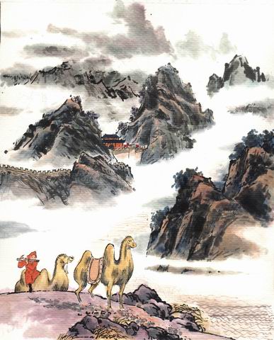 王之涣 【其一】 黄河远上白云间,一片孤城万仞山。 羌笛何须怨杨柳,春风不度玉门关。 【其二】 单于北望拂云堆,杀马登坛祭几回。 汉家天子今神武,不肯和亲归去来。 注释: ⑴凉州词:又名《出塞》。为当时流行的一首曲子《凉州》配的唱词。郭茂倩《乐府诗集》卷七十九《近代曲词》载有《凉州歌》,并引《乐苑》云:“《凉州》,宫调曲,开元中西凉府都督郭知运进。”凉州,属唐陇右道,治所在姑臧县(今甘肃省武威市凉州区)。 ⑵远上:远远向西望去。黄河远上:远望黄河的源头。“河”一作“沙”,“远”一作“直”。 ⑶孤城:指孤零零的戍边的城堡。仞:古代的长度单位,一仞相当于七尺或八尺(约等于213厘米或264cm厘米)。 ⑷羌笛:古羌族主要分布在甘、青、川一带。羌笛是羌族乐器,属横吹式管乐。何须:何必。杨柳:《折杨柳》曲。古诗文中常以杨柳喻送别情事。《诗经·小雅·采薇》:“昔我往矣,杨柳依依。”北朝乐府《鼓角横吹曲》有《折杨柳枝》,歌词曰:“上马不捉鞭,反拗杨柳枝。下马吹横笛,愁杀行客儿。” ⑸度:吹到过。玉门关:汉武帝置,因西域输入玉石取道于此而得名。故址在今甘肃敦煌西北小方盘城,是古代通往西域的要道。六朝时关址东移至今安西双塔堡附近。 ⑹单于:古代对匈奴君长的称呼,此指突厥首领。拂云堆:祠庙名,在今内蒙古五原。 ⑺来:语助词,无义。 (8)春风:某种温暖关怀或某种人间春意春象 ![]() 翻译: 【其一】 纵目望去,黄河渐行渐远,好像奔流在缭绕的白云中间,就在黄河上游的万仞高山之中,一座孤城玉门关耸峙在那里,显得孤峭冷寂。何必用羌笛吹起那哀怨的杨柳曲去埋怨春光迟迟不来呢,原来玉门关一带春风是吹不到的啊! 【其二】 突厥首领来到中原求和亲,北望自己的领土,看到了边界以北的拂云堆神祠,回想昔日曾经多次在此杀马登台祭祀,然后兴兵犯唐,颇有几分踌躇满志。但现在唐朝天子神武超绝,不肯与突厥和亲,此次中原之行只好无功而返。 ![]() 赏析: 《凉州词二首》是唐代诗人王之涣的组诗作品。第一首诗以一种特殊的视角描绘了黄河远眺的特殊感受,同时也展示了边塞地区壮阔、荒凉的景色,悲壮苍凉,流落出一股慷慨之气,边塞的酷寒正体现了戍守边防的征人回不了故乡的哀怨,这种哀怨不消沉,而是壮烈广阔。第二首诗反映的是唐朝与北方少数民族之间的关系。诗歌以汉代唐,写一位边地首领到唐朝来求和亲而未能如愿,通过描写其行动与心理,从侧面烘托唐朝国势的强盛。 其一 据唐人薛用弱《集异记》记载:开元(唐玄宗年号,公元713—741年)间,王之涣与高适、王昌龄到旗亭饮酒,遇梨园伶人唱曲宴乐,三人便私下约定以伶人演唱各人所作诗篇的情形定诗名高下。王昌龄的诗被唱了两首,高适也有一首诗被唱到,王之涣接连落空。轮到诸伶中最美的一位女子演唱了,她所唱则为“黄河远上白云间”。王之涣甚为得意。这就是著名的“旗亭画壁”故事。此事未必实有。但表明王之涣这首诗在当时已成为广为传唱的名篇。 诗的前两句描绘了西北边地广漠壮阔的风光。首句抓住自下(游)向上(游)、由近及远眺望黄河的特殊感受,描绘出“黄河远上白云间”的动人画面:汹涌澎湃波浪滔滔的黄河竟象一条丝带迤逦飞上云端。写得真是神思飞跃,气象开阔。诗人的另一名句“黄河入海流”,其观察角度与此正好相反,是自上而下的目送;而李白的“黄河之水天上来”,虽也写观望上游,但视线运动却又由远及近,与此句不同。“黄河入海流”和“黄河之水天上来”,同是着意渲染黄河一泻千里的气派,表现的是动态美。而“黄河远上白云间”,方向与河的流向相反,意在突出其源远流长的闲远仪态,表现的是一种静态美。同时展示了边地广漠壮阔的风光,不愧为千古奇句。 次句“一片孤城万仞山”出现了塞上孤城,这是此诗主要意象之一,属于“画卷”的主体部分。“黄河远上白云间”是它远大的背景,“万仞山”是它靠近的背景。在远川高山的反衬下,益见此城地势险要、处境孤危。“一片”是唐诗习用语词,往往与“孤”连文(如“孤帆一片”、“一片孤云”等等),这里相当于“一座”,而在词采上多一层“单薄”的意思。这样一座漠北孤城,当然不是居民点,而是戌边的堡垒,同时暗示读者诗中有征夫在。“孤城”作为古典诗歌语汇,具有特定涵义。它往往与离人愁绪联结在一起,如“夔府孤城落日斜,每依北斗望京华”(杜甫《秋兴》)、“遥知汉使萧关外,愁见孤城落日边”(王维《送韦评事》)等等。第二句“孤城”意象先行引入,为下两句进一步刻划征夫的心理作好了准备。 诗起于写山川的雄阔苍凉,承以戌守者处境的孤危。第三句忽而一转,引入羌笛之声。羌笛所奏乃《折杨柳》曲调,这就不能不勾起征夫的离愁了。此句系化用乐府《横吹曲辞·折杨柳歌辞》“上马不捉鞭,反折杨柳枝。蹀座吹长笛,愁杀行客儿”的诗意。折柳赠别的风习在唐时最盛。“杨柳”与离别有更直接的关系。所以,人们不但见了杨柳会引起别愁,连听到《折杨柳》的笛曲也会触动离恨。而“羌笛”句不说“闻折柳”却说“怨杨柳”,造语尤妙。这就避免直接用曲调名,化板为活,且能引发更多的联想,深化诗意。玉门关外,春风不度,杨柳不青,离人想要折一枝杨柳寄情也不能,这就比折柳送别更为难堪。征人怀着这种心情听曲,似