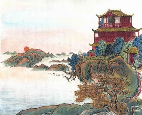 王之涣 白日依山尽,黄河入海流。 欲穷千里目,更上一层楼。 注释 1.鹳雀楼:旧址在山西永济县,楼高三层,前对中条山,下临黄河。传说常有鹳雀在此停留,故有此名。 2.白日:太阳。 3.依:依傍。 4.尽:消失。 这句话是说太阳依傍山峦沉落。 5。欲:想要得到某种东西或达到某种目的的愿望,但也有希望、想要的意思。 6.穷:尽,使达到极点。 7.千里目:眼界宽阔。 8.更:替、换。(不是通常理解的“再”的意思) ![]() 译文一: 夕阳依傍着西山慢慢地沉没, 滔滔黄河朝着东海汹涌奔流。 若想把千里的风光景物看够, 那就要登上更高的一层城楼。 翻译二: 夕阳西沉,渐渐没入连绵的群山,黄河奔腾,汇入浩瀚的大海。 虽然眼前一片壮阔,但要打开千里视野,看得更清更远,那还须再登上一层层高楼。 【赏析】 《登鹳雀楼》是盛唐诗人王之涣的一首五言绝句,前两句写的是自然景色,但开笔就有缩万里于咫尺,使咫尺有万里之势;后两句写意,写的出人意料,把哲理与景物、情势溶化得天衣无缝,成为鹳雀楼上一首不朽的绝唱。 此诗虽然只有二十字,却以千均巨椽,绘下北国河山的磅礴气势和壮丽景象,令人襟怀豪放。诗人受大自然震撼的心灵,悟出的是朴素而深刻的哲理,能够催人抛弃固步自封的浅见陋识,登高放眼,不断拓出愈益美好的崭新境界。清代诗评家也认为:“王诗短短二十字,前十字大意已尽,后十字有尺幅千里之势。”[1-2] 这首诗是唐代五言诗的压卷之作,王之涣因这首五言绝句而名垂千古,鹳雀楼也因此诗而名扬中华。 黄昏时分登上鹳鹊楼,万里河山,尽收眼底;夕阳也在遥远的天际渐渐沉落。首二句诗「缩万里于咫尺」,使咫尺有万里之势,苍茫壮阔,气势雄浑。末二句是境界的升华,出人意表、别有一番新意,既有高瞻远瞩之胸襟,又寓孜孜进取之深意,有情有理。有人说“诗忌说理”,应当说,诗歌不要生硬枯燥抽象地说理,而不是说诗歌不能宣扬哲理。在这首诗里,诗人把道理和景物、情事自然贴切地融合在一起,使人感觉不到它是在说理,而是理在其中。 全诗四句二联,对仗工整、气势连贯、厚重有力。为唐诗中之不朽之作。 诗的前两句“白日依山尽,黄河入海流”,写的是登楼望见的景色,写得景象壮阔,气势雄浑。这里,诗人运用极其朴素、极其浅显的语言,既高度形象又高度概括地把进入广大视野的万里河山,收入短短十个字中;而我们在千载之下读到这十个字时,也如临其地,如见其景,感到胸襟为之一开。首句写遥望一轮落日向着楼前一望无际、连绵起伏的群山西沉,在视野的尽头冉冉而没。这是天空景、远方景、西望景。次句写目送流经楼前下方的黄河奔腾咆哮、滚滚南来,又在远处折而东向,流归大海。这是由地面望到天边,由近望到远,由西望到东。这两句诗合起来,就把上下、远近、东西的景物,全都容纳进诗笔之下,使画面显得特别宽广,特别辽远。就次句诗而言,诗人身在鹳雀楼上,不可能望见黄河入海,句中写的是诗人目送黄河远去天边而产生的意中景,是把当前景与意中景溶合为一的写法。这样写,更增加了画面的广度和深度。 杜甫在《戏题王宰画山水图歌》中有“尤工远势古莫比,咫尺应须论万里”两句,虽是论画,也可以用来论诗。王之涣的这两句写景诗就做到了缩万里于咫尺,使咫尺有万里之势。 诗笔到此,看似已经写尽了望中的景色,但不料诗人在后半首里,以“欲穷千里目,更上一层楼”这样两句即景生意的诗,把诗篇推引入更高的境界,向读者展示了更大的视野。这两句诗,既别翻新意,出人意表,又与前两句诗承接得十分自然、十分紧密;同时,在收尾处用一“楼”字,也起了点题作用,说明这是一首登楼诗。从这后半首诗,可推知前半首写的可能是在第二层楼所见,而诗人还想进一步穷目力所及看尽远方景物,更登上了楼的顶层。诗句看来只是平铺直叙地写出了这一登楼的过程,而含意深远,耐人探索。这里有诗人的向上进取的精神、高瞻远瞩的胸襟,也道出了要站得高才看得远的哲理。 ![]() 赏析二: 鹳雀楼,又名鹳鹊楼。旧址在今山西永济县,唐时属河中府。宋代沈括《梦溪笔谈》载::“河中府鹳雀楼三层,前瞻中条,下瞰大河,唐人留诗者甚多。” 鹳雀楼曾是一方登临胜地,唐人海于楼上凭高望远,即兴赋诗,故《梦溪笔谈》谓其上::“唐人留诗者甚多。”惜乎大浪淘沙,历史无情。鹳雀楼本身既已淹没在岁月的洪流之中,那些可能很精采的唐人题咏也随之荡然无存。然而,其中王之涣所作的这一首《登鹳雀楼》诗却有幸越过了一千余年的历史长河,直到今天还传诵于千家万户。这不能不证明它本身具备了强大的艺术魅力。 今天我们重读这首短诗,仍然强烈地感受到那种力量的存在。 诗的开头是一对偶句:“白日依山尽,黄河入海流。”对仗纯朴自然,工整流畅,真是天衣无缝。白日依山,黄河入海,视野开阔,胸怀宽广。诗人所表现出来的气质,一开始便不同凡响。自然,这暗中也写出了登楼本身,只有登临纵目,眼光和胸襟才会如此高远宽阔。而称太阳为“白日”,这是写实的笔调。落日衔山,云遮雾障,那本已减弱的太阳的光辉,此时显得更加暗淡,所以诗人直接观察到“白日”的奇景。至于“黄河”,当然也是写实。它宛若一条金色的飘带,飞舞于层峦叠嶂之间。诗人眼前所呈现的,是一幅溢光流彩、金碧交辉的壮丽图画。这幅图画还处于瞬息多变的动态之