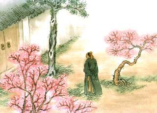 题都城南庄 崔护 去年今日此门中,人面桃花相映红。 人面不知何处去,桃花依旧笑春风。 【诗文解释】 去年的今天在这院门里,姑娘美丽的脸庞和粉红的桃花相互映衬。如今姑娘不知到哪里去了,只有桃花依旧在春风中盛开。 译文 去年的今天,正是在长安南庄的这户人家门口,姑娘你那美丽的面庞和盛开的桃花交相辉映,显得分外绯红。 时隔一年的今天,故地重游,姑娘你那美丽的倩影,已不知去了哪里,只有满树桃花依然笑迎着和煦的春风。 【词语解释】 ⑴都:国都,指唐朝京城长安(今陕西西安)。 ⑵人面:指姑娘的脸。第三句中“人面”指代姑娘。 ⑶不知:一作“秖今”。 ⑷笑:形容桃花盛开的样子。 【诗文赏析】 唐德宗贞元初年,博陵才子崔护科举落第,便在长安找个住处继续攻读。清明节的一天,崔护去城南领略大自然的景色。在一户农家小院前想讨碗水喝,农家出来一位美丽的姑娘端来一碗水,崔护被姑娘的美貌深深打动了,不禁产生了爱慕之情。第二年清明节的一天,他又来到这个农家前,但大门上了锁,于是他在院门上写下了这首诗留给姑娘。 这首诗中,诗人设置了两个场景,“寻春遇艳”与“重寻不遇”,虽然场景相同,却是物是人非。两个场景的映照,曲折地表达出诗人无限怅惘。 这首诗有一段颇具传奇色彩的本事,唐孟棨《本事诗·情感》有记载。是否真有此“本事”,颇可怀疑。也许竟是先有了诗,然后据以敷演成上述“本事”的。但有两点似可肯定:一、这诗是有情节性的;二、上述“本事”对理解这首诗是有帮助的。 四句诗包含着一前一后两个场景相同、相互映照的场面。第一个场面:寻春遇艳──“去年今日此门中,人面桃花相映红。”如果我们真的相信有那么一回事,就应该承认诗人确实抓住了“寻春遇艳”整个过程中最美丽动人的一幕。“人面桃花相映红”,不仅为艳若桃花的“人面”设置了美好的背景,衬出了少女光彩照人的面影,而且含蓄地表现出诗人目注神驰、情摇意夺的情状,和双方脉脉含情、未通言语的情景。通过这最动人的一幕,可以激发起读者对前后情事的许多美丽想象。这一点,孟棨的《本事诗》可能正是这样做的,后来的戏曲(如《人面桃花》)则作了更多的发挥。 第二个场面:重寻不遇。还是春光烂漫、百花吐艳的季节,还是花木扶疏、桃柯掩映的门户,然而,使这一切都增光添彩的“人面”却不知何处去,只剩下门前一树桃花仍旧在春风中凝情含笑。桃花在春风中含笑的联想,本从“人面桃花相映红”得来。去年今日,伫立桃柯下的那位不期而遇的少女,想必是凝睇含笑,脉脉含情的;而今,人面杳然,依旧含笑的桃花除了引动对往事的美好回忆和好景不常的感慨以外,还能有什么呢?“依旧”二字,正含有无限怅惘。 整首诗其实就是用“人面”、“桃花”作为贯串线索,通过“去年”和“今日”同时同地同景而“人不同”的映照对比,把诗人因这两次不同的遇合而产生的感慨,回环往复、曲折尽致地表达了出来。对比映照,在这首诗中起着极重要的作用。因为是在回忆中写已经失去的美好事物,所以回忆便特别珍贵、美好,充满感情,这才有“人面桃花相映红”的传神描绘;正因为有那样美好的记忆,才特别感到失去美好事物的怅惘,因而有“人面不知何处去,桃花依旧笑春风”的感慨。 尽管这首诗有某种情节性,有富于传奇色彩的“本事”,甚至带有戏剧性,但它并不是一首小叙事诗,而是一首抒情诗。“本事”可能有助于它的广泛流传,但它本身所具的典型意义却在于抒写了某种人生体验,而不在于叙述了一个人们感兴趣的故事。读者不见得有过类似《本事诗》中所载的遇合故事,但却可能有过这种人生体验:在偶然、不经意的情况下遇到某种美好事物,而当自己去有意追求时,却再也不可复得。这也许正是这首诗保持经久不衰的艺术生命力的原因之一吧。 “寻春遇艳”和“重寻不遇”是可以写成叙事诗的。作者没有这样写,正说明唐人更习惯于以抒情诗人的眼光、感情来感受生活中的情事。