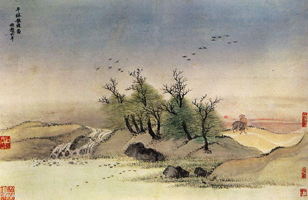 司空曙 世乱同南去,时清独北还。 他乡生白发,旧国见青山。 晓月过残垒,繁星宿故关。 寒禽与衰草,处处伴愁颜。 【诗文解释】 时局动乱时我们一起去了南方,安定后,你却一个人独自回到北方。在他乡生出了白发,回到家乡,只能看到青山依旧。晓月的映照下,经过残破的壁垒,繁星的夜晚只能宿在原来的关塞。只有寒禽和衰草,处处陪伴着愁苦的容颜。 译文1: 战乱时我和你一同逃到南方,时局安定你却独自北归家园。 流落他乡头上已经生出白发,战后的家乡也只能见到青山。 晓行要经过许多残破的营垒,夜里只能披星露宿荒凉故关。 旷野里的飞禽与枯黄的野草,将处处伴随着你的悲苦愁颜。 译文2: 世道混乱的时候,你我一同逃亡到南地,如今社会清平了,你却独自返回到北方的故乡。长期淹留外地,你的两鬓已生白发,但天地不变,故国的青山依旧苍苍。你归心似箭而日夜兼程,在拂晓淡淡月光的映照下,经过战时营垒的遗迹。满天繁星时,又住在通往故乡的关隘上,只有枯草和啼寒的鸟一直在陪伴着你,与你共同忧戚共同伤感。 【词语解释】 同:一起。 旧国:故里。 残垒:残余的工事。 ![]() 【诗文赏析】 诗人送友人回乡,惋惜不能同回,他想像着友人回归途中的情景,反映出战乱带给人们的痛苦,抒发了自己的感慨。全诗流露出哀伤的情绪,写景抒情,委婉动人。 这首诗写于平定“安史之乱”之后,意在伤己独留南方,不能与朋友同来同返,并抒发了对乱后形势的忧虑之情。 诗题为“贼平后送人北归”,“贼平”,指公元763年夏历正月,叛军首领史朝义率残部逃到范阳,走投无路,自缢身亡,“安史之乱”最终被朝廷平定。“北归”,指由南方回到故乡,《新唐书》载司空曙为广平人,这个“广平”,据考证当在今河北或北京境内,是“安史之乱”的重灾区。 “世乱同南去,时清独北还。”首联交代送人北归的原因,抒写自己不能还乡的痛苦,“世乱”之时,司空曙和友人一起逃到江南避难,如今天下已经太平,友人得以回去,自己仍滞留他乡,“独”字含义丰富,一指友人独自北还,一指自己独不得还,含有无限悲感。 “他乡生白发,旧国见青山。”上句“生白发”亦有双重涵义:一是形容乱离中家国之愁的深广,一是说时间的漫长,从战乱开始到结束,前后历时九年。“旧国”指故乡,“见青山”是说假如友人回到故乡,田园庐舍肯定是一片废墟,所见也惟有青山如故。从这句起,以下都是想象北归人途中的心情和所见的景物。律诗讲究“起承转合”,一般在第三联转折,此诗却在第二联完成“承”、“转”,章法上别具一格。 “晓月过残垒,繁星宿故关”。颈联及尾联单从友人方面落笔。“晓月”句想象其早行情景,“繁星”句虚拟其晚宿情景。这一联点明“残垒”,即残破的壁垒,泛指战争遗留下来的痕迹。“故关”,为兵家必争之地,估计也残破不堪了。因而这一联着重写“贼平”后残破、荒凉之景,笔力所致,“描尽乱离之后荒乱风景”(王文濡《历代诗评注读本》)。 “寒禽与衰草,处处伴愁颜。”尾联继续虚写友人归途中所见所感。上句写景,“禽”和“草”本无知觉,而曰“寒禽”、“衰草”,正写出诗人心中对乱世的感受。下句直接写“愁”,言愁无处不在,“愁”既指友人之愁,也兼含作者之愁,这里与一、二两联遥相呼应,针线细密,用笔娴熟。 这是一首酬赠诗,这类题材在“大历十才子”集中比比皆是,但多数思想平庸,艺术才力贫乏,缺少真情实感,这首诗却能独辟蹊径,通过送北归的感伤写出“旧国残垒”、“寒禽衰草”的乱后荒败之景,由送别的感伤推及时代的感伤、民族的感伤。 ![]() 作者在平定“安史之乱”后,未能和朋友一起北归,所谓“来时万里同为客,今日翻为送故人。”(《峡口送友》)现在吟诗送友,加之忧国、思家,心情是格外沉痛,也格外复杂。 全诗共八句,头两句“世乱同南去,时清独北还”,是解题。接着便是本联:他乡生白发,旧国见青山。“生白发”既形容了时间的漫长(安史之乱长达9年),又暗指深广的颠沛愁苦。“旧国”指故乡、家园,“见青山”是想象友人如果回到故乡,除了青山依旧外,田园庐舍一定已成废墟,也就是说旧国只剩下青山了。这一联之后,还有四句:晓月过残垒,繁星宿故关。寒禽与衰草,处处伴愁颜。描绘乱离之后的“荒乱风景”,同样流露出作者的无穷伤感。 八句中以“他乡生白发,旧国见青山”两句最为世人传诵,写沉痛于句外,不但“旧国残垒”、“寒禽衰草”的荒凉之景已隐含其中,浓厚的别情和痛苦,也溢于言表。