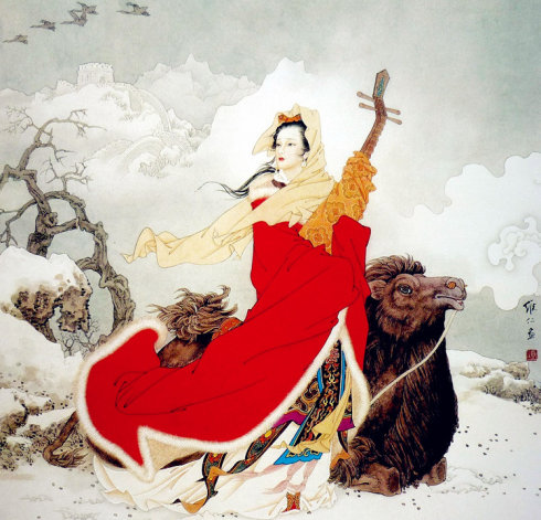 “画图省识春风面,环佩空归夜月魂”的意思:只依凭画图识别昭君的容颜,月夜里环佩叮当是昭君归魂。 出自唐代大诗人杜甫《咏怀古迹·群山万壑赴荆门》 咏怀古迹 杜甫 群山万壑赴荆门,生长明妃尚有村。 一去紫台连朔漠,独留青冢向黄昏。 画图省识春风面,环佩空归夜月魂。 千载琵琶作胡语,分明怨恨曲中论。 注释 ①荆门:山名,在今湖北宜都西北。 ②明妃:指王昭君。 ③去:离开。 ④紫台:汉宫,紫宫,宫廷。 ⑤朔漠:北方的沙漠。 ⑥青冢:指王昭君的坟墓。 ⑦省识:略识。 ⑧春风面:形容王昭君的美貌。 名句赏析 画图省识春风面,环佩空归夜月魂。 ①省识:约略看识。 ②春风面:青春美丽的面容。 ③环佩:古时女性的装饰物。 《西京杂记》载:传说汉元帝因宫女太多,就让画工画出宫女的形状,便于随其临幸。王昭君因不向画工行贿,画工就故意把她画得很丑。等到和亲已定,元帝才发现她青春貌美,举止闲雅大方。然而为重信义,不再换人。事后元帝命令杀了画工。 这两句是说,单凭画图约略看识,怎能辨出青春美貌呢?昭君身死匈奴,恐怕只有她的灵魂能在月夜回归汉室。借昭君的悲剧,抒自己的怀抱,蕴含丰富、深沉,耐人咏叹。 译文 千山万岭好像波涛奔赴荆门,王昭君生长的乡村至今留存。 从紫台一去直通向塞外沙漠,荒郊上独留的青坟对着黄昏。 只依凭画图识别昭君的容颜,月夜里环佩叮当是昭君归魂。 千载琵琶一直弹奏胡地音调,曲中抒发的分明的昭君怨恨。 ![]() 赏析: 《咏怀古迹·群山万壑赴荆门》是唐代诗人杜甫于唐代宗大历元年(766年)在夔州(治今重庆奉节)写成的组诗《咏怀古迹五首》的第三首。此诗吟咏王昭君,并对王昭君凄凉的身世、壮志未酬的人生表示了深切的同情,并寄寓了自己仕途失意、颠沛流离的身世之感,抒发了自身的理想、感慨和悲哀。在写作手法上,语言凝练,气势浑厚,意境深远。 这是组诗《咏怀古迹五首》其中的第三首,诗人借咏昭君村、怀念王昭君来抒写自己的怀抱。诗人有感于王昭君的遭遇。寄予了自己深切的同情,同时表现了昭君对故国的思念与怨恨,并赞美了昭君虽死,魂魄还要归来的精神,从中寄托了诗人自己身世及爱国之情。全诗叙事明确,形象突出,寓意深刻。 “群山万壑赴荆门,生长明妃尚有村”。诗的发端两句,首先点出昭君村所在的地方。据《一统志》说:“昭君村,在荆州府归州东北四十里。”其地址,即在今湖北秭归县的香溪。杜甫写这首诗的时候,正住在夔州白帝城。这是三峡西头,地势较高。他站在白帝城高处,东望三峡东口外的荆门山及其附近的昭君村。远隔数百里,本来是望不到的,但他发挥想象力,由近及远,构想出群山万壑随着险急的江流,奔赴荆门山的雄奇壮丽的图景。他就以这个图景作为这首诗的首句,起势很不平凡。杜甫写三峡江流有“众水会涪万,瞿塘争一门”(《长江二首》)的警句,用一个“争”字,突出了三峡水势之惊险。这里则用一个“赴”字突出了三峡山势的雄奇生动。这是一个有趣的对照。但是,诗的下一句,却落到一个小小的昭君村上,颇有点出人意外,因而引起评论家一些不同的议论。明人胡震亨评注的《杜诗通》就说:“群山万壑赴荆门,当似生长英雄起句,此未为合作。”意思是这样气象雄伟的起句,只有用在生长英雄的地方才适当,用在昭君村上是不适合,不协调的。清人吴瞻泰的《杜诗提要》则又是另一种看法。他说:“发端突兀,是七律中第一等起句,谓山水逶迤,钟灵毓秀,始产一明妃。说得窈窕红颜,惊天动地。”意思是说,杜甫正是为了抬高昭君这个“窈窕红颜”,要把她写得“惊天动地”,所以才借高山大川的雄伟气象来烘托她。杨伦《杜诗镜铨》说:“从地灵说入,多少郑重。”也与这个意思相接近。 “一去紫台连朔漠,独留青冢向黄昏。”前两句写昭君村,这两句才写到昭君本人。诗人只用这样简短而雄浑有力的两句诗,就写尽了昭君一生的悲剧。从这两句诗的构思和词语说,杜甫大概是借用了南朝江淹《恨赋》里的话:“明妃去时,仰天太息。紫台稍远,关山无极。望君王兮何期,终芜绝兮异域。”但是,仔细地对照,杜甫这两句诗所概括的思想内容的丰富和深刻,大大超过了江淹。清人朱瀚《杜诗解意》说:“‘连’字写出塞之景,‘向’字写思汉之心,笔下有神。”说得很对。但是,有神的并不止这两个字。读者只看上句的紫台和朔漠,自然就会想到离别汉宫、远嫁匈奴的昭君在万里之外,在异国殊俗的环境中,一辈子所过的生活。而下句写昭君死葬塞外,诗人用青冢、黄昏这两个最简单而现成的词汇,尤其具有大巧若拙的艺术匠心。在日常的语言里,黄昏两字都是指时间,而在这里,它似乎更主要是指空间了,它指的是那和无边的大漠连在一起的、笼罩四野的黄昏的天幕,它是那样地大,仿佛能够吞食一切,消化一切,但是,独有一个墓草长青的青冢,它吞食不下,消化不了。这句诗就给人一种天地无情、青冢有恨的无比广大而沉重之感。 “画图省识春风面,环佩空归月夜魂。”这是紧接着前两句,更进一步写昭君的身世家国之情。画图句承前第三句,环佩句承前第四句。画图句是说,由于汉元帝的昏庸,对后妃宫人们,只看图画不看人,把她们的命运完全交给画工们来摆布。省识,是略识之意。说元帝从图画里略识昭君,实际上就是根本不识昭君,所以就造成了昭君葬身