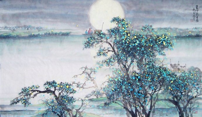 “昨夜闲潭梦落花,可怜春半不还家”的诗意:昨天夜里梦见花落闲潭,可惜的是春天过了一半自己还不能回家。 出自唐代诗人张若虚的古诗作品《春江花月夜》 春江潮水连海平,海上明月共潮生。 滟滟随波千万里,何处春江无月明。 江流宛转绕芳甸,月照花林皆似霰。 空里流霜不觉飞,汀上白沙看不见。 江天一色无纤尘,皎皎空中孤月轮。 江畔何人初见月?江月何年初照人? 人生代代无穷已,江月年年望相似。 不知江月待何人,但见长江送流水。 白云一片去悠悠,青枫浦上不胜愁。 谁家今夜扁舟子?何处相思明月楼? 可怜楼上月徘徊,应照离人妆镜台。 玉户帘中卷不去,捣衣砧上拂还来。 此时相望不相闻,愿逐月华流照君。 鸿雁长飞光不度,鱼龙潜跃水成文。 昨夜闲潭梦落花,可怜春半不还家。 江水流春去欲尽,江潭落月复西斜。 斜月沉沉藏海雾,碣石潇湘无限路。 不知乘月几人归,落月摇情满江树。 【注释】 1、闲潭:幽静的水潭 2、春半:春光将要流尽 ![]() 赏析: 《春江花月夜》是唐代诗人张若虚的作品。此诗共三十六句,每四句一换韵,以富有生活气息的清丽之笔,创造性地再现了江南春夜的景色,如同月光照耀下的万里长江画卷,同时寄寓着游子思归的离别相思之苦。诗篇意境空明,缠绵悱恻,洗净了六朝宫体的浓脂腻粉,词清语丽,韵调优美,脍炙人口,乃千古绝唱,素有“孤篇盖全唐”之誉。 《春江花月夜》这首诗的作者是初唐张若虚,开元初,他与贺知章、张旭、包融并称“吴中四士”。他留给后人的作品不多,《全唐诗》中仅存二首,而这首《春江花月夜》又是是最著名的一首,它号称以“孤篇横绝全唐”,奠定了张若虚在唐代文学史的不朽地位。 此诗兼写春、江、花、月、夜及其相关的各种景色,而以月光统众景,以众景含哲理、寓深情,构成朦胧、深邃、奇妙的艺术境界,令人探索不尽,玩味无穷。 全诗可分前后两大段落。“长江送流水”以前是前一段落,由春、江、月、夜的美景描绘引发关于宇宙、人生的哲理思考。发端两句,展现了“春江潮水连海平,海上明月共潮生”的辽阔视野。一个“生”字,将明月拟人化;一个“共”字,又强调了春江与明月的天然联系。江流千万里,月光随波千万里;江流绕芳甸,月照花林皆似霰。总而言之,月光、江波互相辉映,有春江处,皆有明月,何等多情!诗人立于江畔,仰望明月,不禁产生了“江畔何人初见月?江月何年初照人?”的疑问。对于这个涉及宙宇生成、人类起源的疑问,诗人自然无法回答。于是转入“人生代代无穷已,江月年年只相似,不知江月待何人,但见长江送流水”的沉思。宇宙永恒,明月常在;而人生呢,就个体而言,生命何其短促!然而就人类整体而言,则代代相传,无穷无尽,因而能与明月共存。所以虽然不知“江月何年初照人”,但从“初照”以后,照过一代人,又照一代人。诗人对比明月的永恒,对人生的匆匆换代不无感慨,然而想到人类生生不已,自己也被明月照耀,又油然而生欣慰感。由此又作进一步探求:一轮“孤月”,永照长江,难道是明待她的意中人而至今尚未等到吗?于是由江月“待人”产生联想,转入后一段落。“孤月”尚且“待人”,何况游了、思妇?诗人于是驰骋想像,代抒游子、思妇两地相思、相望之情。 诗人想象“谁家今夜扁舟子”,正经过江边的“青枫浦”,目睹“白云一片去悠悠”而生飘泊无定的旅“愁”,于是相思“何处明月楼”。从“应照离人妆镜台”的那个“应”字看,“可怜楼上月俳回”以下数句,都是诗人想象中的扁舟子”想象妻子如何思念自己之词:妻子望月怀人而人终不至,因而怕见月光。但她可以卷起“玉户帘”,却卷不去月光;可以拂净“捣衣砧”,却拂不掉月色。“此时相望不相闻”,而普照乾坤的月华是能照见夫君的,因而又产生了“愿逐月华流照君”的痴想。追随月光照见夫君,当然不可能,于是又想按照古代传说托鸿雁、鲤鱼捎书带信,然而鸿雁奋飞,也飞不出明月的光影;鲤鱼腾跃,也只能激起水面的波纹。接下去,诗人想象中的“扁舟子”思家念妻,由想象而形诸梦寐。他在梦中看见落花,意识到春天已过去大半,而自己还未能还家。眼睁睁地看着“江水流春去欲尽,江潭溶月复西斜”,时光不断消逝,自己的青春、憧憬也跟着消逝,然而碣石、潇湘,水远山遥,怎能乘月归家?以“落月摇情满江树”结束全篇,情思摇曳,动人心魄。自“白云一片”至此,写游子、思妇的相思而以春、江、花、月、夜点染、烘托,想象中有想象,实境中含梦境,心物交感,情景相生,时空叠合,虚实互补,从而获得了低徊宛转、缠绵俳恻、言有尽而意无穷的艺术效果。全诗三十六句,每四句换韵,平、上、去相间,抑扬顿挫,与内容的变化相适应,意蕴探广,情韵悠扬。 这首诗语言优美、生动、形象,富有哲理意味,它将真实的生命体验融入优美的兴象中,营造出了一个空明纯美的诗歌意境。