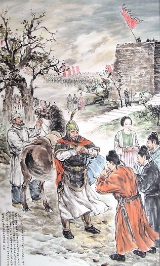 “轮台九月风夜吼,一川碎石大如斗,随风满地石乱走”这几句大意是:九月之夜,轮台狂风怒吼,一川酒斗大的碎石,被狂风吹得满地乱滚。诗句用夸张手法展示“石乱走”的情景,表现出边塞狂风的迅猛。可用于形容大风态势及边地独具的风光。“吼”字形象地显示了狂风像疯狂的野兽一样,在怒吼,在咆哮。“满地石乱走”,更表现出风的狂暴,极言风之狂猛。到过新疆戈壁风区的人,对此会有深切的感受。三言两语就把环境的险恶、行军的艰苦勾勒了出来,烘托出将士不畏艰苦的精神。 出自唐·岑参《走马川行奉送封大夫出师西征》 君不见走马川行雪海边,平沙莽莽黄入天。 轮台九月风夜吼,一川碎石大如斗,随风满地石乱走。 匈奴草黄马正肥,金山西见烟尘飞,汉家大将西出师。 将军金甲夜不脱,半夜军行戈相拨,风头如刀面如割。 马毛带雪汗气蒸,五花连钱旋作冰,幕中草檄砚水凝。 虏骑闻之应胆慑,料知短兵不敢接,车师西门伫献捷。 注释 ⑴走马川:即车尔成河,又名左未河,在今新疆境内。行:诗歌的一种体裁。封大夫:即封常清,唐朝将领,蒲州猗氏人,以军功擢安西副大都护、安西四镇节度副大使、知节度事,后又升任北庭都护,持节安西节度使。西征:一般认为是出征播仙。 ⑵走马川行雪海边:一作“走马沧海边”。雪海:在天山主峰与伊塞克湖之间。 ⑶轮台:地名,在今新疆米泉境内。 ⑷匈奴:泛指西域游牧民族。 ⑸金山:指今新疆乌鲁木齐东面的博格多山。 ⑹汉家:唐代诗人多以汉代唐。 ⑺戈相拨:兵器互相撞击。 ⑻五花连钱:五花,连钱 指马斑驳的毛色。 ⑼草檄(xí):起草讨伐敌军的文告。 ⑽短兵:指刀剑一类武器。 ![]() 译文 您难道不曾看见吗?那辽阔的走马川紧靠着雪海边缘,茫茫无边的黄沙连接云天。 轮台九月整夜里狂风怒号,走马川的碎石块块大如斗,狂风吹得斗大乱石满地走。 这时匈奴牧草繁茂军马肥,侵入金山西面烟尘滚滚飞,汉家的大将率兵开始征西。 将军身著铠甲夜里也不脱,半夜行军戈矛彼此相碰撞,凛冽寒风吹到脸上如刀割。 马毛挂着雪花还汗气蒸腾,五花马的身上转眼结成冰,营幕中写檄文砚墨也冻凝。 敌军听到大军出征应胆惊,料他不敢与我们短兵相接,我就在车师西门等待报捷。 创作背景 此诗作于唐玄宗天宝十三载(754年)或天宝十四载(755年),当时岑参担任安西北庭节度使判官。这期间,封常清曾几次出兵作战。岑参对当时征战的艰苦、胜利的欢乐,都有比较深的体会,曾经写了不少诗歌来反映。这是岑参封常清出兵西征而创作的送行诗,与《轮台歌奉送封大夫出师西征》系同一时期、为同一事件、馈赠同一对象之作。 ![]() 赏析 《走马川行奉送封大夫出师西征》是唐代诗人岑参创作的一首诗。此诗抓住有边地特征的景物来状写环境的艰险,从而衬托士卒们大无畏的英雄气概。开头极力渲染环境恶劣、风沙遮天蔽日;接着写匈奴借草黄马壮之机入侵,而封将军不畏天寒地冻、严阵以待;最后写敌军闻风丧胆,预祝唐军凯旋。诗虽叙征战,却以叙寒冷为主,暗示冒雪征战之伟功。语句豪爽,如风发泉涌,真实动人。全诗句句用韵,三句一转,节奏急切有力,激越豪壮,别具一格。 这首诗主要表现了军队在莽莽沙海、风吼冰冻的夜晚进军情景。环境虽然恶劣,但将士们却充满着高昂的战斗气志。 为了表现边防将士高昂的爱国精神,诗人用了反衬手法,抓住有边地特征的景物来状写环境的艰险,极力渲染、夸张环境的恶劣,来突出人物不畏艰险的精神。诗中运用了比喻、夸张等艺术手法,写得惊心动魄,绘声绘色,热情奔放,气势昂扬。 首先围绕“风”字落笔,描写出征的自然环境。这次出征将经过走马川、雪海边,穿进戈壁沙漠。“平沙莽莽黄入天”,这是典型的绝域风沙景色,狂风怒卷,黄沙飞扬,遮天蔽日,迷迷蒙蒙,一派混沌的景象。开头三句无一“风”字,但捕捉住了风“色”,把风的猛烈写得历历在目。这是白天的景象。 “轮台九月风夜吼,一川碎石大如斗,随风满地石乱走。”对风由暗写转入明写,行军由白日而入黑夜,风“色”是看不见了,便转到写风声。狂风像发疯的野兽,在怒吼,在咆哮,“吼”字形象地显示了风猛风大。接着又通过写石头来写风。斗大的石头,居然被风吹得满地滚动,再著一“乱”字,就更表现出风的狂暴。“平沙莽莽”句写天,“石乱走”句写地,三言两语就把环境的险恶生动地勾勒出来了。 下面写匈奴利用草黄马肥的时机发动了进攻,“金山西见烟尘飞”中“烟尘飞”三字,形容报警的烽烟同匈奴铁骑卷起的尘土一起飞扬,既表现了匈奴军旅的气势,也说明了唐军早有戒备。下面,诗由造境转而写人,诗歌的主人公——顶风冒寒前进着的唐军将士出现了。诗人很善于抓住典型的环境和细节来描写唐军将士勇武无敌的飒爽英姿。如环境是夜间,“将军金甲夜不脱”,以夜不脱甲,写将军重任在肩,以身作则。“半夜军行戈相拨”写半夜行军,从“戈相拨”的细节可以想见夜晚一片漆黑,和大军衔枚疾走、军容整肃严明的情景。写边地的严寒,不写千丈之坚冰,而是通过几个细节来描写来表现的。“风头如刀面如割”,呼应前面风的描写;同时也是大漠行军最真切的感受。 “马毛带雪汗气蒸,五花连钱旋作冰。”战马在寒风中奔驰,那蒸腾的汗水,立刻在马毛上凝结成冰。诗人抓住了马身上那凝而又化、化而又凝的汗水进行