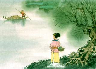 “桃叶传情竹枝怨,水流无限月明多。”诗的前两句是:“江南江北望烟波,入夜行人相应歌。”全诗是说,夜色中隔江相望,烟波渺茫,江边堤上歌声四起,相和相应。他们唱的是《桃叶歌》和《竹枝词》这些江南民歌。歌中所包含的“情”和“怨”,如同无限的月光和流水一般。景象深,意致远,婉转 流丽,清新圆转。 出自刘禹锡《堤上行三首》之二 江南江北望烟波,入夜行人相应歌。 桃叶传情竹枝怨,水流无限月明多。 烟波:烟雾苍茫的水面。 桃叶:乐府歌曲名。《乐府诗集》第四十五卷引《古今乐录》说:“桃叶歌者,晋王子敬之所作也。桃叶,子敬妾名,缘于笃爱,所以歌之。”(《桃叶歌》,是晋朝王子敬所作的。桃叶是王子敬的妾的名字,因为爱情深厚,所以才歌唱她。)《乐府诗集》载《桃叶歌辞》四首,没有作者姓名,属于吴声歌曲,应该是江南民歌。这里借指民间流行的表达爱情的歌。 竹枝怨:《竹枝词》诉说哀怨。竹枝词是一种诗体,是由古代巴蜀间的民歌演变过来的,刘禹锡把民歌变成了文人的诗体。这些民歌中有一些情歌,但多表达怨苦之情。夔州一带,是竹枝词的故乡。 月明:月亮光。 参考译文 江南江北同望波浪江烟,入夜行人还对歌在江边。 《桃叶歌》表达了爱情,《竹枝词》诉说着哀愁,水流和月光无穷无尽哟,恰似歌声中的情感绵绵。 ![]() 赏析 《堤上行三首》是唐代刘禹锡的组诗作品。《堤上行三首》选取了日暮争渡、月夜对歌、酒家迎客这三个场面,描绘了江中商船来往不绝、江边居民安居乐业的兴旺景象,表达了诗人对这一派兴旺景象的赞美之情。在这三首诗中,诗人没用一字来直接表达对自己所描写的景象的赞叹,但是却让人感觉出这三首诗字字都是对这种兴旺景象的礼赞。 重在描写长江两岸的风俗人情,具有浓郁的地方特色。开头二句先将月夜对歌总写一笔:月照寒江,夜色中隔江相望,烟波渺茫。“烟波”二字,把迷蒙的夜色和入夜时的江景写得非常美。在静态的景色描绘之后,继而写出两岸长堤之上,行人络绎不绝,歌声此伏彼起,相和相应,打破了静夜的沉寂。这个场面是宏大的,气势是磅礴的。 他们唱的是什么歌,诗人用第三句作了概括:“《桃叶》传情《竹枝》怨”,都是巴山楚水人民爱唱的民歌。《桃叶歌》倾吐爱情,《竹枝词》诉说哀怨,可以想见,这歌声对遭贬谪、受打击的诗人来说,自然会惹动自身的“情”与“怨”的,这也是“含思宛转”之处。诗的结句高妙,极有意境。“水流无限月明多”是写眼前所见之景:流水和月光无穷无尽,契合江边和夜色。同时也是比喻,以流水和月光的无限来比喻歌中“情”与“怨”的无限,把歌唱者的感情形象化。这句诗是以视觉来写听觉的,流水与月光,既含流动之势,又具明丽之色,这是用眼可以看到的,是视觉的感受;但是优美、动人的歌曲也能给人灵动、流丽的艺术感受,两者(指视觉与听觉)能引起“通感”。这种描写创造了优美的艺术境界,产生了良好的美学效果。整首诗写景与抒情水乳交融,感情深沉真挚,景色优美动人。