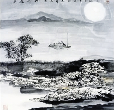 “不知乘月几人归,落月摇情满江树。”这两句是说,不知有几家的人儿趁着月光回来,落月的余辉,将激荡的情思洒在江边的树林之上。望月怀人之情,惇挚悠永,情景交融,意境深邃。思念之情,不绝如缕。诗句将月光之情、游子之情、诗人之情,交织一起,洒落在江树之上,也洒落在读者心上,情韵悠长,令人心醉神迷。 出自张若虚《春江花月夜》 春江潮水连海平,海上明月共潮生。 滟滟随波千万里,何处春江无月明。 江流宛转绕芳甸,月照花林皆似霰。 空里流霜不觉飞,汀上白沙看不见。 江天一色无纤尘,皎皎空中孤月轮。 江畔何人初见月?江月何年初照人? 人生代代无穷已,江月年年望相似。 不知江月待何人,但见长江送流水。 白云一片去悠悠,青枫浦上不胜愁。 谁家今夜扁舟子?何处相思明月楼? 可怜楼上月徘徊,应照离人妆镜台。 玉户帘中卷不去,捣衣砧上拂还来。 此时相望不相闻,愿逐月华流照君。 鸿雁长飞光不度,鱼龙潜跃水成文。 昨夜闲潭梦落花,可怜春半不还家。 江水流春去欲尽,江潭落月复西斜。 斜月沉沉藏海雾,碣石潇湘无限路。 不知乘月几人归,落月摇情满江树。 乘月:趁着月光。 摇情:激荡情思,犹言牵情。 译文 春天的江潮水势浩荡,与大海连成一片,一轮明月从海上升起,好像与潮水一起涌出来。 月光照耀着春江,随着波浪闪耀千万里,所有地方的春江都有明亮的月光。 江水曲曲折折地绕着花草丛生的原野流淌,月光照射着开遍鲜花的树林好像细密的雪珠在闪烁。 月色如霜,所以霜飞无从觉察。洲上的白沙和月色融合在一起,看不分明。 江水、天空成一色,没有一点微小灰尘,明亮的天空中只有一轮孤月高悬空中。 江边上什么人最初看见月亮,江上的月亮哪一年最初照耀着人? 人生一代代地无穷无尽,只有江上的月亮一年年地总是相像。 不知江上的月亮等待着什么人,只见长江不断地一直运输着流水。 游子像一片白云缓缓地离去,只剩下思妇站在离别的青枫浦不胜忧愁。 哪家的游子今晚坐着小船在漂流?什么地方有人在明月照耀的楼上相思? 可怜楼上不停移动的月光,应该照耀着离人的梳妆台。 月光照进思妇的门帘,卷不走,照在她的捣衣砧上,拂不掉。 这时互相望着月亮可是互相听不到声音,我希望随着月光流去照耀着您。 鸿雁不停地飞翔,而不能飞出无边的月光;月照江面,鱼龙在水中跳跃,激起阵阵波纹。 昨天夜里梦见花落闲潭,可惜的是春天过了一半自己还不能回家。 江水带着春光将要流尽,水潭上的月亮又要西落。 斜月慢慢下沉,藏在海雾里,碣石与潇湘的离人距离无限遥远。 不知有几人能趁着月光回家,唯有那西落的月亮摇荡着离情,洒满了江边的树林。 ![]() 赏析 《春江花月夜》是唐代诗人张若虚的作品。此诗共三十六句,每四句一换韵,以富有生活气息的清丽之笔,创造性地再现了江南春夜的景色,如同月光照耀下的万里长江画卷,同时寄寓着游子思归的离别相思之苦。诗篇意境空明,缠绵悱恻,洗净了六朝宫体的浓脂腻粉,词清语丽,韵调优美,脍炙人口,乃千古绝唱,素有“孤篇盖全唐”之誉。 整篇诗由景、情、理依次展开,第一部分写了春江的美景。第二部分写了面对江月由此产生的感慨。第三部分写了人间思妇游子的离愁别绪。 全诗紧扣春、江、花、月、夜的背景来写,而又以月为主体。“月”是诗中情景兼融之物,它跳动着诗人的脉搏,在全诗中犹如一条生命纽带,通贯上下,诗情随着月轮的生落而起伏曲折。月在一夜之间经历了升起——高悬——西斜——落下的过程。在月的照耀下,江水、沙滩、天空、原野、枫树、花林、飞霜、白沙、扁舟、高楼、镜台、砧石、长飞的鸿雁、潜跃的鱼龙,不眠的思妇以及漂泊的游子,组成了完整的诗歌形象,展现出一幅充满人生哲理与生活情趣的画卷。这幅画卷在色调上是以淡寓浓,虽用水墨勾勒点染,但“墨分五彩”,从黑白相辅、虚实相生中显出绚烂多彩的艺术效果,宛如一幅淡雅的中国水墨画,体现出春江花月夜清幽的意境美。