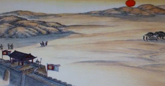 “蕃情似此水,长愿向南流。”的诗意:蕃人的情意好像这条流水,愿永久归附中原流向南方。 出自唐代诗人张乔《书边事》 调角断清秋,征人倚戍楼。 春风对青冢,白日落梁州。 大漠无兵阻,穷边有客游。 蕃情似此水,长愿向南流。 注释 ⑴调角:犹吹角。角是古代军中乐器,相当于军号。断:尽或占尽的意思。 ⑵戍楼:防守的城楼。 ⑶春风:指和煦凉爽的秋风。青冢:指西汉王昭君的坟墓。 ⑷白日:灿烂的阳光。梁州:当时指凉州。唐梁州为今陕西南郑一带,非边地,而乐曲《凉州》也有作《梁州》的。凉州,地处今甘肃省境内,曾一度被吐蕃所占。 ⑸大漠:一作“大汉”。 ⑹穷边:绝远的边地。 ⑺蕃:指吐蕃。情:心情。似:一作“如”。此水:不确指,可能指黄河。 参考译文 清秋的边地号角划断宁静,征人悠闲地倚着哨楼远望。 阵阵和风吹拂着昭君坟墓,边城梁州普照着和煦阳光。 浩瀚沙漠看不见军兵阻扰,边疆塞外也常有客人游赏。 蕃人的情意好像这条流水,愿永久归附中原流向南方。 ![]() 赏析 《书边事》是唐代诗人张乔的作品。此诗是写作者游历边塞的所见所闻,抒发了诗人美好的愿望。首联写边塞军旅生活和安宁,征人安闲无事;颔联虚写昭君墓秋来依然春风吹拂,梁州边城一派日丽平和,再次伸述民族团结,边防安定;颈联极言广漠边塞无蕃兵阻扰,游客到这里观光,反复渲染和平景象。尾联抒写作者“蕃情似此水”“长向南流”,民族团结的心愿。全诗描写了宁静的边塞,一片没有战事安宁的景象,意境高阔而深远,气韵直贯而又抑扬顿挫,写景抒情,别具一格。 此诗是写作者游历边塞的所见所闻。诗篇一开始就展示了一幅边塞军旅生活的安宁图景。首句“调角断清秋”极写在清秋季节,万里长空,角声回荡,悦耳动听。而一个“断”字,则将角声音韵之美和音域之广传神地表现出来;“调角”与“清秋”,其韵味和色调恰到好处地融而为一,构成一个声色并茂的清幽意境。这一句似先从高阔的空间落笔,勾勒出一个深广的背景,渲染出一种宜人的气氛。次句展现“征人”与“戍楼”所组成的画面,那安闲姿态像是在倾听那悦耳的角声和欣赏那迷人的秋色。这里不用“守”字,而用“倚”字,微妙地传达出边关安宁、征人无事的主旨。 颔联中的“春风”,并非实指,而是虚写。“春风对青冢”,把王昭君和亲的事迹与当前边关的安宁境况联系起来,表明民族团结正是人们长期的夙愿,而王昭君的形象也会像她墓上的青草在春风中摇荡一样,长青永垂。王昭君的墓在今内蒙古呼和浩特市南,与梁州(当指凉州)地带一东一西遥遥相对。傍晚时分,当视线从王昭君的墓地又移到凉州时,夕阳西下,余辉一片,正是一派日丽平和的景象。这说明即使在那更为遥远广阔的凉州地带,也是十分安定的。 颈联中的“大漠”和“穷边”,极言边塞地区的广漠;而“无兵阻”和“有客游”,在“无”和“有”、“兵”和“客”的对比中,写明边关地区,因无蕃兵阻挠,所以才有游客到来。这两句对于前面的景物描写起到了点化作用。 末联两句运用生动的比喻,十分自然地抒写出了作者的心愿,使诗的意境更深化一步。诗人望着这滔滔奔流的河水,思绪联翩。这表现出诗人渴望民族团结的愿望。 全诗抒写诗人于边关的所闻、所见、所望、所感,意境高阔而深远,气韵直贯而又有抑扬顿挫,运笔如高山流水,奔腾直下,而又回旋跌宕,荡气回肠,韵味无穷。