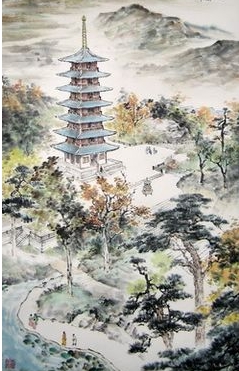 “秋色从西来,苍然满关中。五陵北原上,万古青蒙蒙。”这几句是登上慈恩寺浮图远望关中大地,萧瑟秋风从西扑面而来,充满苍茫的秋色。北原上埋葬着汉代五个皇帝的陵墓,千秋万代总笼罩在青蒙蒙的雾气之中。极写空间之阔大,时间之久远,胸襟豪迈,气象不凡,最为后人激赏。 出自岑参《与高适薛据登慈恩寺浮图》 塔势如涌出,孤高耸天宫。 登临出世界,蹬道盘虚空。 突兀压神州,峥嵘如鬼工。 四角碍白日,七层摩苍穹。 下窥指高鸟,俯听闻惊风。 连山若波涛,奔走似朝东。 青槐夹驰道,宫馆何玲珑。 秋色从西来,苍然满关中。 五陵北原上,万古青蒙蒙。 净理了可悟,胜因夙所宗。 誓将挂冠去,觉道资无穷。 注 ①五陵:今咸阳附近汉帝之五座陵墓。 ②蒙蒙:迷茫貌。 ③慈恩寺浮图:今西安大雁塔。 关中:指今陕西中部地区。 五陵:指汉代五个帝王的陵墓,即高祖长陵、惠帝安陵、景帝阳陵、武帝茂陵及昭帝平陵。 参考译文 宝塔宛如平地涌出,孤高巍峨耸入天宫。 登上去像走出人间,蹬踏梯道盘旋空中。 高峻突出镇定神州,峥嵘胜过鬼斧神工。 四角伸展挡住白日,七层紧紧连着苍穹。 下看飞鸟屈指可数,俯听山风呼啸迅猛。 山连山如波涛起伏,汹涌澎湃奔流向东。 青槐夹着笔直驰道,楼台宫殿何等玲珑。 秋天秀色从西而来,苍苍茫茫弥漫关中。 长安城北汉代五陵,万古千秋一派青葱。 清净佛理完全领悟。善因素来为人信从。 立誓归隐辞官而去,信奉佛道其乐无穷。 ![]() 赏析 此诗前十八句描摹慈恩寺塔的孤高、突兀、超逸绝伦的气势,以及佛塔周围苍茫、古寂、清幽的环境,烘托出一派超脱虚空的气氛;末尾四句,抒发情怀,流露出怅惘之情。全诗主要描写了佛塔孤高危耸的情态,表达了作者登临后忽然领悟禅理,产生出世的念头,并暗寓对国是无可奈何的情怀。 此诗开头两句:“塔势如涌出,孤高耸天宫。”自下而上仰望,只见巍然高耸的宝塔拔地而起,仿佛从地下涌出,傲然耸立,直达天宫。用一“涌”字,增强了诗的动势,既勾勒出了宝塔孤高危耸之貌,又给宝塔注入了生机,将塔势表现得极其壮观生动。 接下去四句:“登临出世界,磴道盘虚空。突兀压神州,峥嵘如鬼工。”写登临所见、所感,到了塔身,拾级而上,如同走进广阔无垠的宇宙,蜿蜒的石阶,盘旋而上,直达天穹。此时再看宝塔,突兀耸立,如神工鬼斧,简直不敢相信人力所及。慈恩寺塔,不仅雄伟,而且精妙。 再下去四句:“四角碍白日,七层摩苍穹。下窥指高鸟,俯听闻惊风。”写登上塔顶所见,极力夸张塔体之高,摩天蔽日,与天齐眉,低头下望,鸟在眼下,风在脚下。这鸟和风,从地面上看,本是高空之物,而从塔上看,就成了低处之景,反衬宝塔其高无比。 下面八句,以排比句式依次描写东南西北四方景色。“连山若波涛,奔走似朝东。”描绘东面山景,连绵起伏,如滚滚巨浪;“青槐夹驰道,宫馆何玲珑。”状摹南面宫苑,青槐葱翠,宫室密布,金碧交辉;“秋色从西来,苍然满关中。”刻写西面秋色,金风习习,满目萧然,透着肃杀之气;“五陵北原上,万古青濛濛。”写北边陵园,渭水北岸,座立着长陵、安陵、阳陵、茂陵、平陵,它们是前汉高帝、惠帝、文帝、景帝、武帝五位君王的陵墓。当年,他们创基立业,轰轰烈烈,如今却默然地安息在青松之下。诗人对四方之景的描绘,从威壮到伟丽,从苍凉到空茫,景中有情,也寄托着诗人对大唐王朝由盛而衰的忧思。 末了四句,“净理了可悟,胜因夙所宗。誓将挂冠去,觉道资无穷。”诗人想辞官事佛,此时,岑参得知,前方主将高仙芝出征大食,遭遇挫折;当朝皇帝唐玄宗,年老昏聩;朝廷之内,外戚宦官等祸国殃民;各方藩镇如安禄山、史思明等图谋不轨,真可谓“苍然满关中”,一片昏暗。诗人心中惆怅,认为佛家清净之理能使人彻悟,殊妙的善因又是自己向来的信奉,因此想学逢萌,及早挂冠而去,去追求无穷无尽的大觉之道。 这首诗主要写佛塔的孤高以及登塔回望景物,望而生发,忽悟佛理,决意辞官学佛,以求济世,暗寓对国是无可奈何的情怀。全诗状写佛塔的崔嵬和景色的壮丽十分成功。