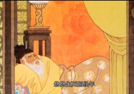 “悠悠生死别经年,魂魄不曾来入梦。” 阴阳相隔已一年,为何你从未在我梦里来过? 这两句写唐玄宗思念贵妃,连梦中也不曾见到。语调酸楚动人,有浓重的抒情气氛。 出自白居易《长恨歌》 汉皇重色思倾国,御宇多年求不得。杨家有女初长成,养在深闺人未识。 天生丽质难自弃,一朝选在君王侧。回眸一笑百媚生,六宫粉黛无颜色。 春寒赐浴华清池,温泉水滑洗凝脂。侍儿扶起娇无力,始是新承恩泽时。 云鬓花颜金步摇,芙蓉帐暖度春宵。春宵苦短日高起,从此君王不早朝。 承欢侍宴无闲暇,春从春游夜专夜。后宫佳丽三千人,三千宠爱在一身。 金屋妆成娇侍夜,玉楼宴罢醉和春。姊妹弟兄皆列土,可怜光彩生门户。 遂令天下父母心,不重生男重生女。骊宫高处入青云,仙乐风飘处处闻。 缓歌慢舞凝丝竹,尽日君王看不足。渔阳鼙鼓动地来,惊破霓裳羽衣曲。 九重城阙烟尘生,千乘万骑西南行。翠华摇摇行复止,西出都门百余里。 六军不发无奈何,宛转蛾眉马前死。花钿委地无人收,翠翘金雀玉搔头。 君王掩面救不得,回看血泪相和流。黄埃散漫风萧索,云栈萦纡登剑阁。 峨嵋山下少人行,旌旗无光日色薄。蜀江水碧蜀山青,圣主朝朝暮暮情。 行宫见月伤心色,夜雨闻铃肠断声。天旋地转回龙驭,到此踌躇不能去。 马嵬坡下泥土中,不见玉颜空死处。君臣相顾尽沾衣,东望都门信马归。 归来池苑皆依旧,太液芙蓉未央柳。芙蓉如面柳如眉,对此如何不泪垂。 春风桃李花开日,秋雨梧桐叶落时。西宫南内多秋草,落叶满阶红不扫。(花开日 一作:花开夜;南内 一作:南苑) 梨园弟子白发新,椒房阿监青娥老。夕殿萤飞思悄然,孤灯挑尽未成眠。 迟迟钟鼓初长夜,耿耿星河欲曙天。鸳鸯瓦冷霜华重,翡翠衾寒谁与共。 悠悠生死别经年,魂魄不曾来入梦。临邛道士鸿都客,能以精诚致魂魄。 为感君王辗转思,遂教方士殷勤觅。排空驭气奔如电,升天入地求之遍。 ![]() 上穷碧落下黄泉,两处茫茫皆不见。忽闻海上有仙山,山在虚无缥渺间。 楼阁玲珑五云起,其中绰约多仙子。中有一人字太真,雪肤花貌参差是。 金阙西厢叩玉扃,转教小玉报双成。闻道汉家天子使,九华帐里梦魂惊。 揽衣推枕起徘徊,珠箔银屏迤逦开。云鬓半偏新睡觉,花冠不整下堂来。 风吹仙袂飘飘举,犹似霓裳羽衣舞。玉容寂寞泪阑干,梨花一枝春带雨。(阑 通:栏;飘飘 一作:飘飖) 含情凝睇谢君王,一别音容两渺茫。昭阳殿里恩爱绝,蓬莱宫中日月长。 回头下望人寰处,不见长安见尘雾。惟将旧物表深情,钿合金钗寄将去。 钗留一股合一扇,钗擘黄金合分钿。但教心似金钿坚,天上人间会相见。 临别殷勤重寄词,词中有誓两心知。七月七日长生殿,夜半无人私语时。 在天愿作比翼鸟,在地愿为连理枝。天长地久有时尽,此恨绵绵无绝期。 注 ①悠悠:忧思貌。 ②经年:一年。唐玄宗于天宝十五载(公元756年)六月离长安奔蜀,次年十二月回长安,历经一年半。 ③魂魄:指杨贵妃的亡魂。 简析 《长恨歌》是唐代诗人白居易的一首长篇叙事诗。全诗形象地叙述了唐玄宗与杨贵妃的爱情悲剧。诗人借历史人物和传说,创造了一个回旋宛转的动人故事,并通过塑造的艺术形象,再现了现实生活的真实,感染了千百年来的读者,诗的主题是“长恨”。该诗对后世诸多文学作品产生了深远的影响。